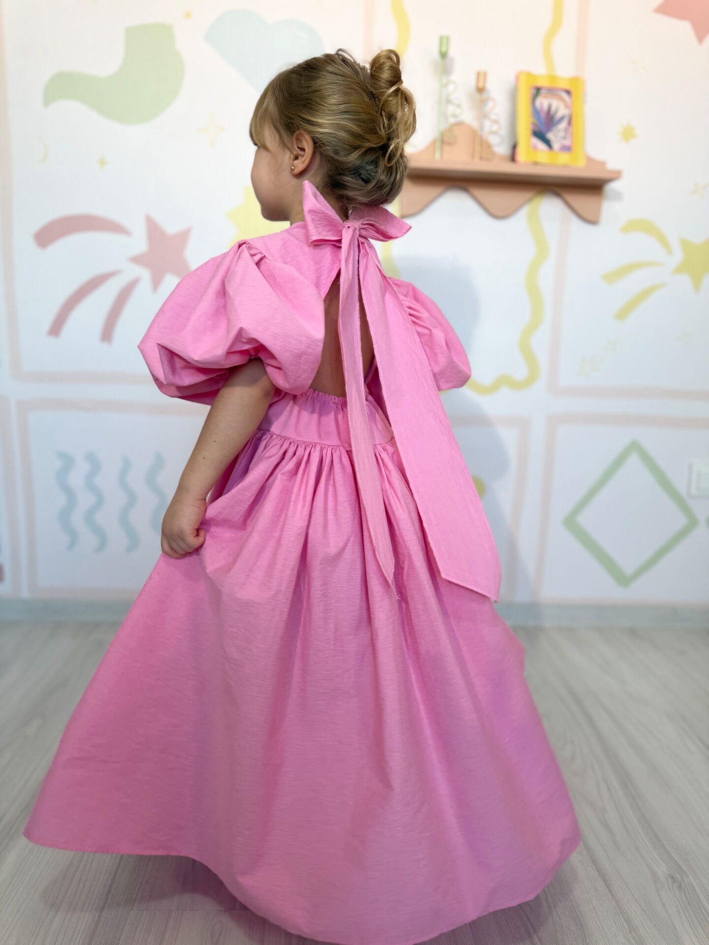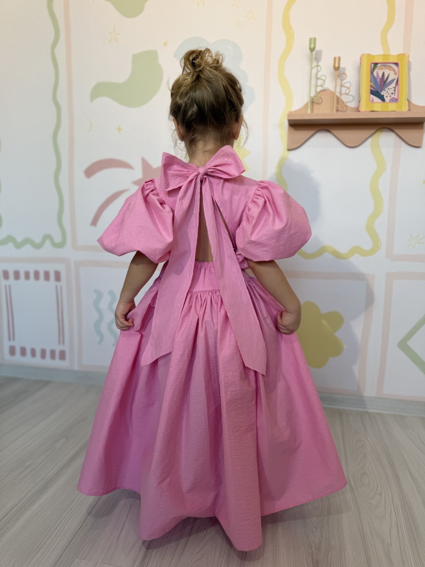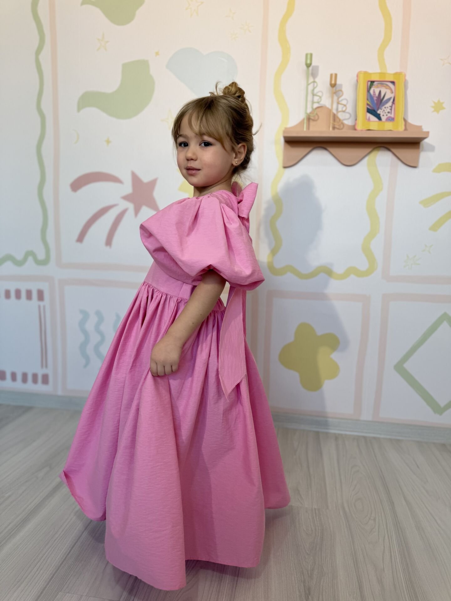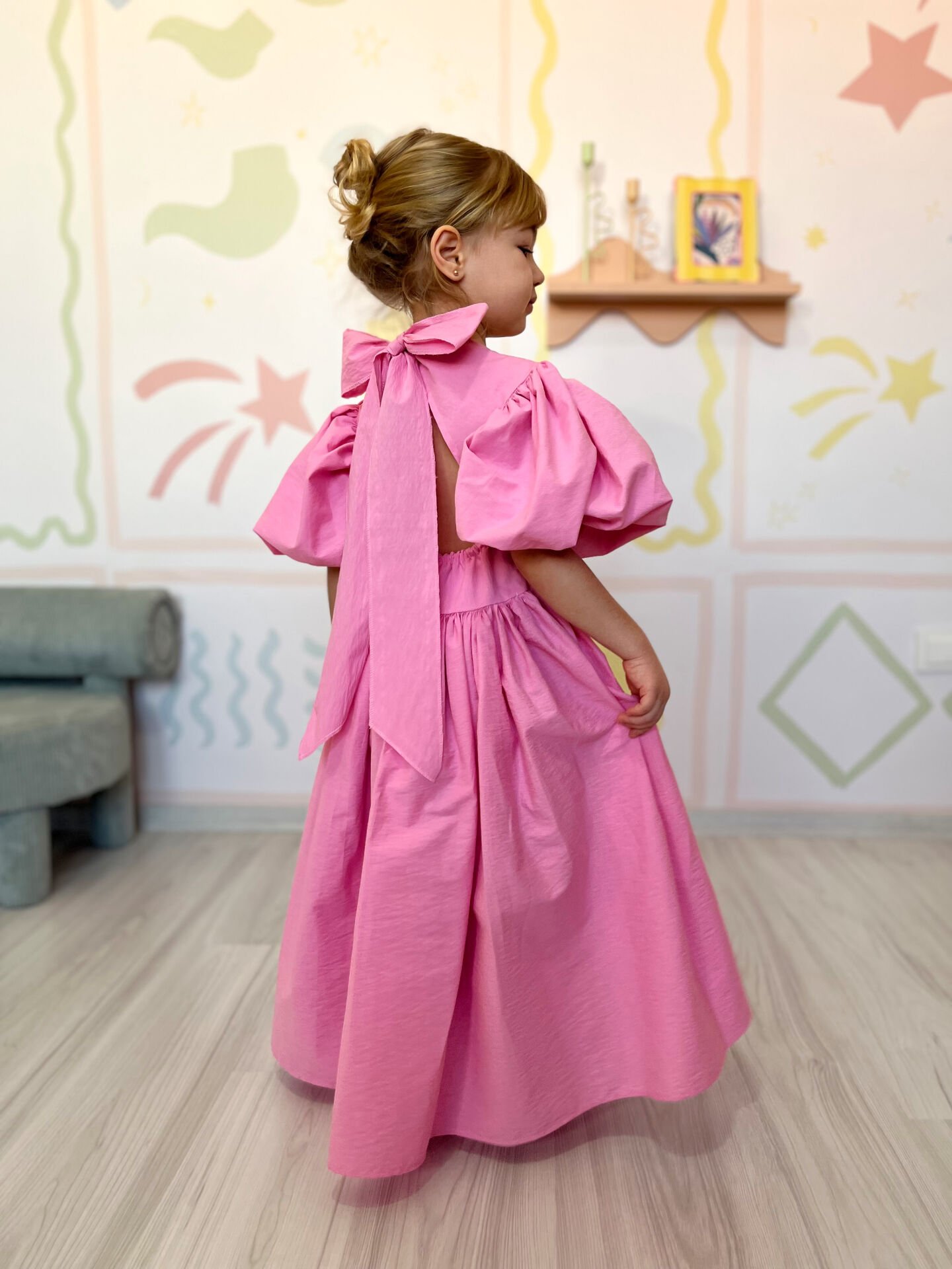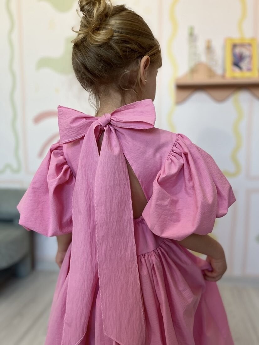 Asarkids Sırttan Fiyonk Bağlamalı Gofre Elbise - Pembe