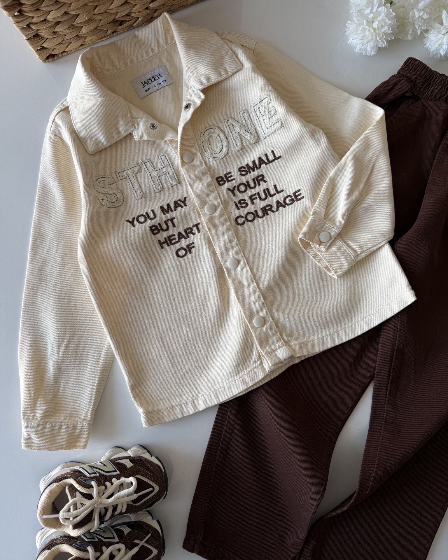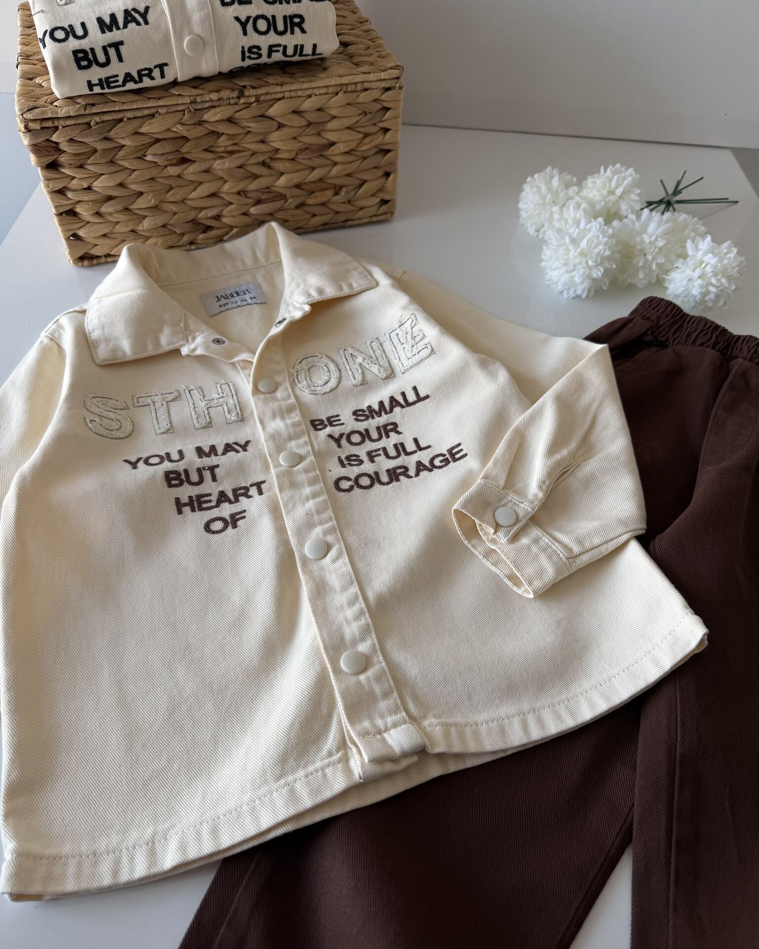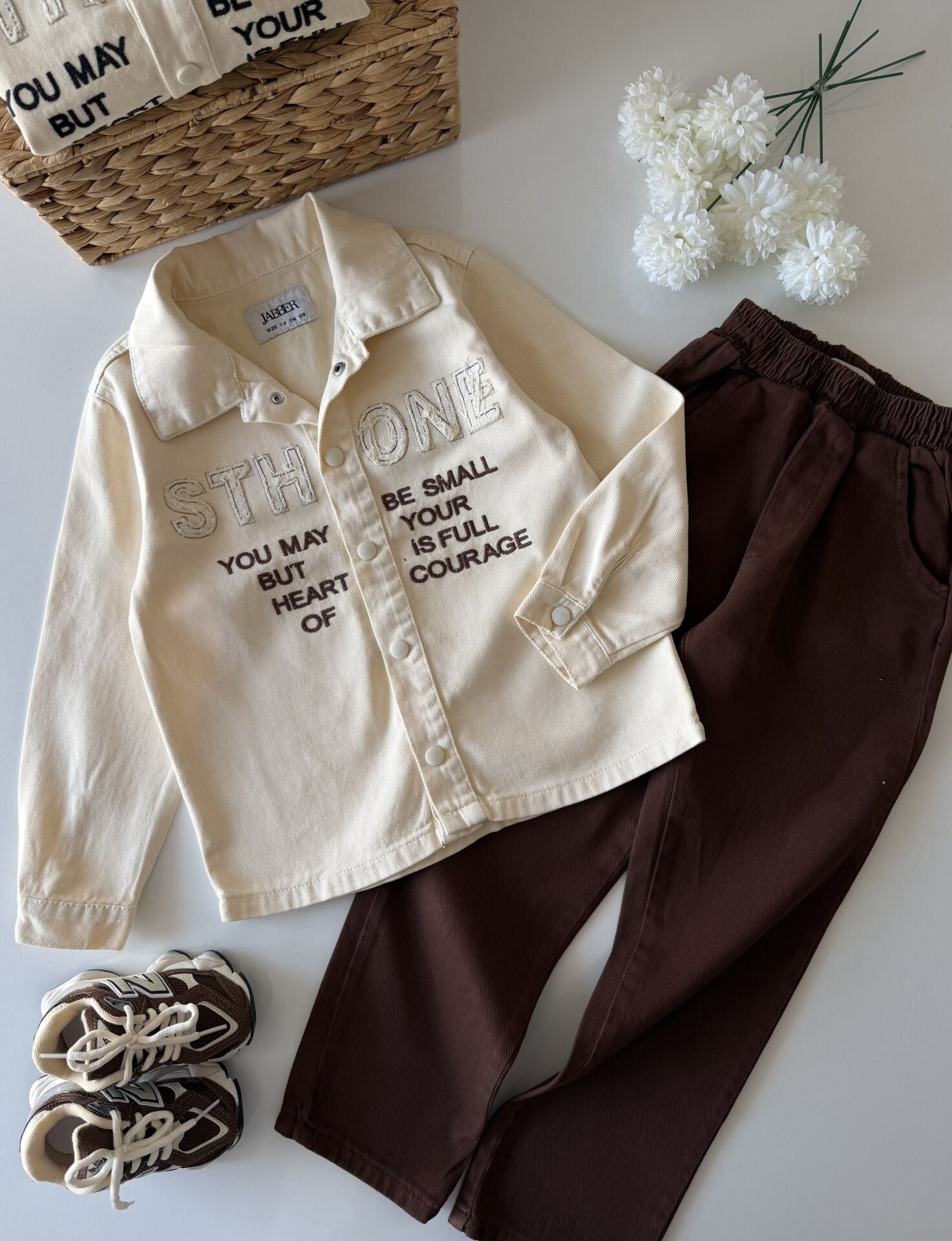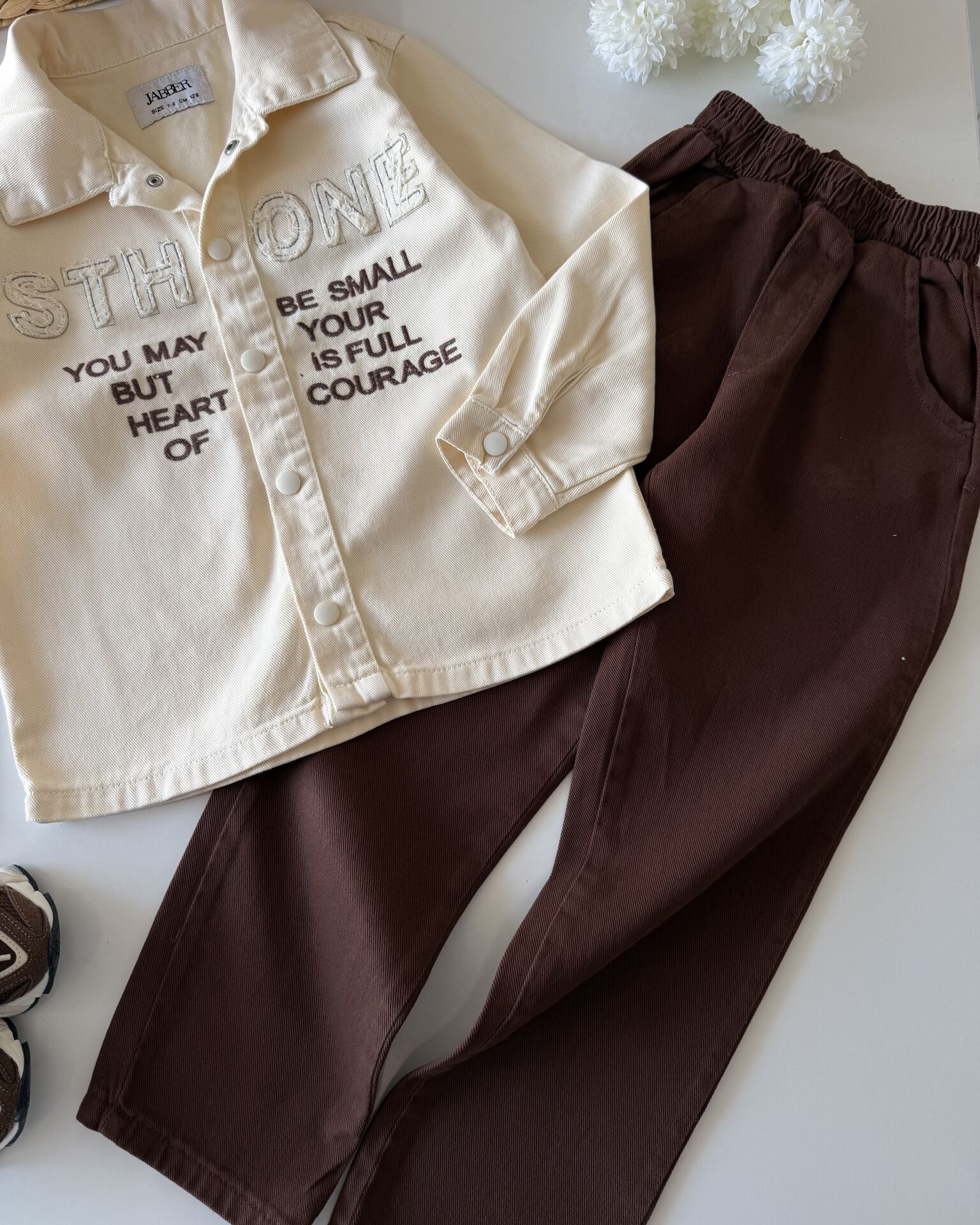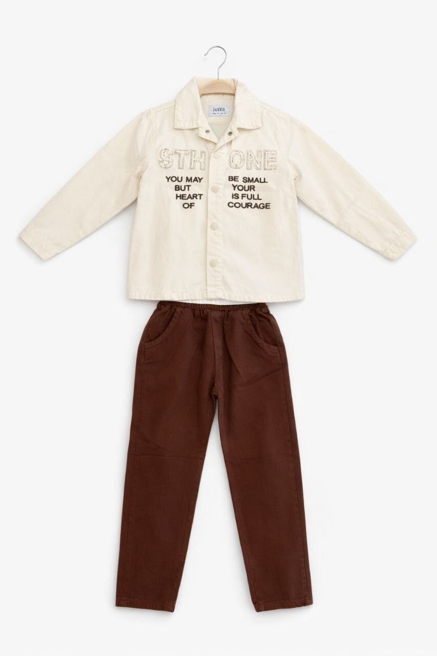 Asarkids Sthone Sloganlı 2'li Takım - Kahve Krem