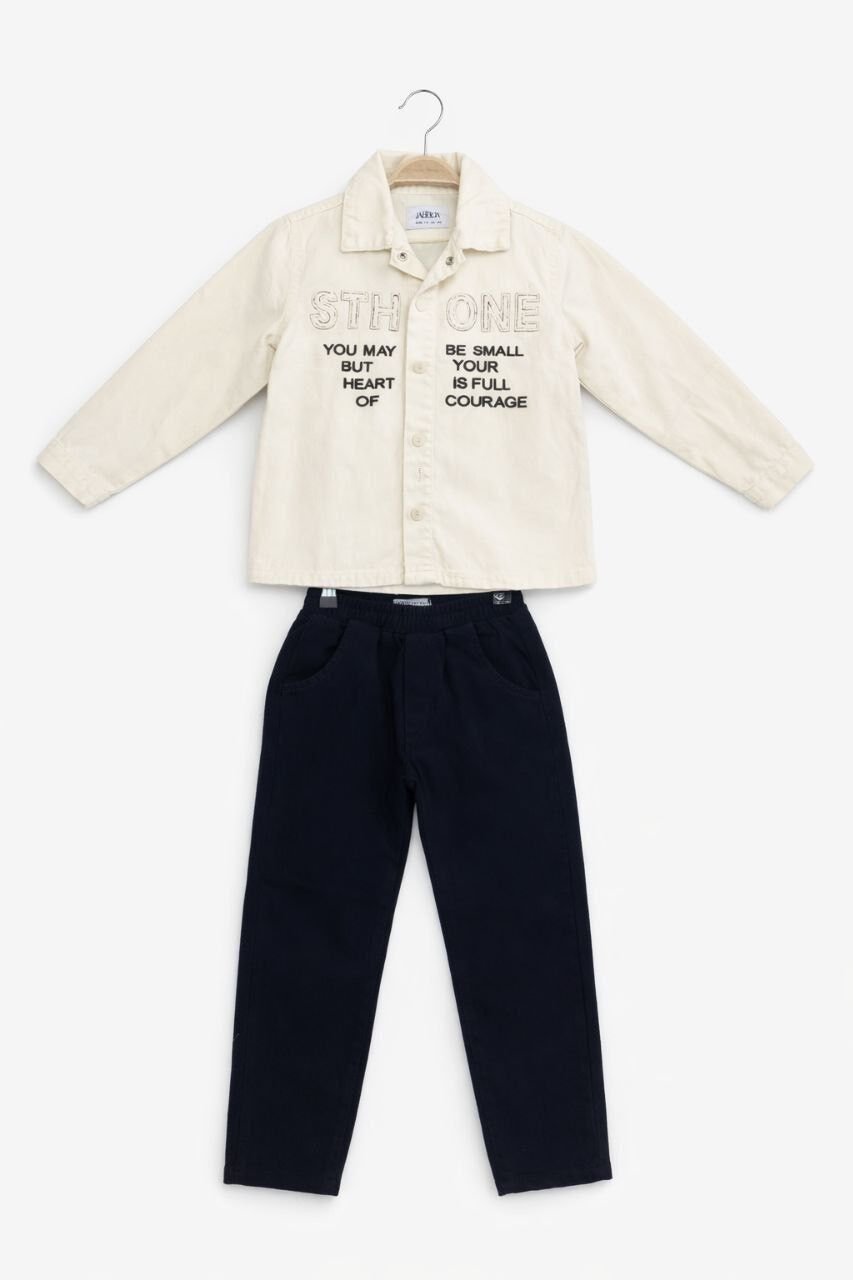 Asarkids Sthone Sloganlı 2'li Takım - Lacivert Krem