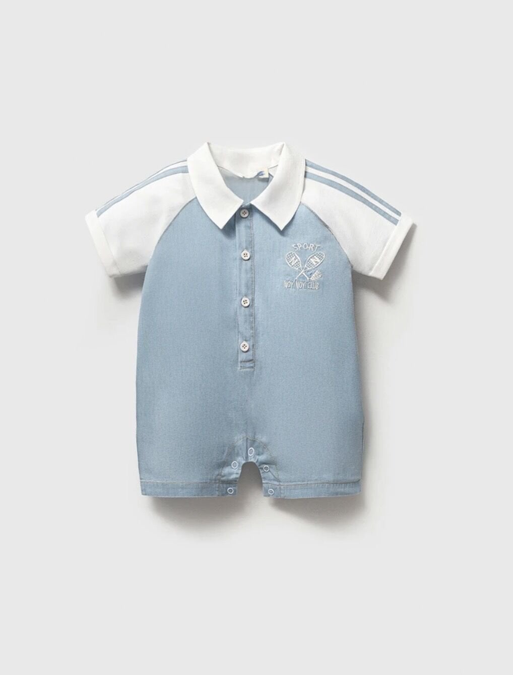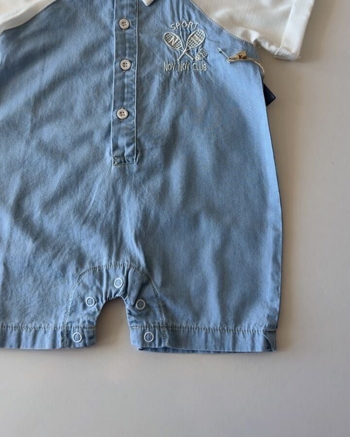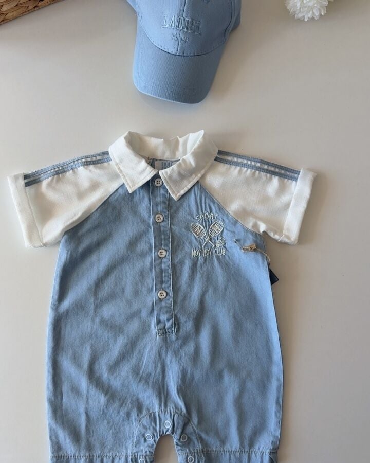 Asarkids Üç Çizgili Kısa Kollu Tulum - Mavi