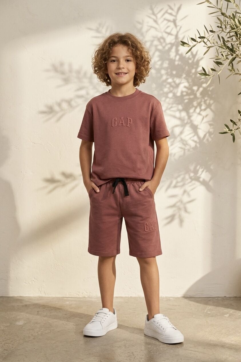 Asarkids Unisex Kullanım Kabartma Logolu Şortlu 2'li Takım - Gül Kurusu