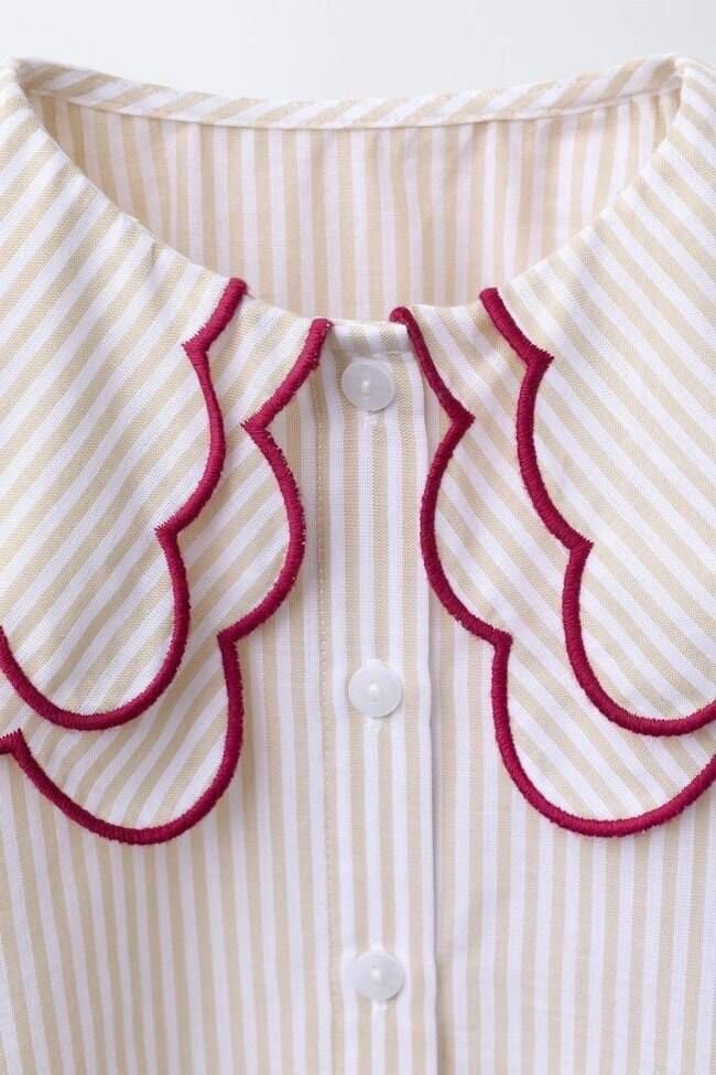 Asarkids Yaka Detaylı Gömlek Kiraz Serisi - Çizgili