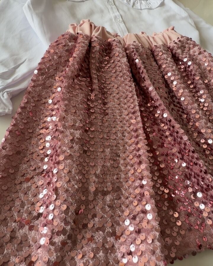 ‣ Popllin Kumaş Gömlek Kadife Etek üstü pullu