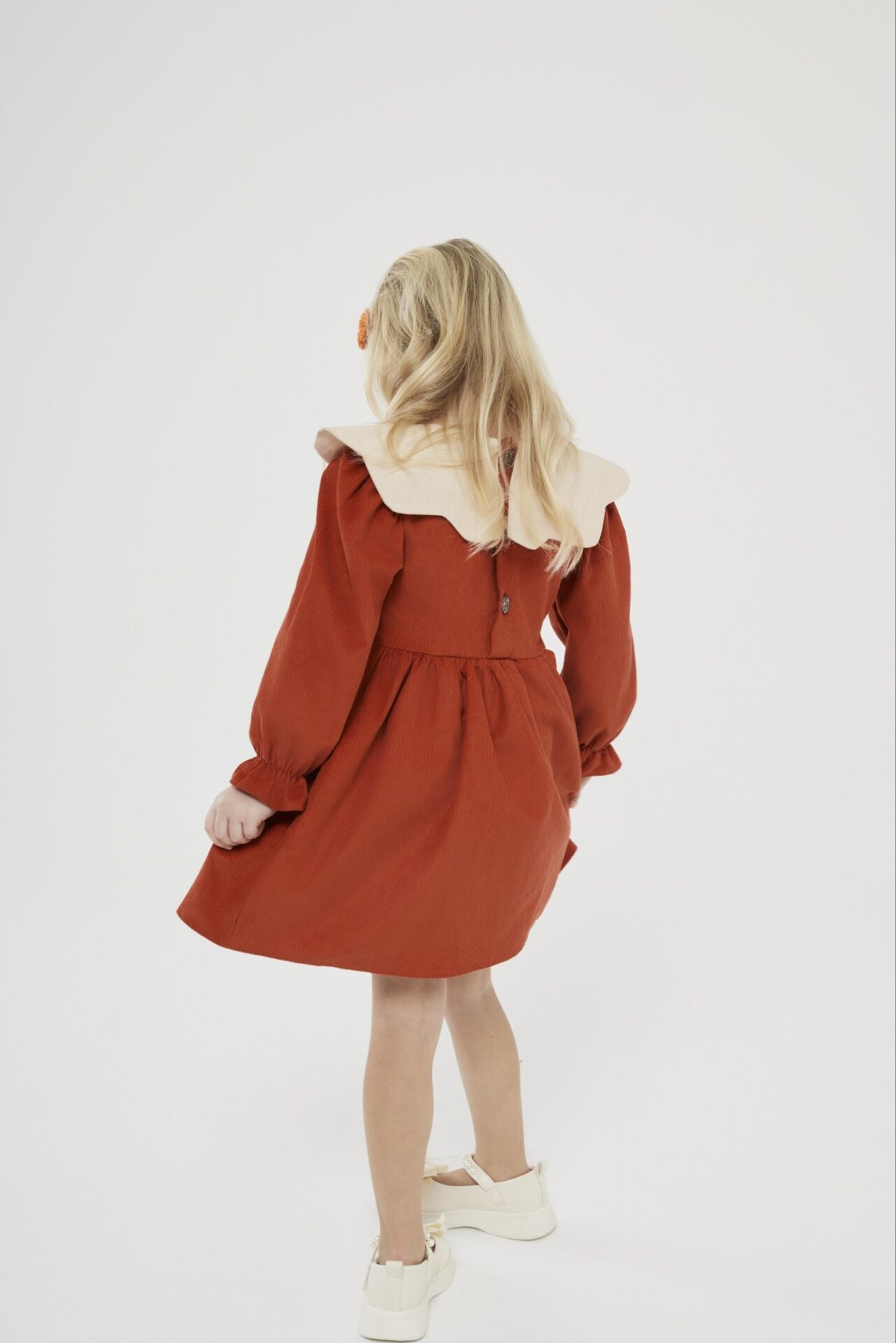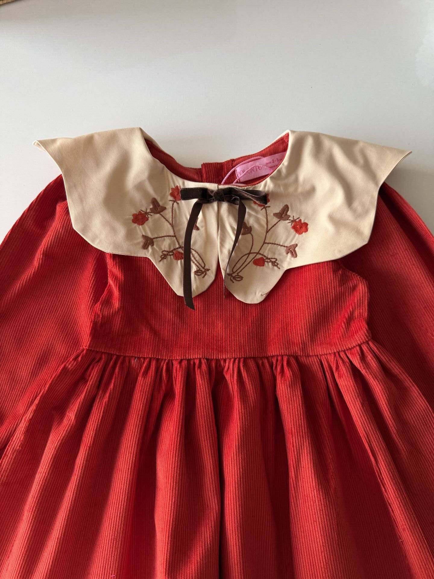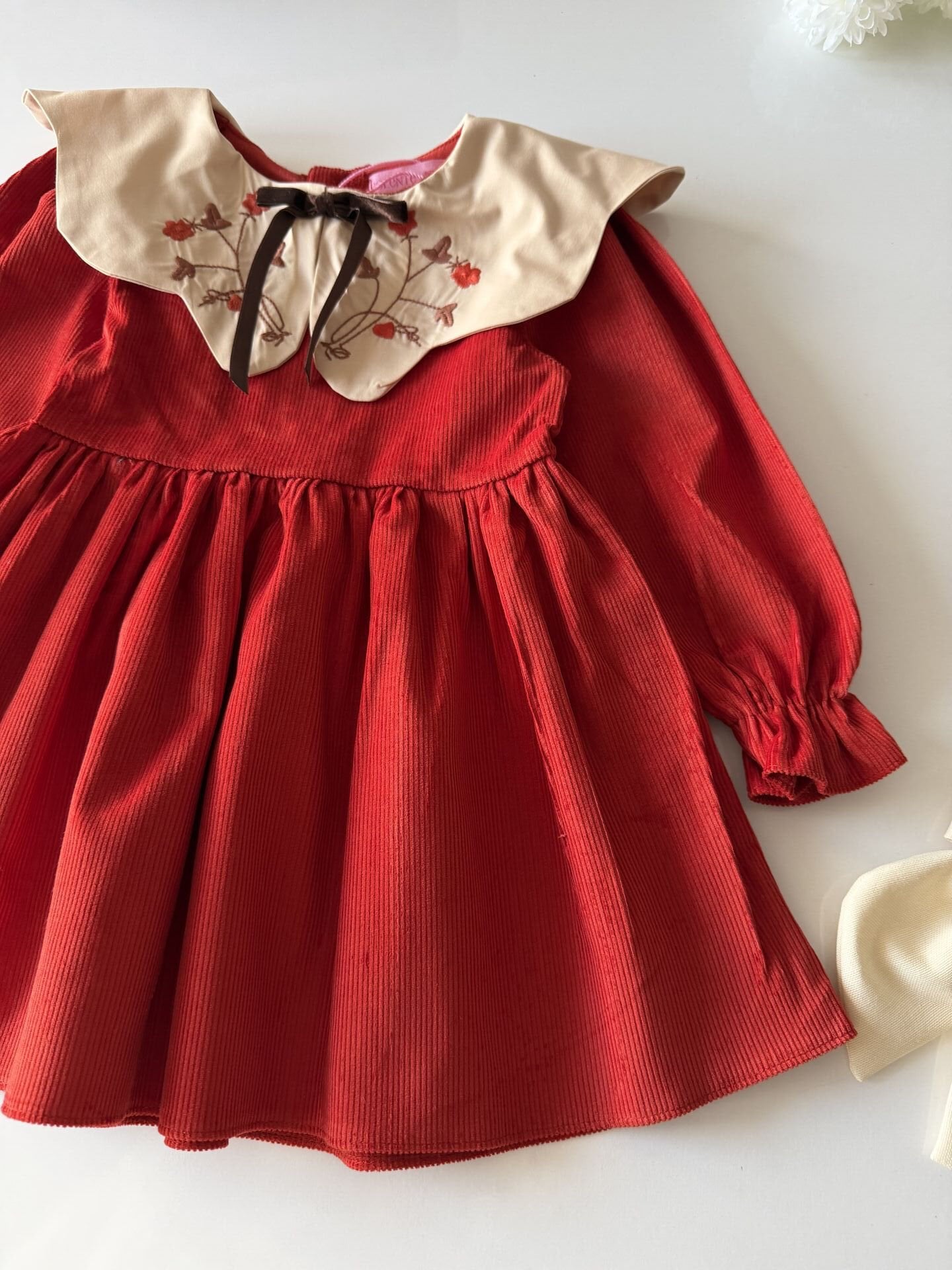Asarkids Yakası Nakışlı Kadife Elbise - Turuncu