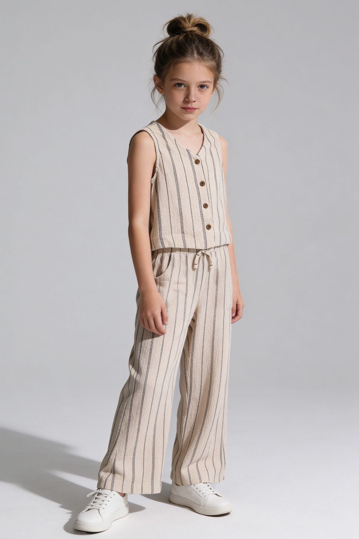 Asarkids Yelekli Çizgili Pantolonlu 2'li Takım - Krem