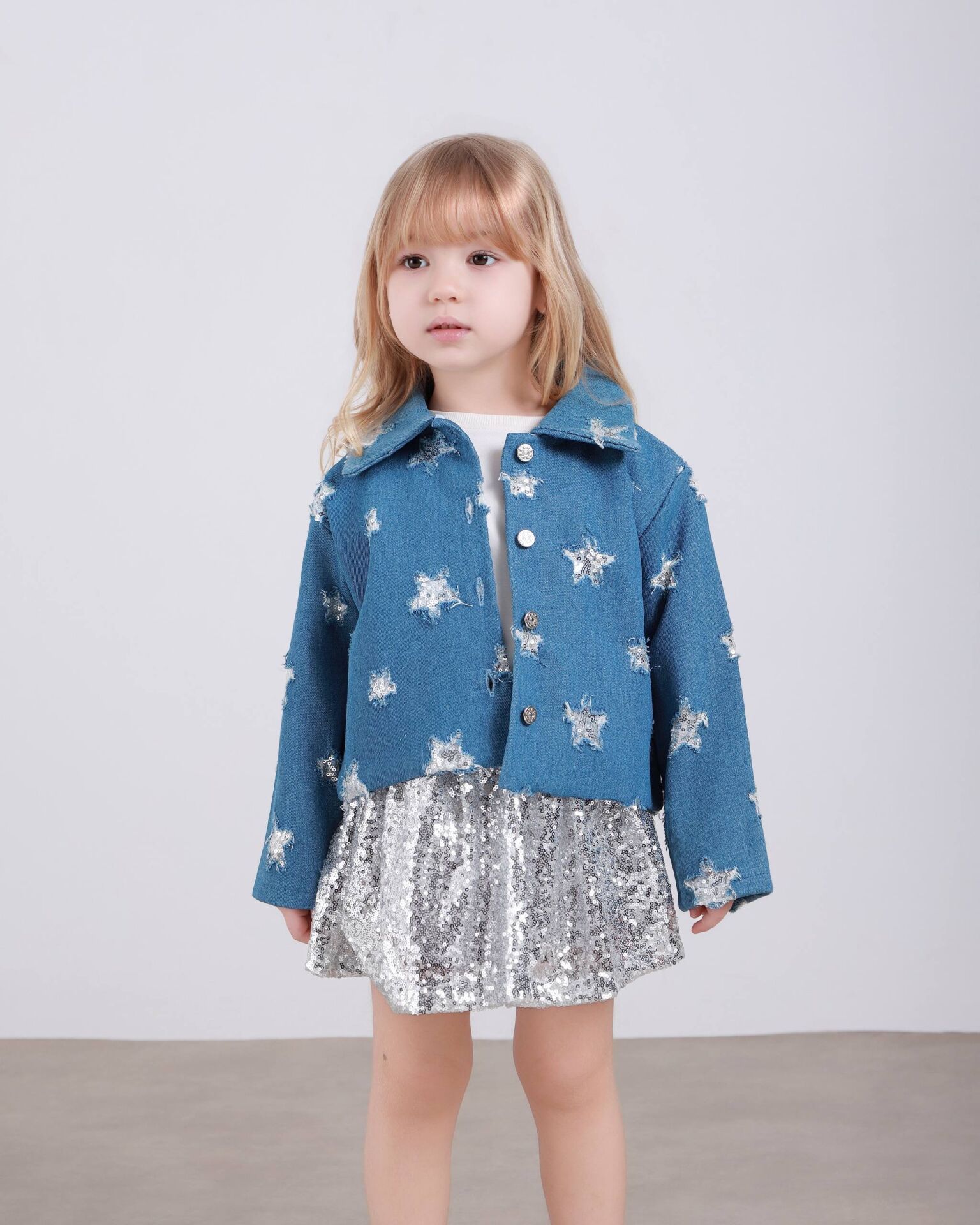 Asarkids Yıldız Ceketli Pul Payet Etek 2’li Takım - Mavi