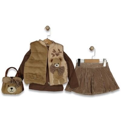 Ayıcık Aplikeli 4’lü Set - Kahve