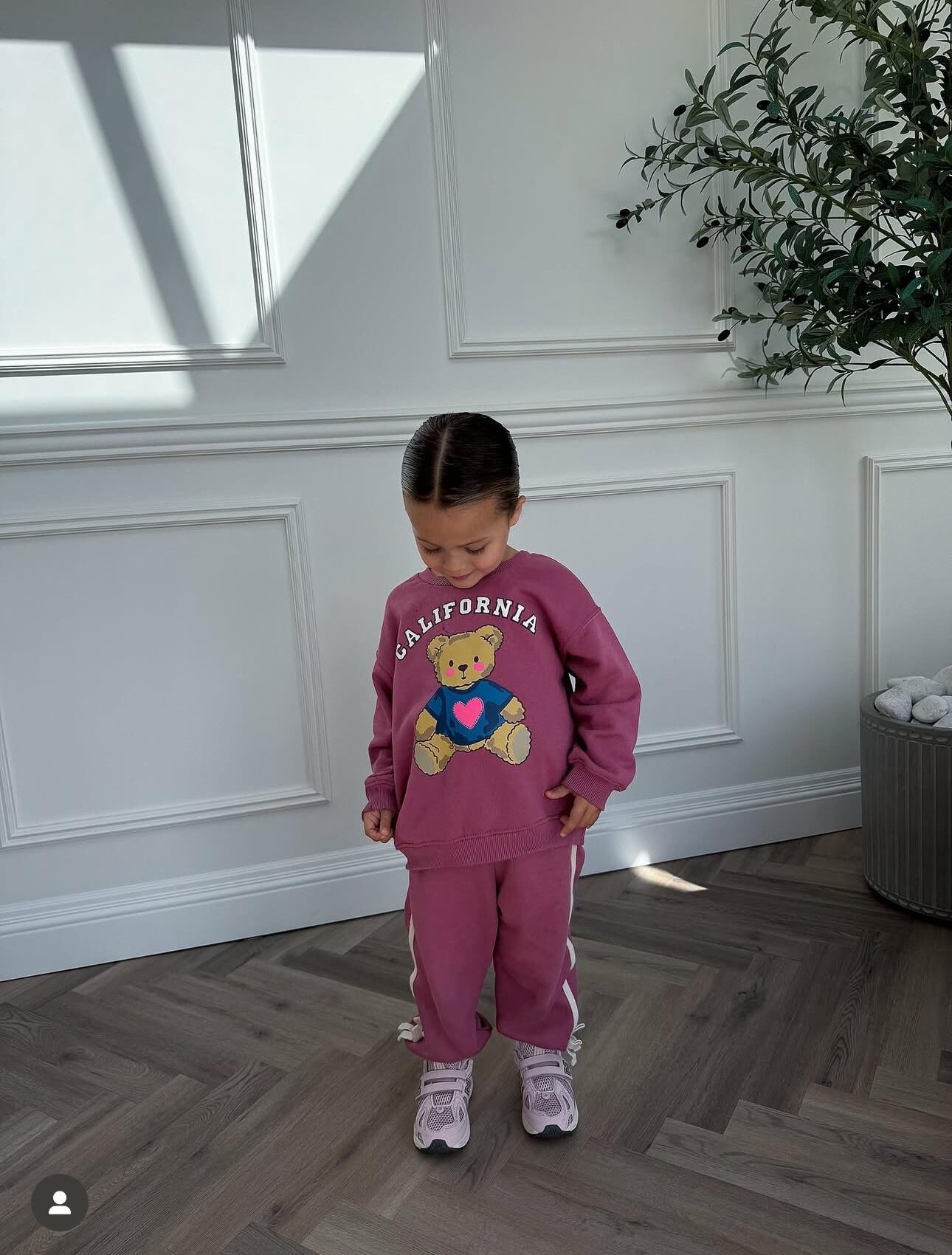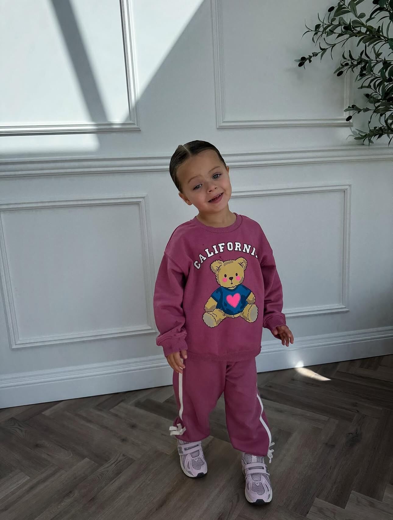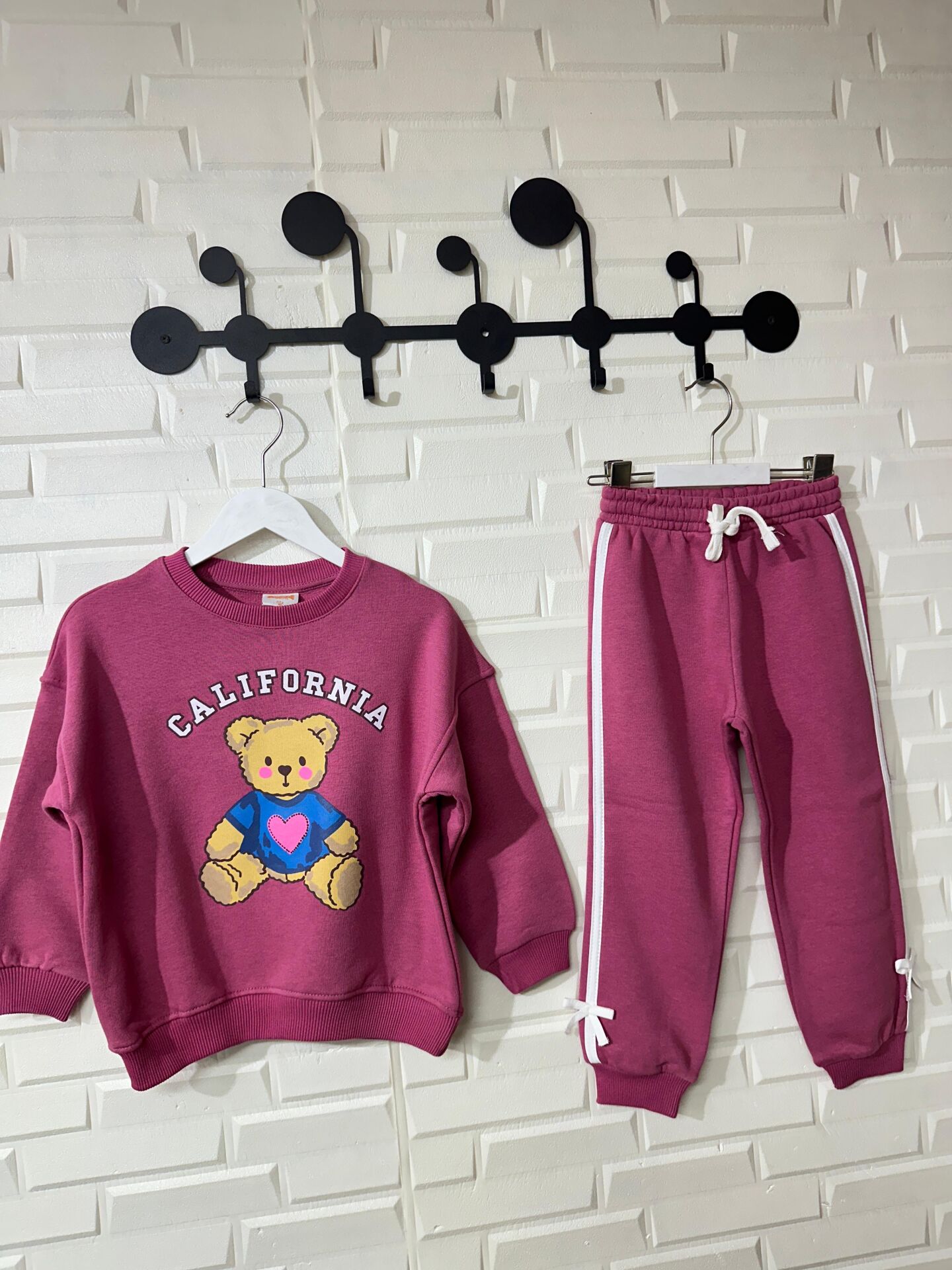 Ayıcık Baskılı Fiyonklu Eşofman Takımı - Mürdüm