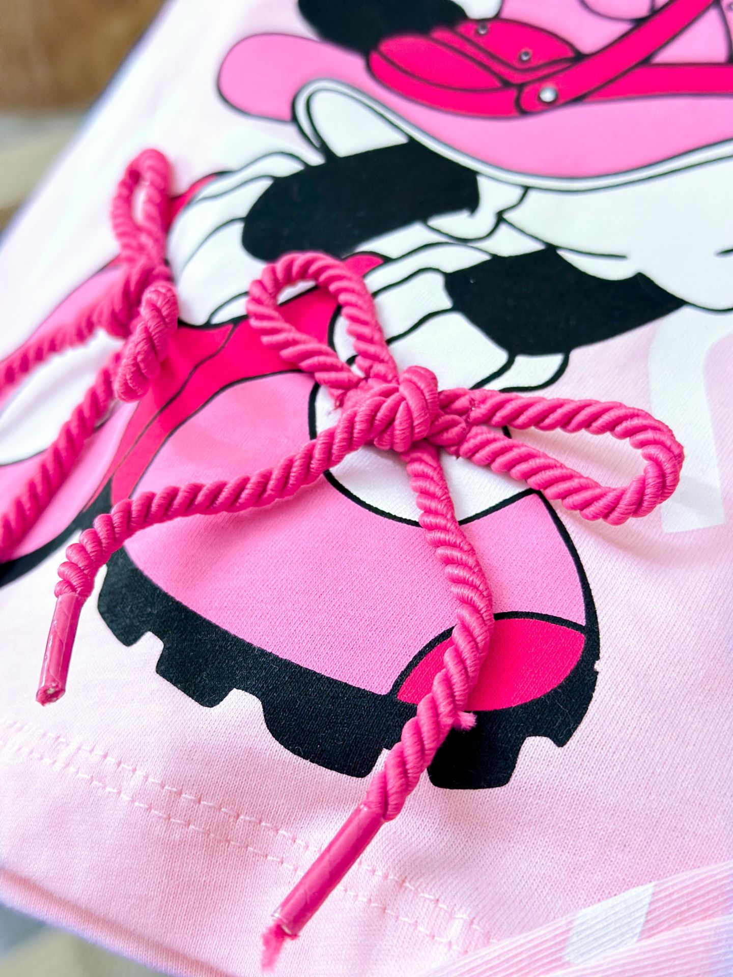 Bağcık Aplikeli Karakterli Eslem Takım - Pembe