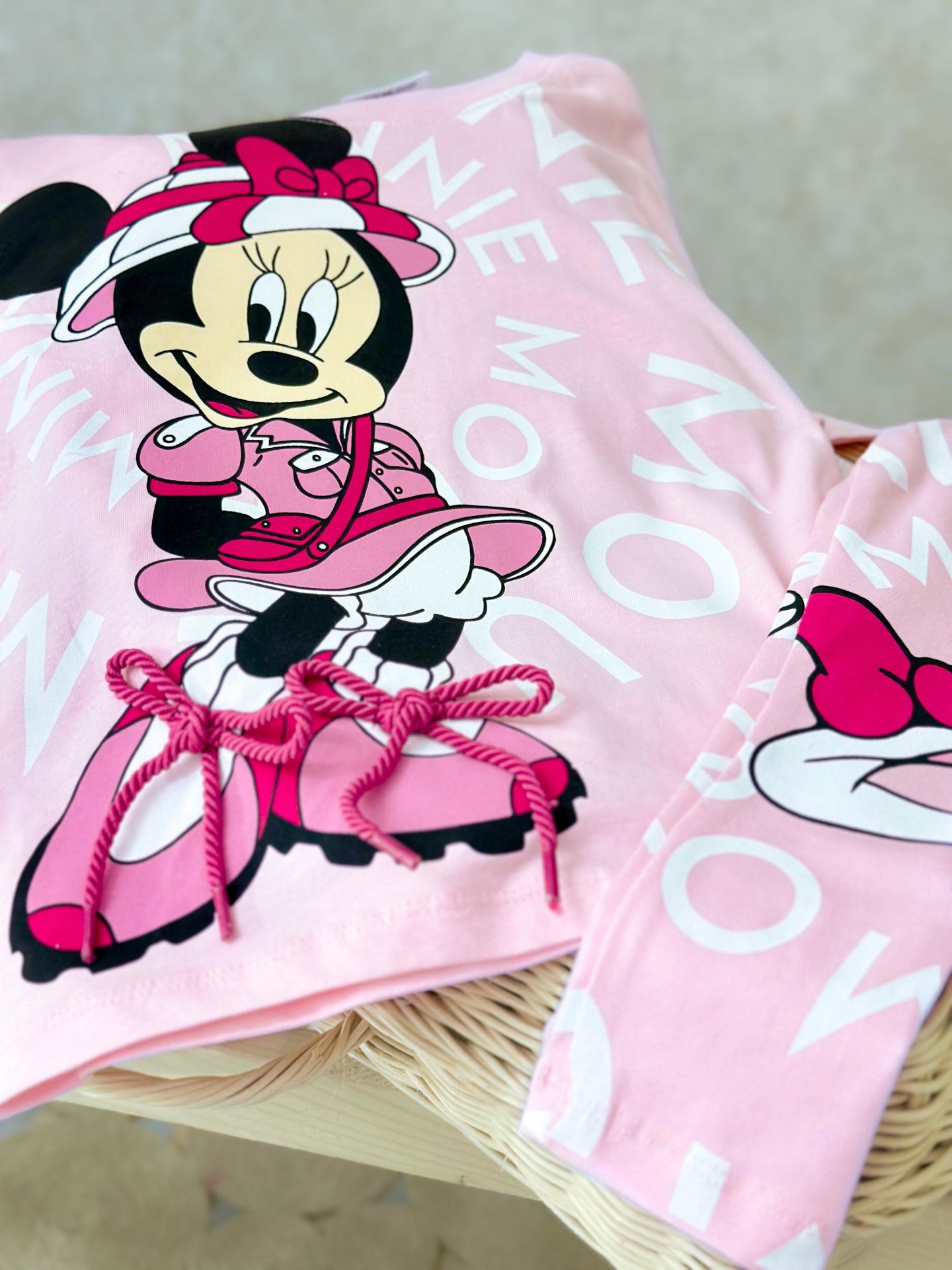 Ürün Bilgisi : Pamuklu penye tişört üzerine karakter baskılı ve bağcık detaylı taytlı takım