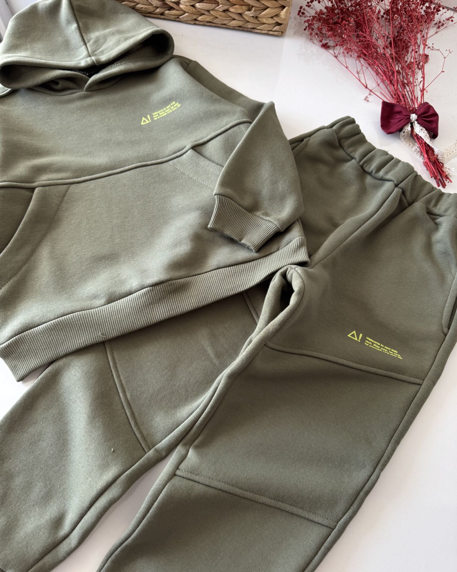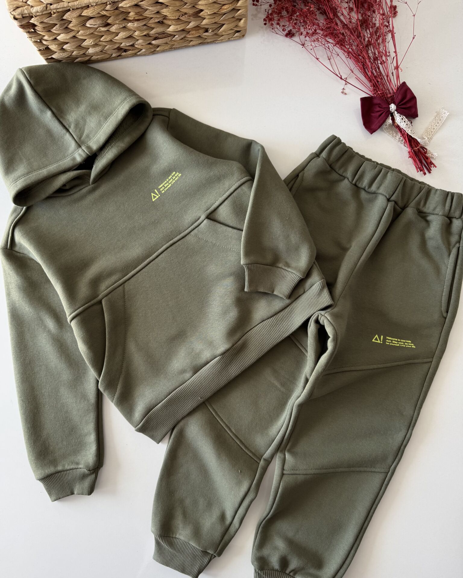 Basic Kapüşonlu Şardonlu Takım - Yeşil