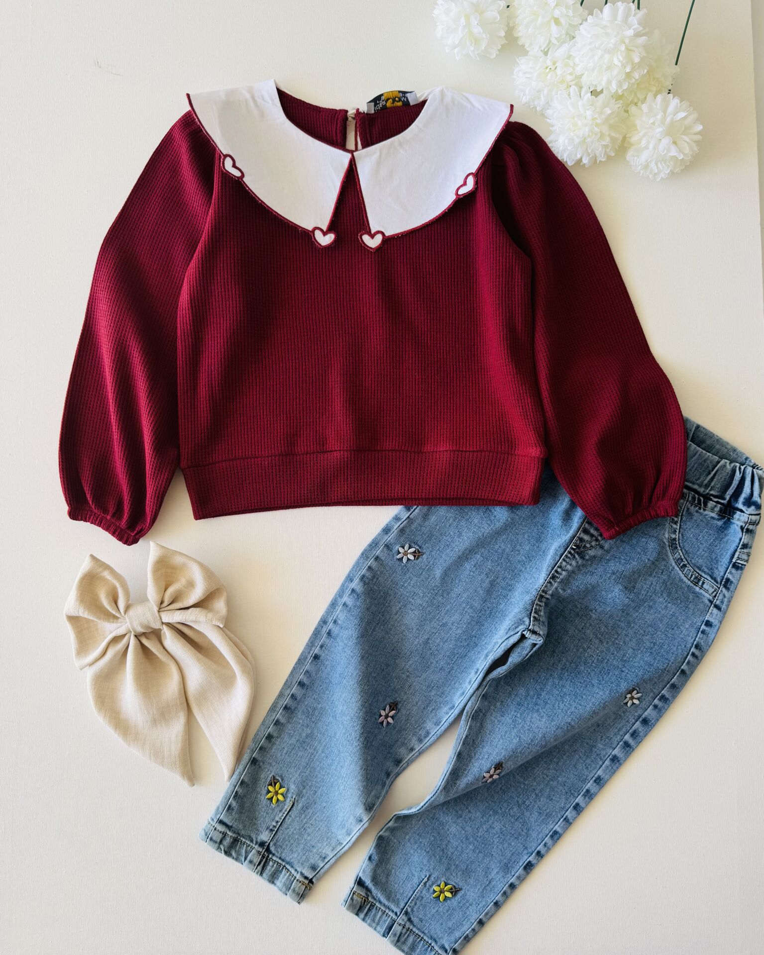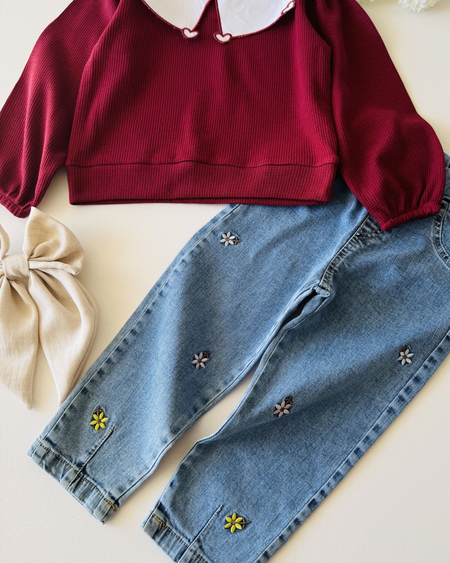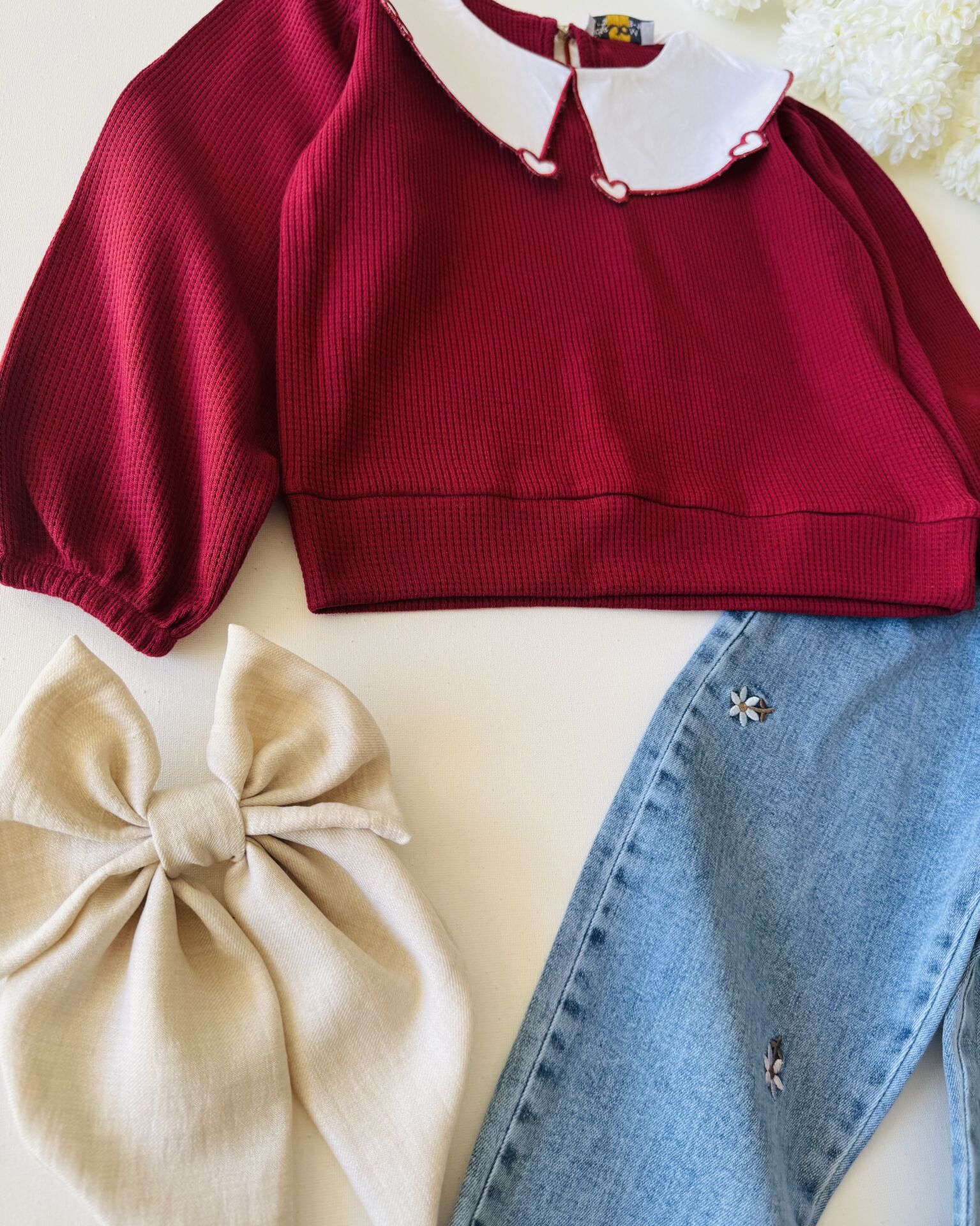 Bebe Yaka Arya 2'li Jean Takım - Bordo