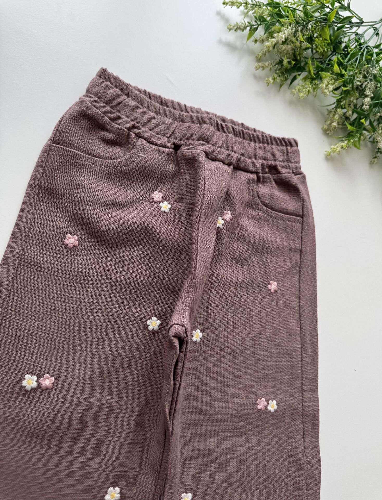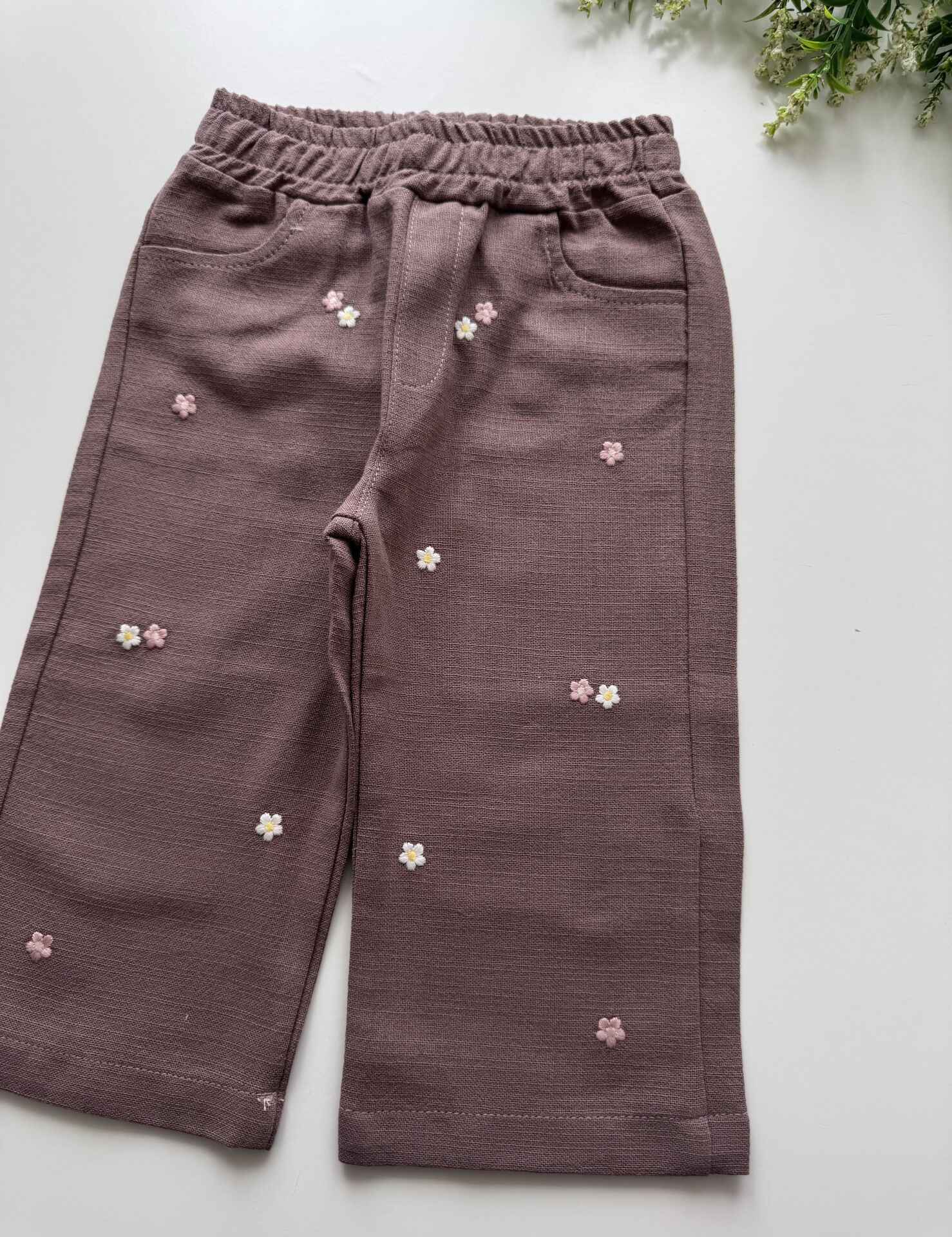 Ürün Bilgisi :Yumuşacık organik kumaştan çiçek nakışlı pantolon.