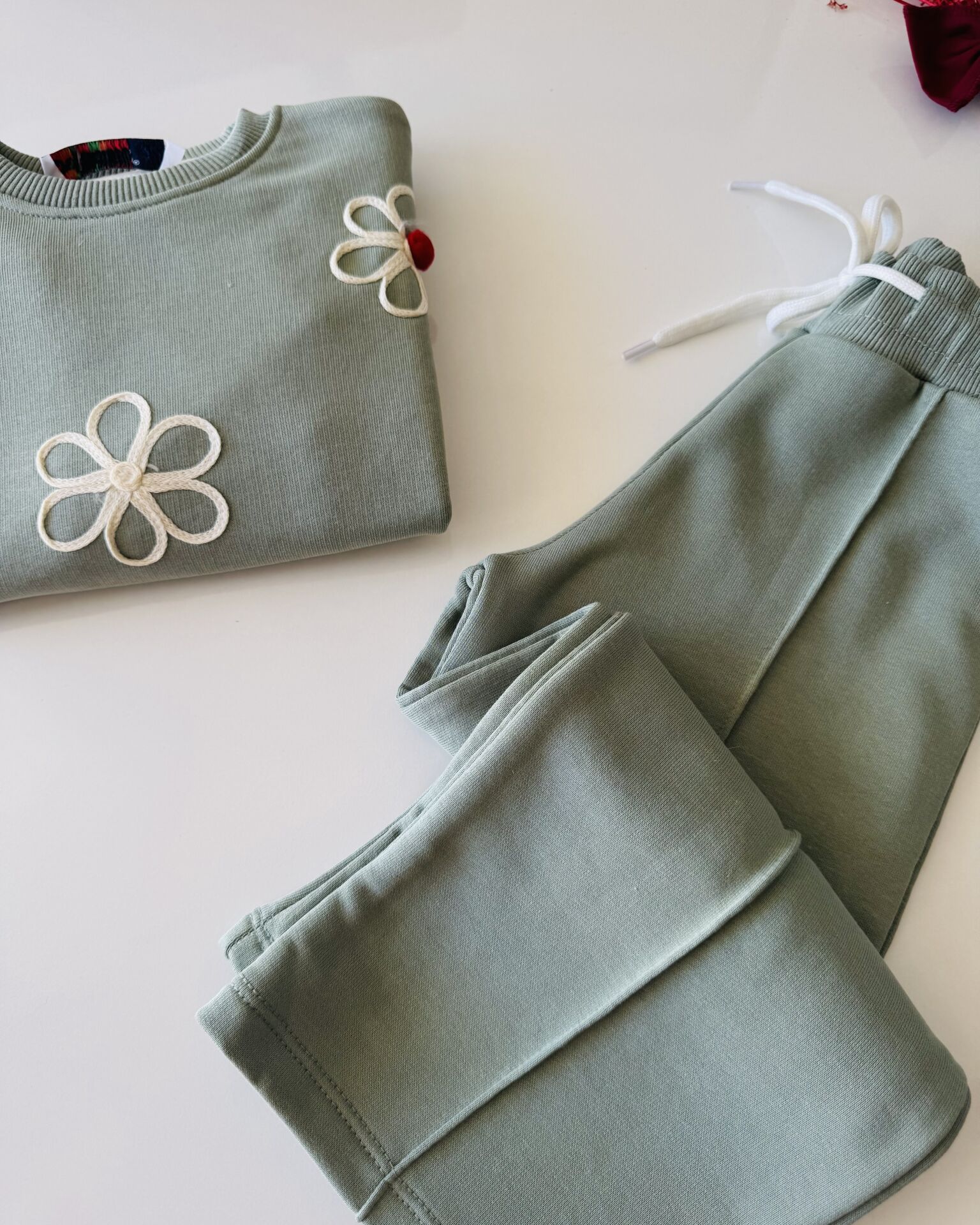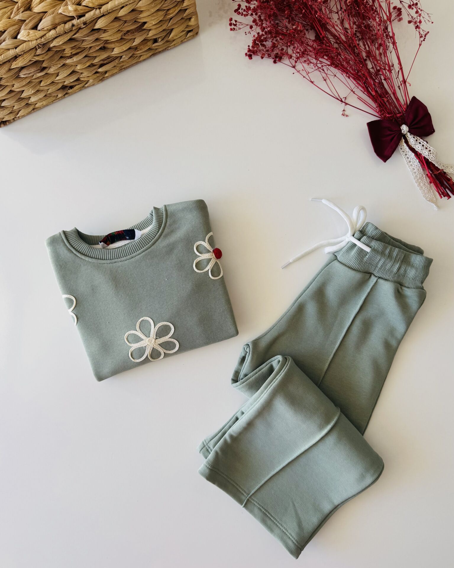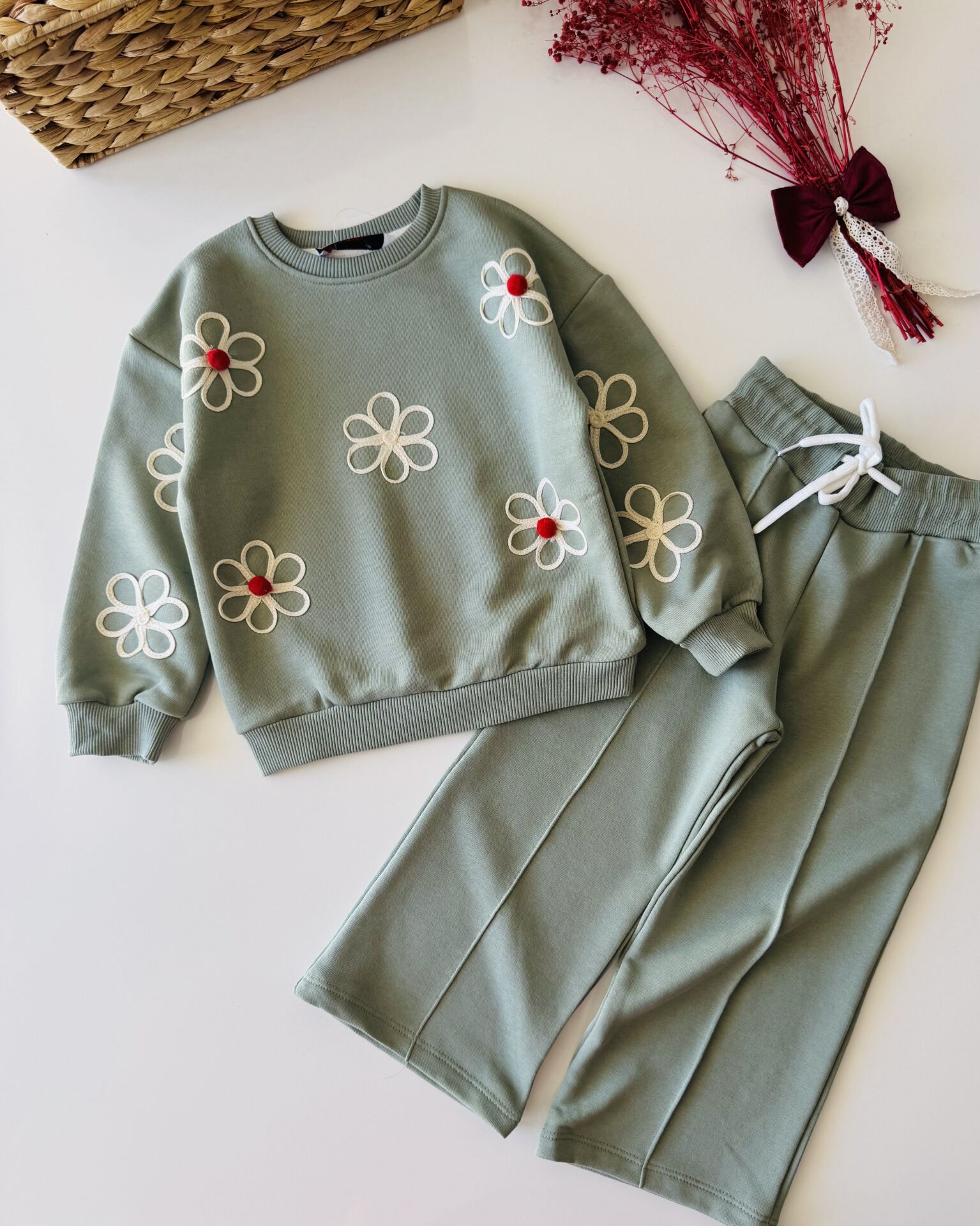 Papatya Aplikeli Defne Takım - Yeşil