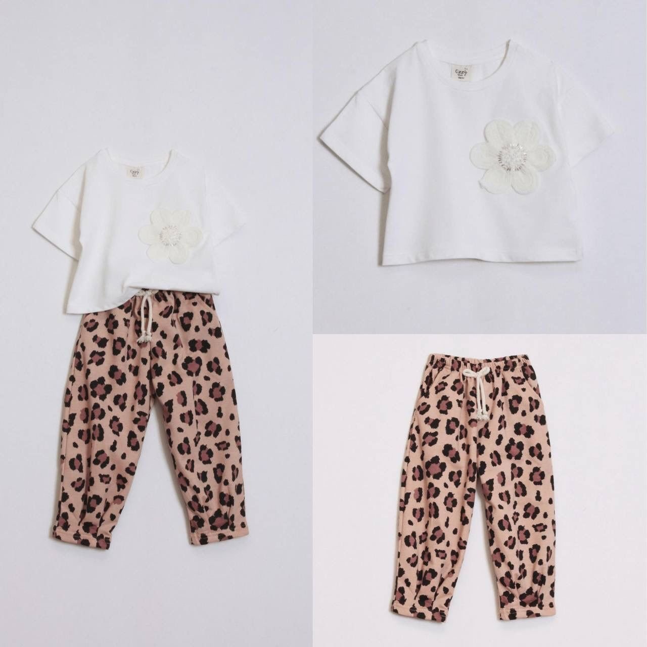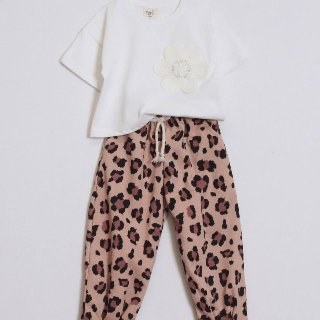 Çiçek Aplikeli Takım - Leopar Beyaz