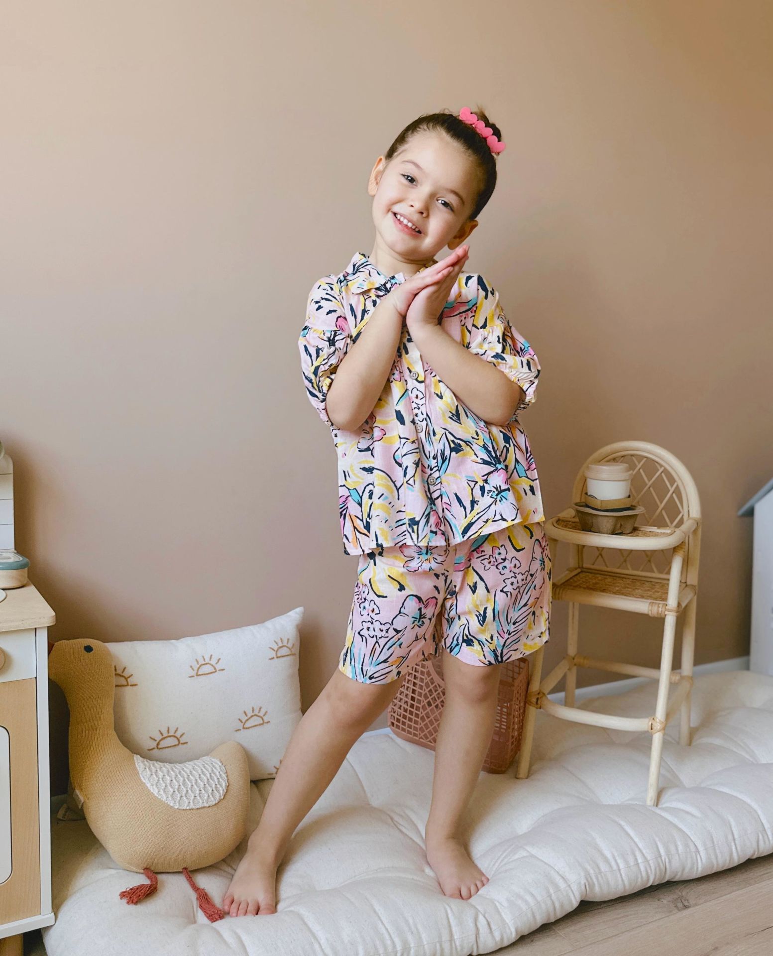 Çiçek Baskılı Kol Detay Ebrar Takım - Renkli