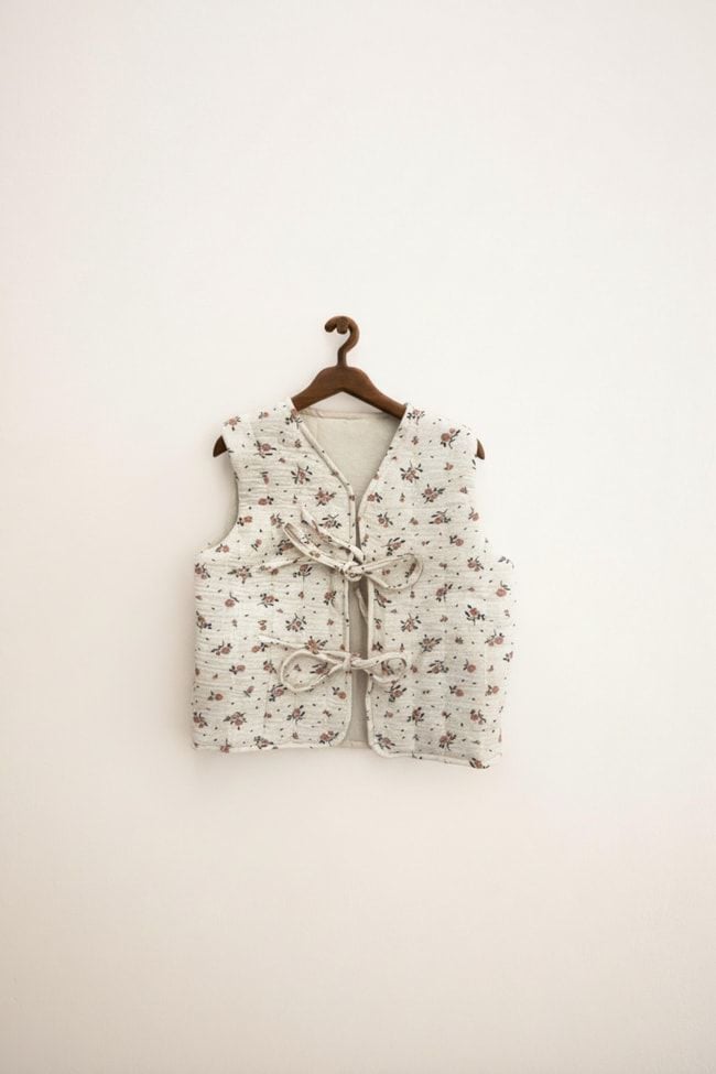 Çiçek Desenli İçi Astarlı Yelek - Krem