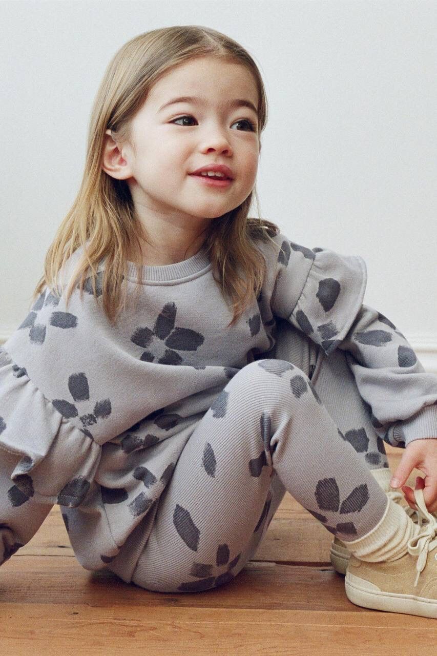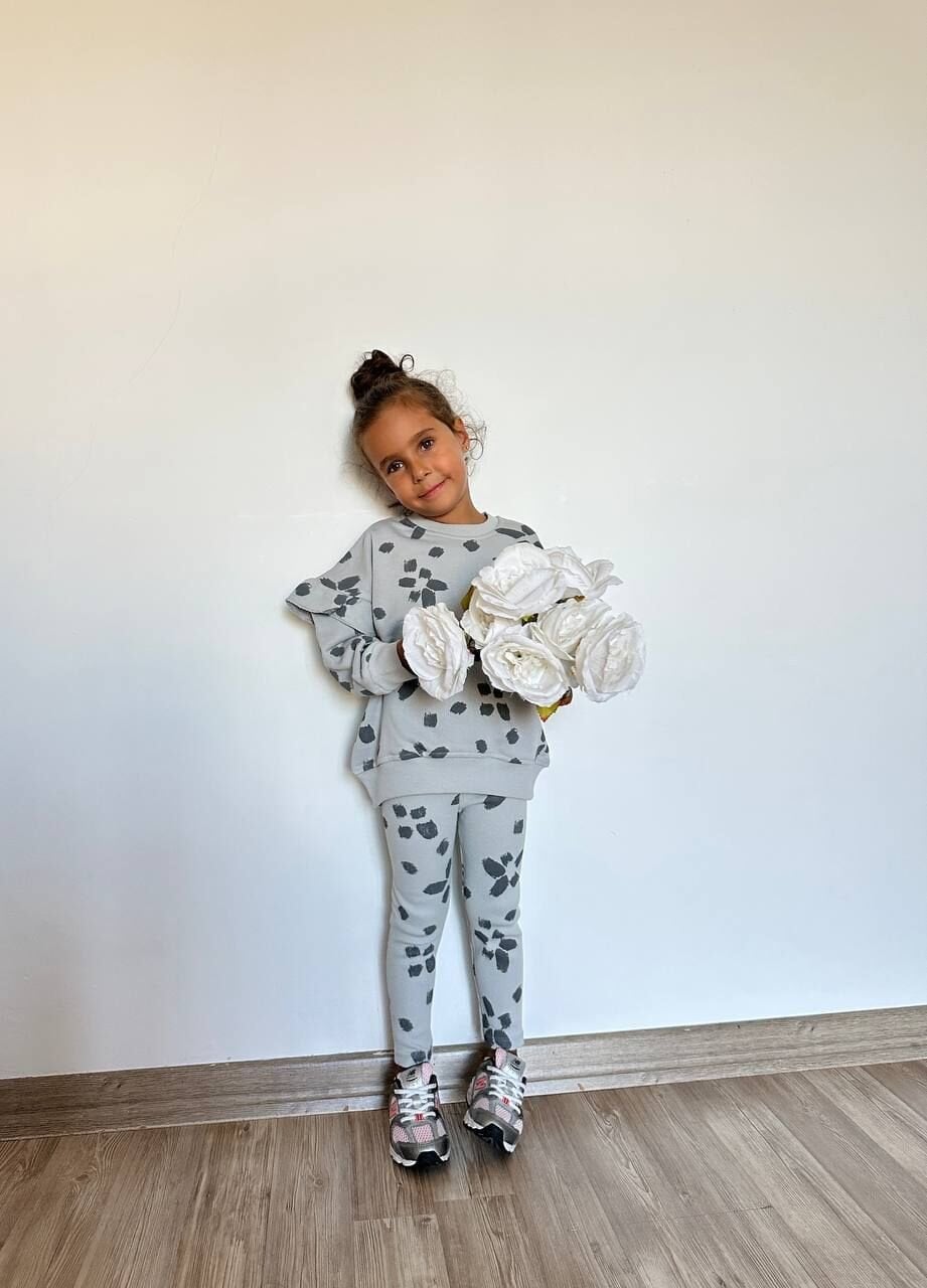 Çiçek Desenli Taytlı Takım - Gri