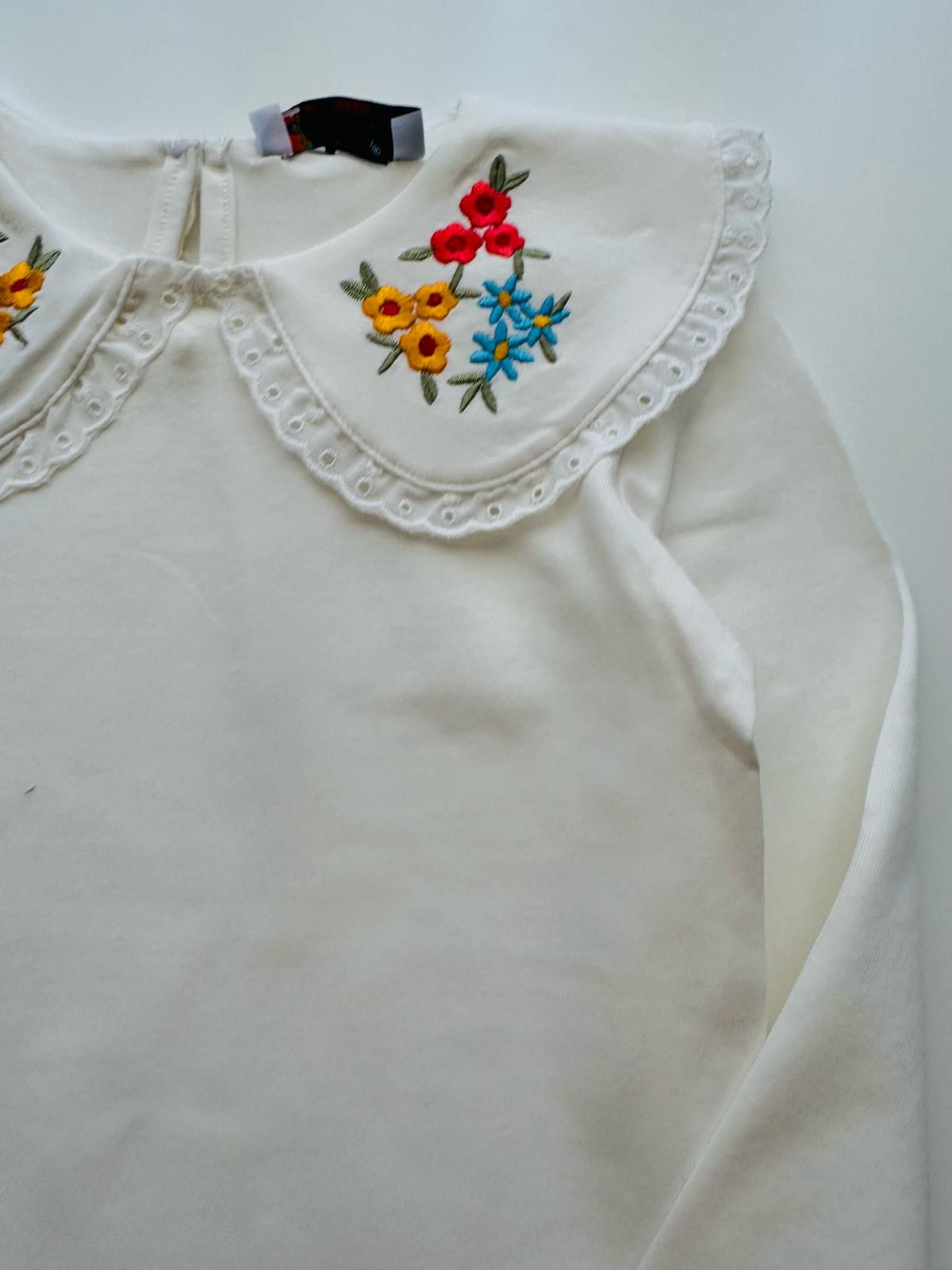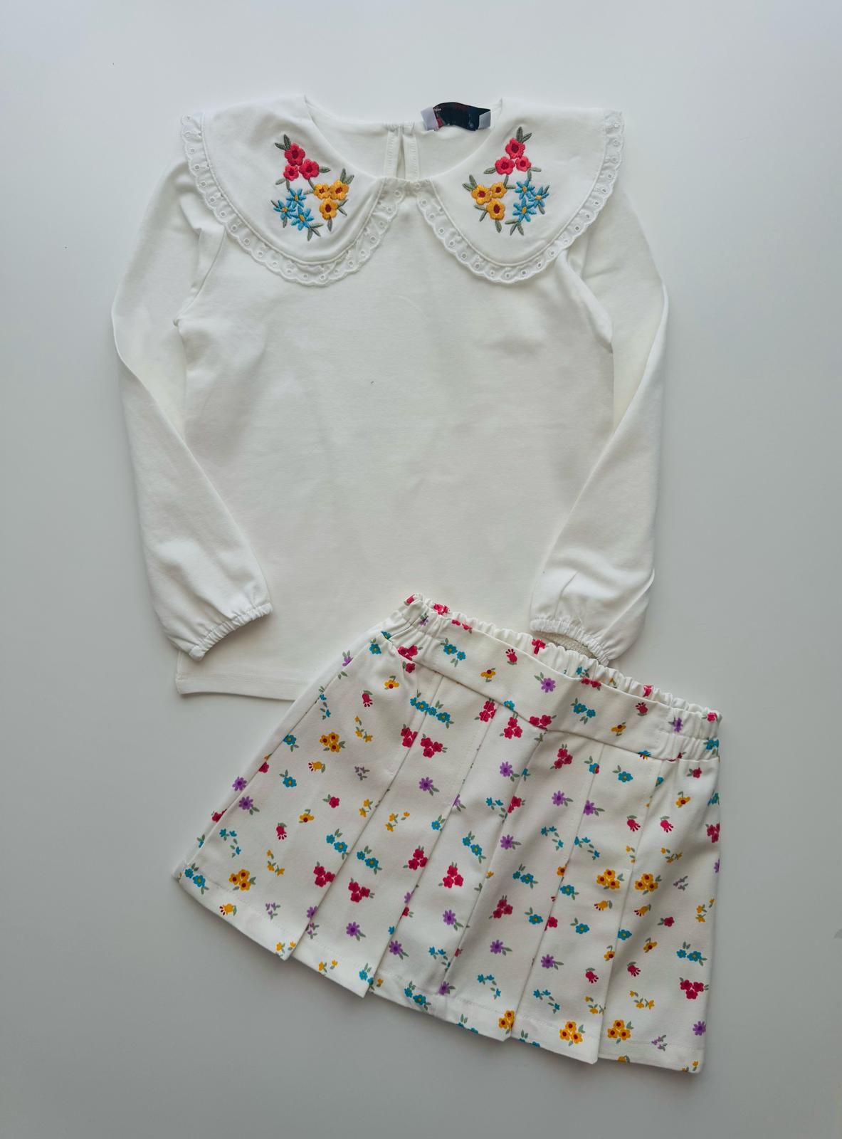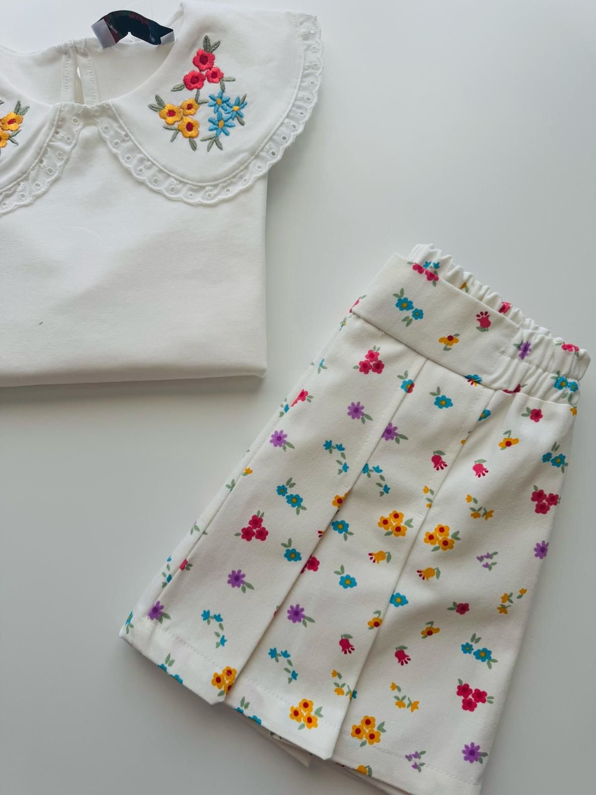 Yakası Nakışlı Deren 2'li Set - Beyaz