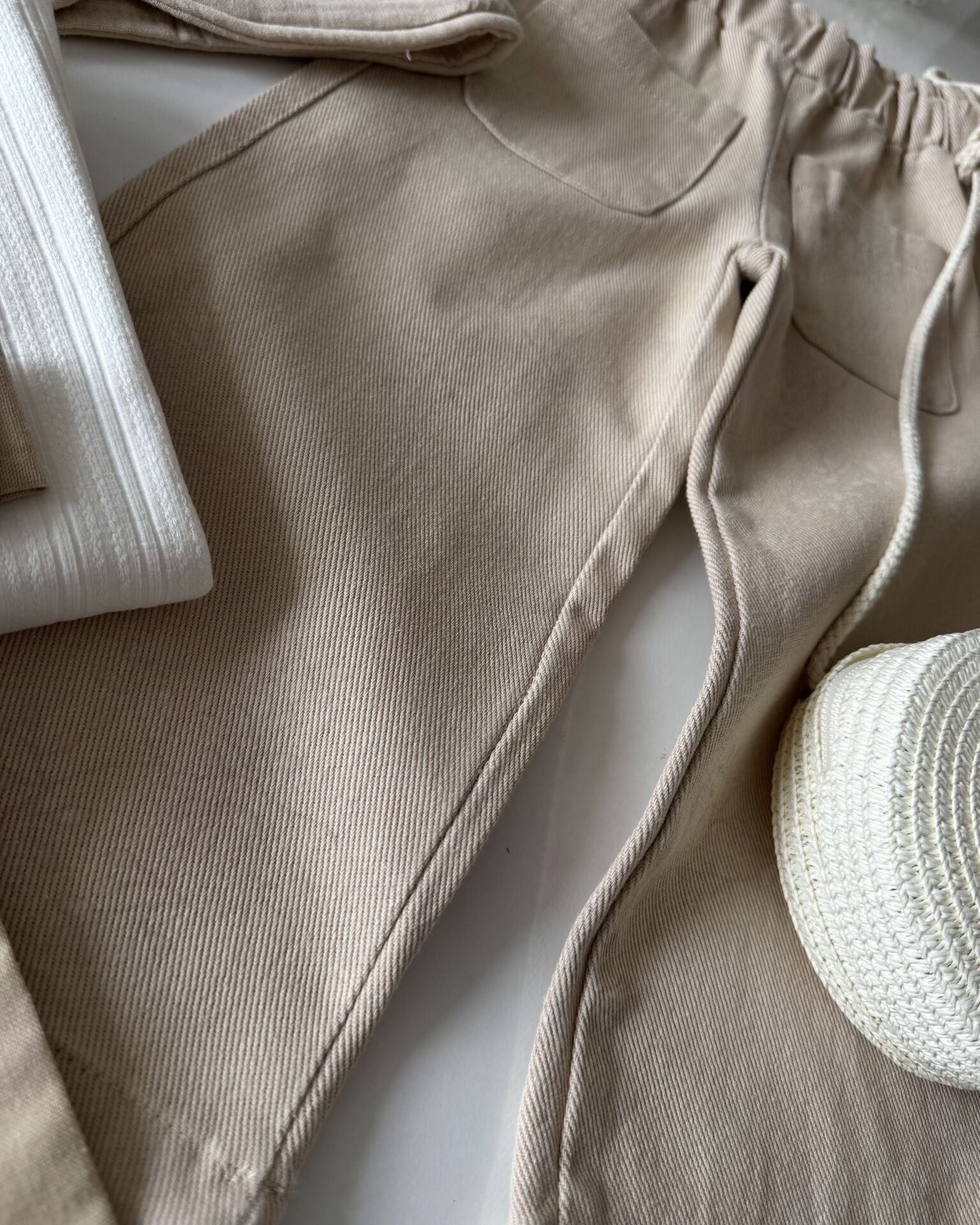 Çiçek İşlemeli Pantolon ve Yelekli 4'lü Set - Bej