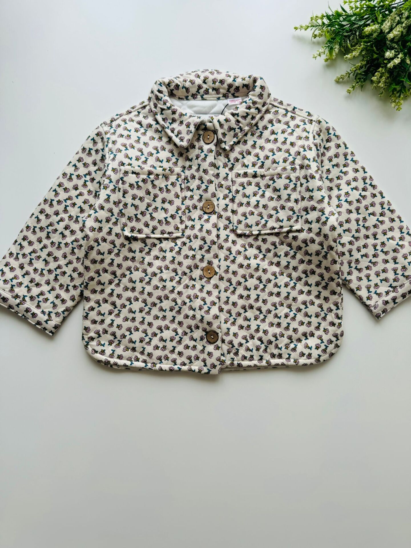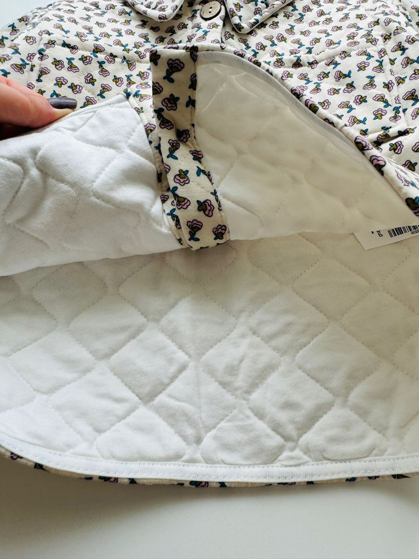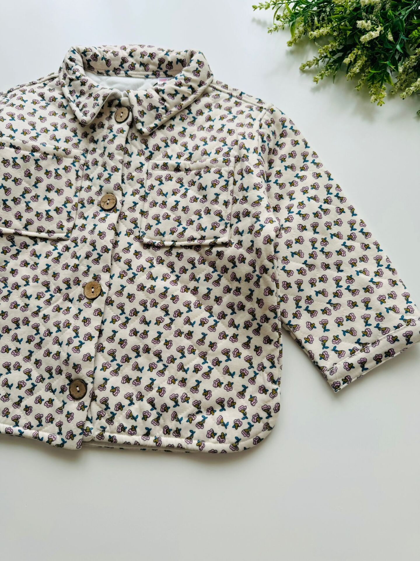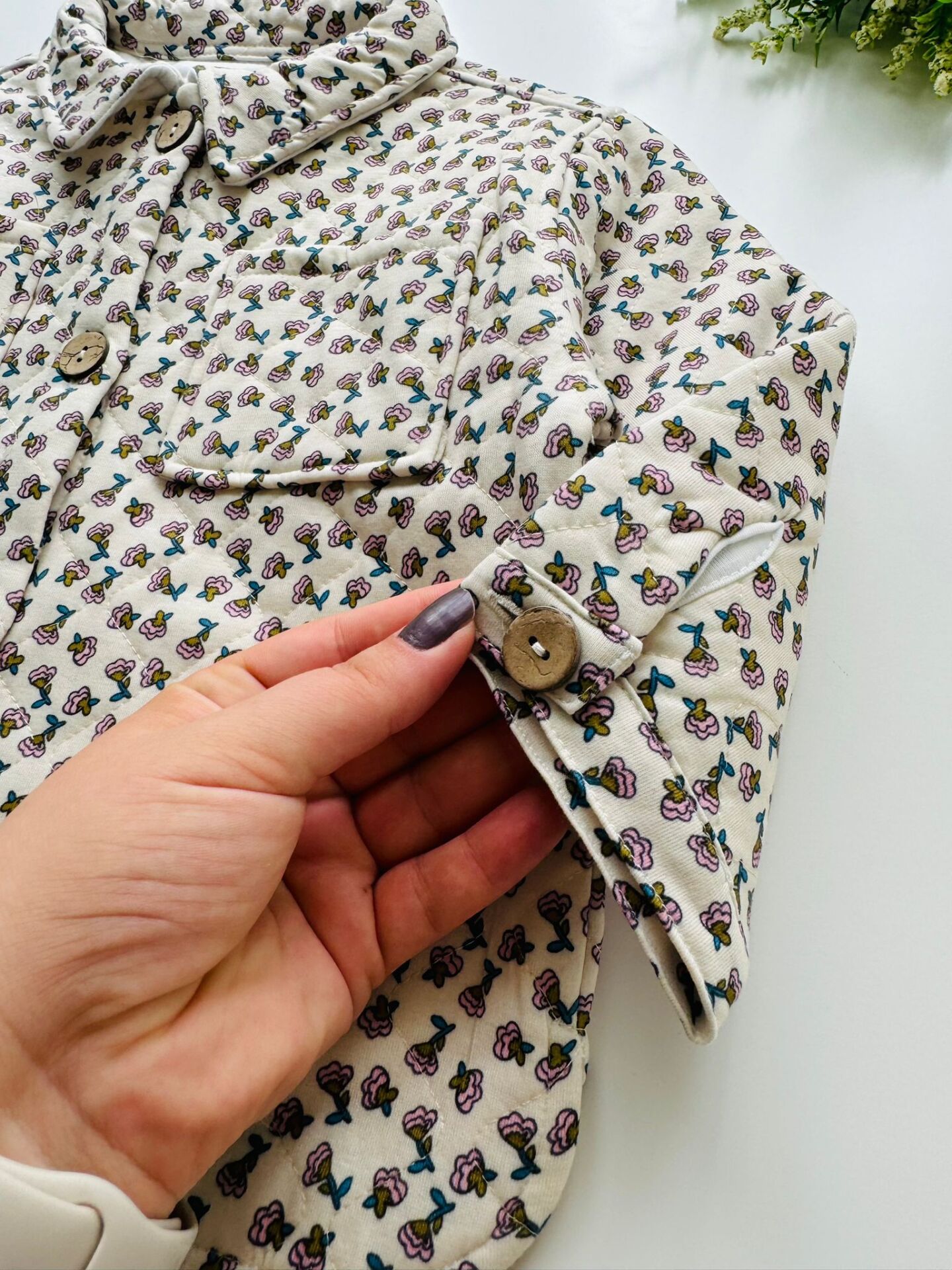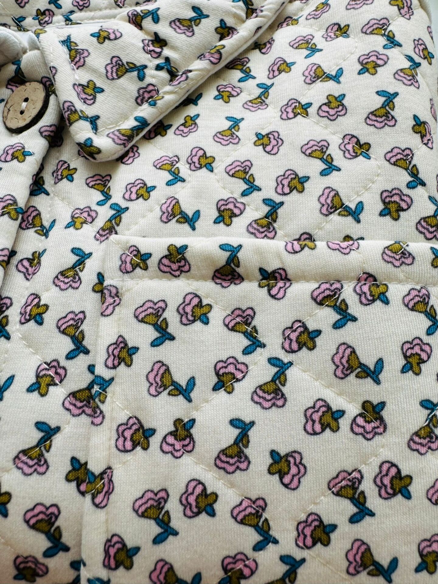 Çiçekli Kapitone Cepli Defne Ceket - Krem