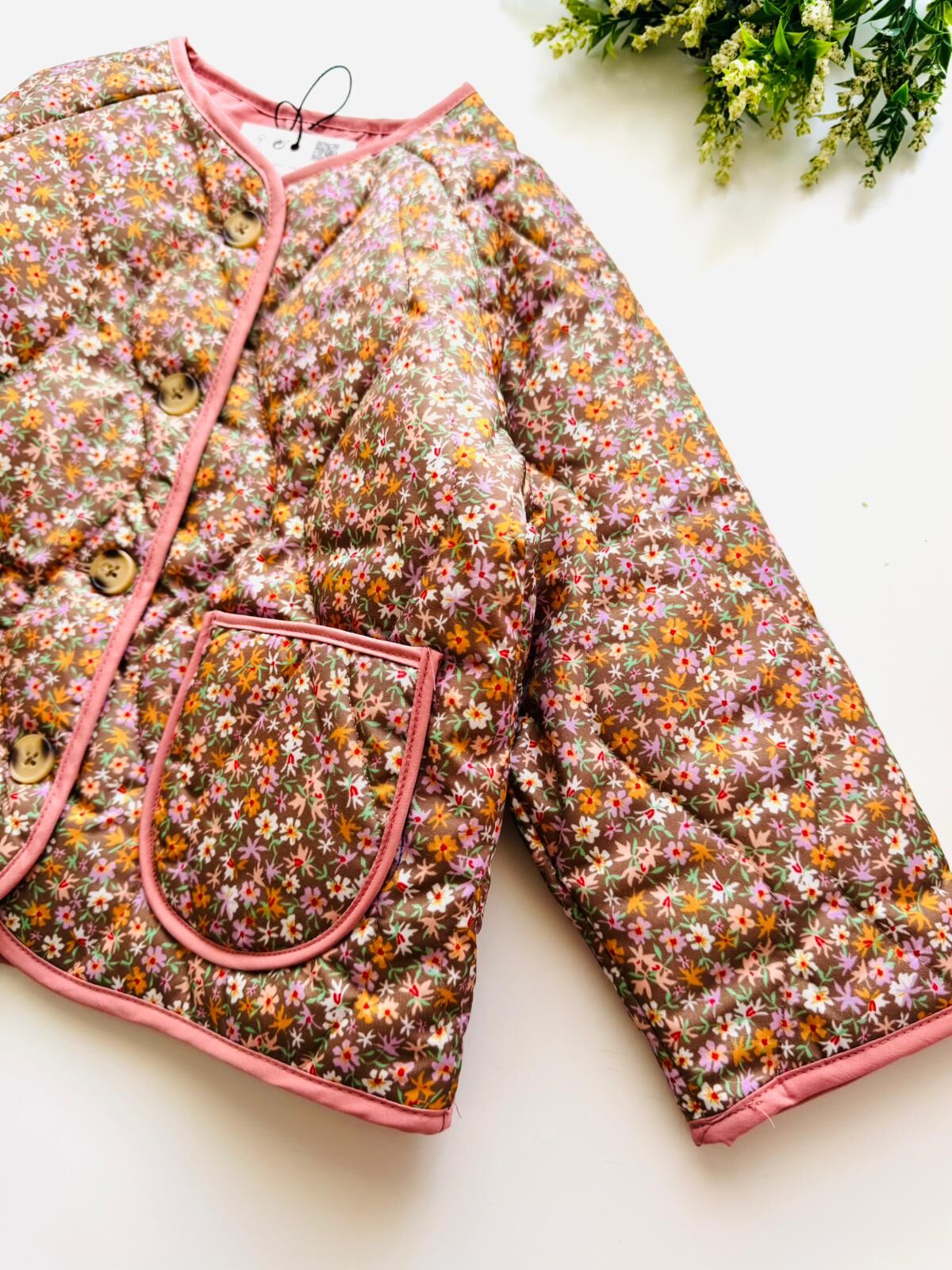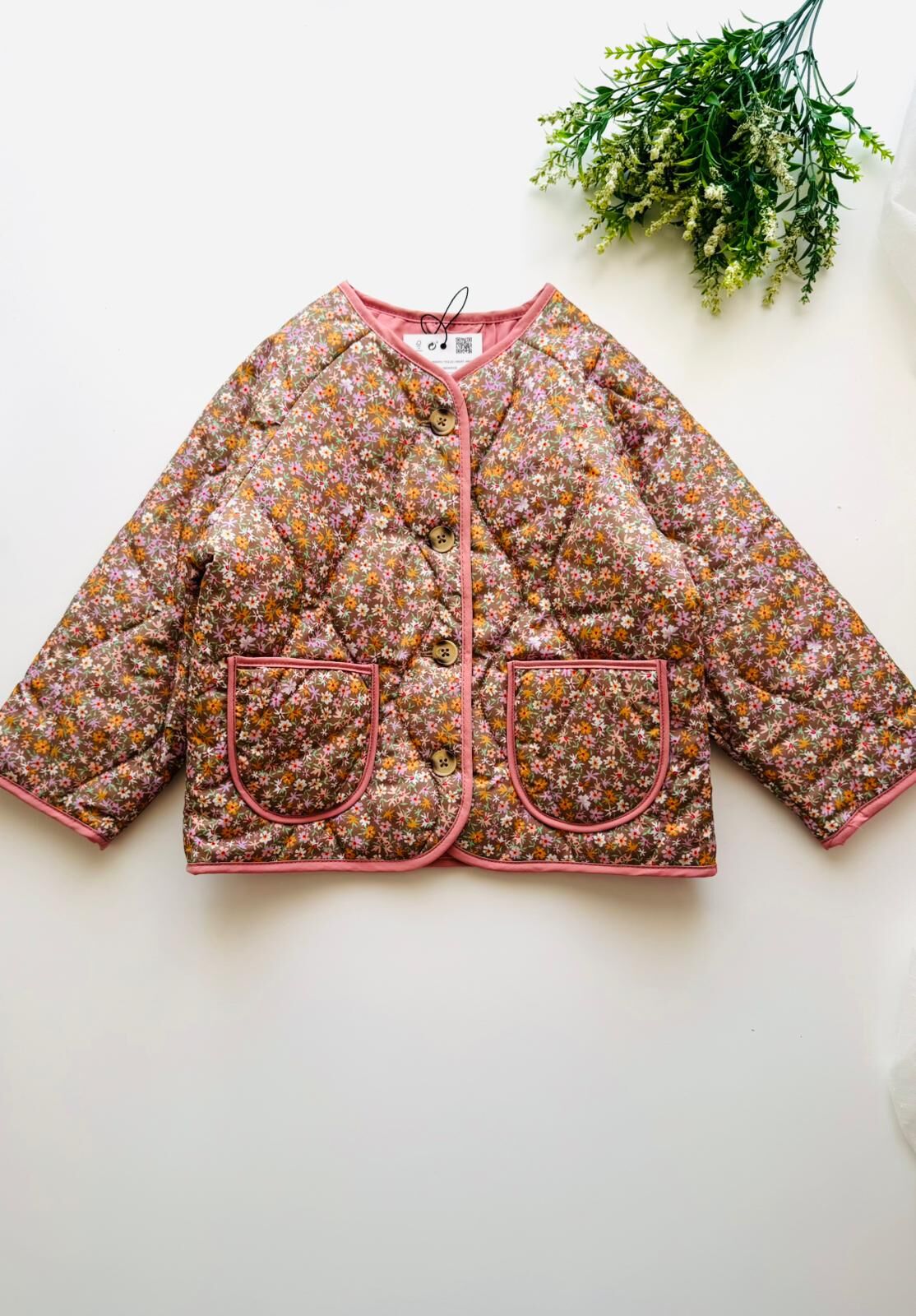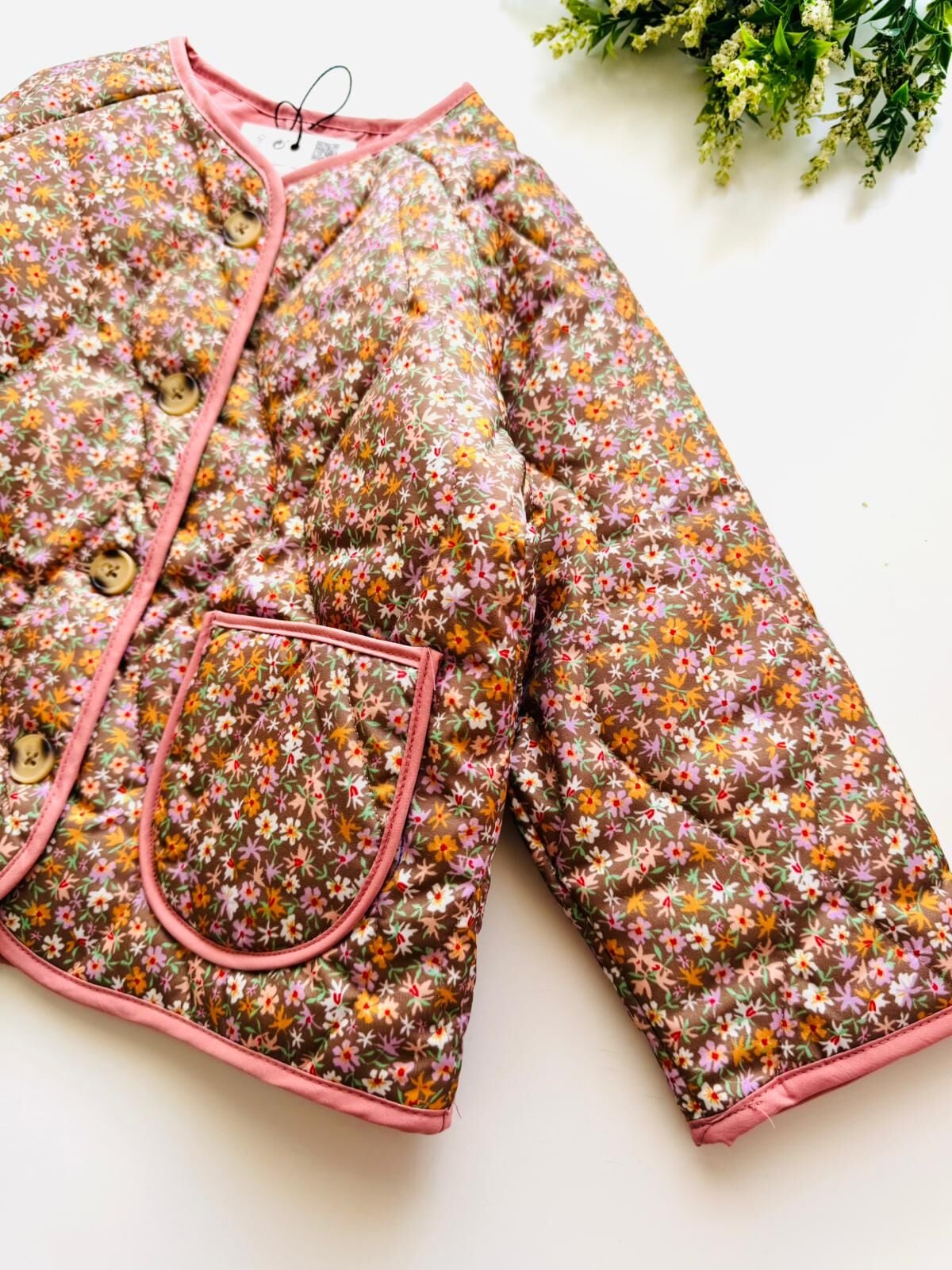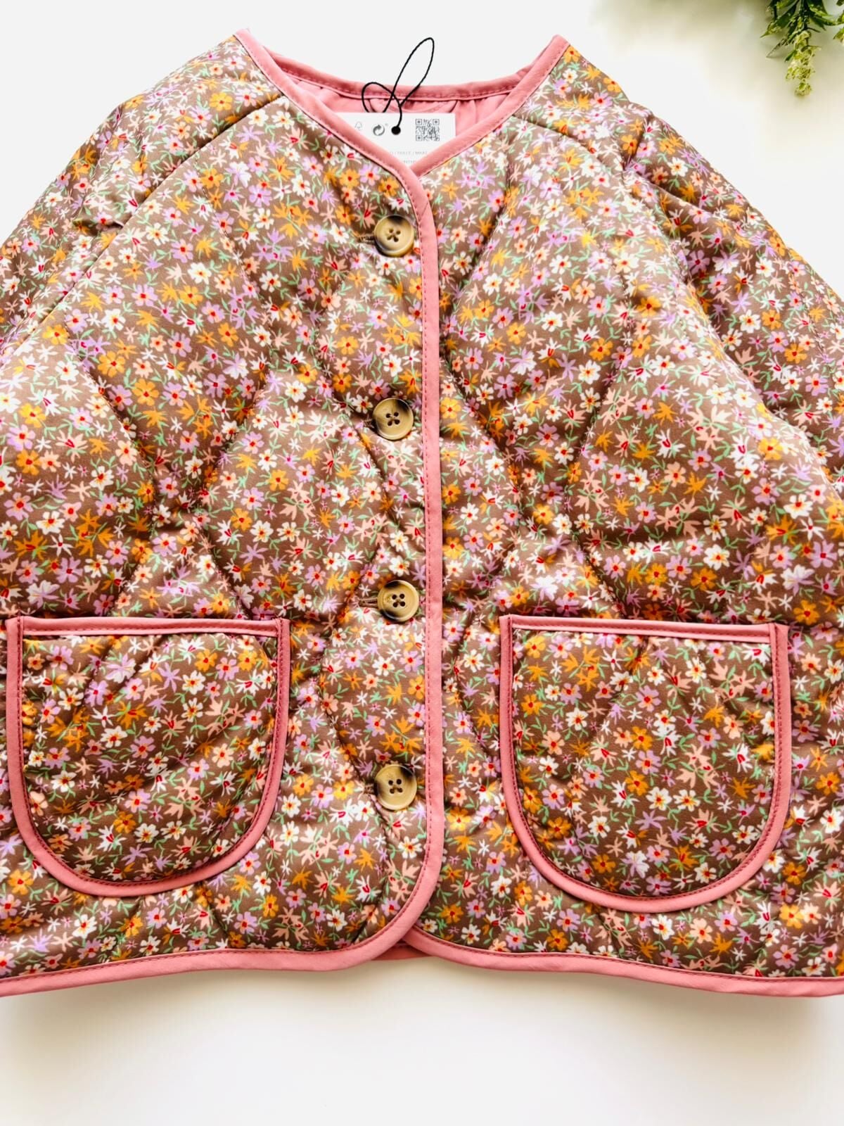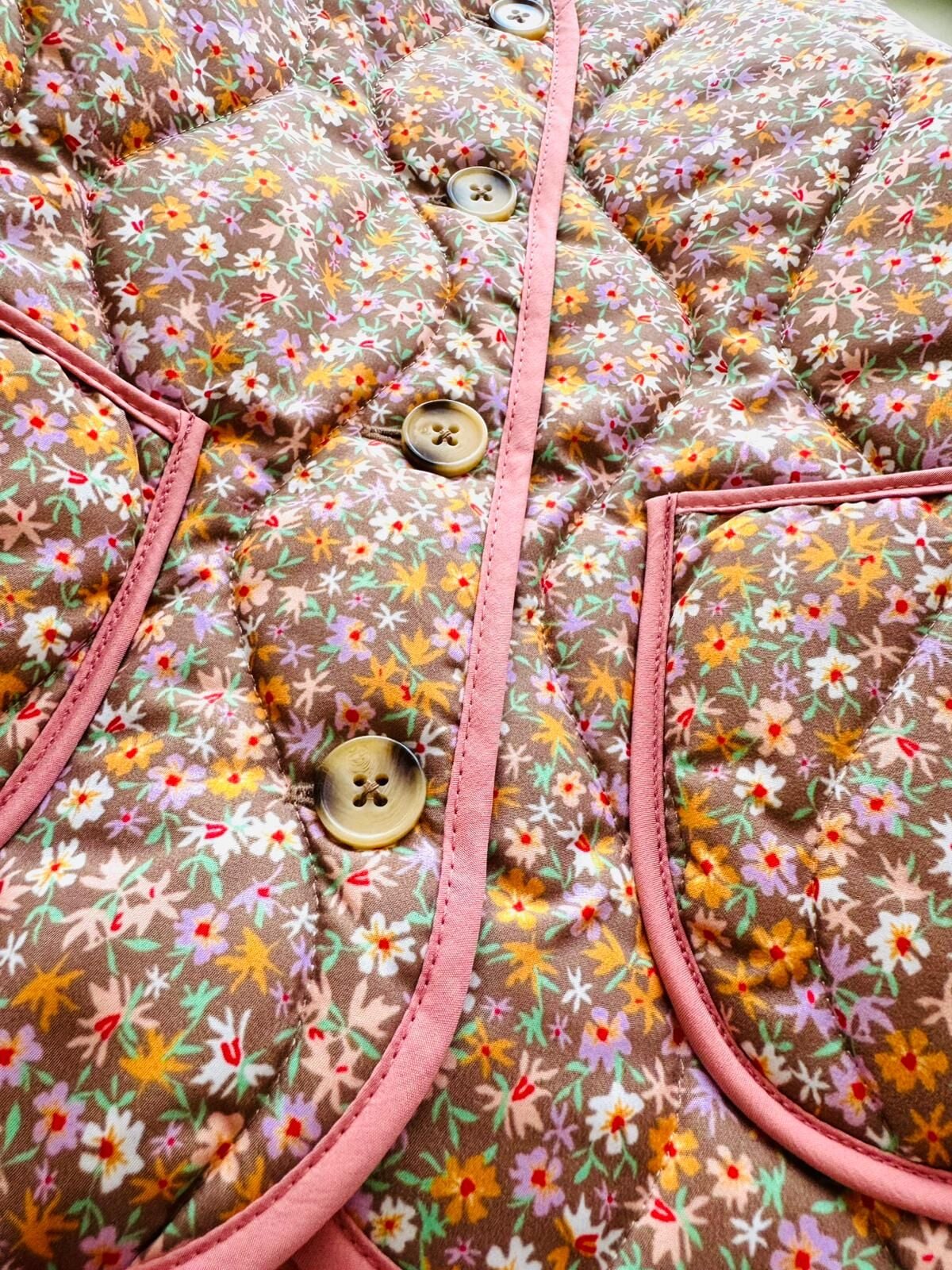 Çiçekli Kapitone Cepli Defne Ceket - Pembe