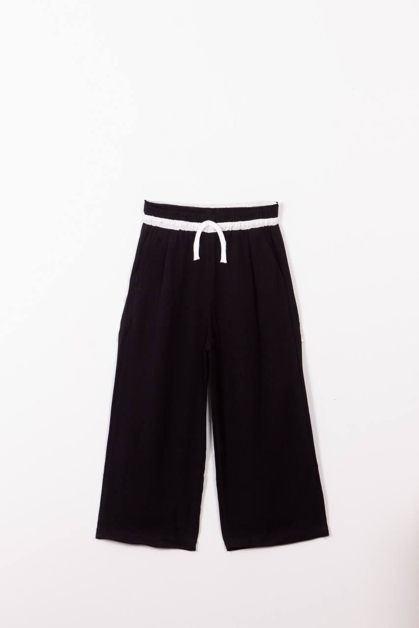 Çift Bel Bantlı Bol Paça Kübra Pantolon - Siyah
