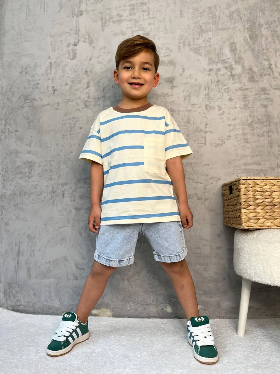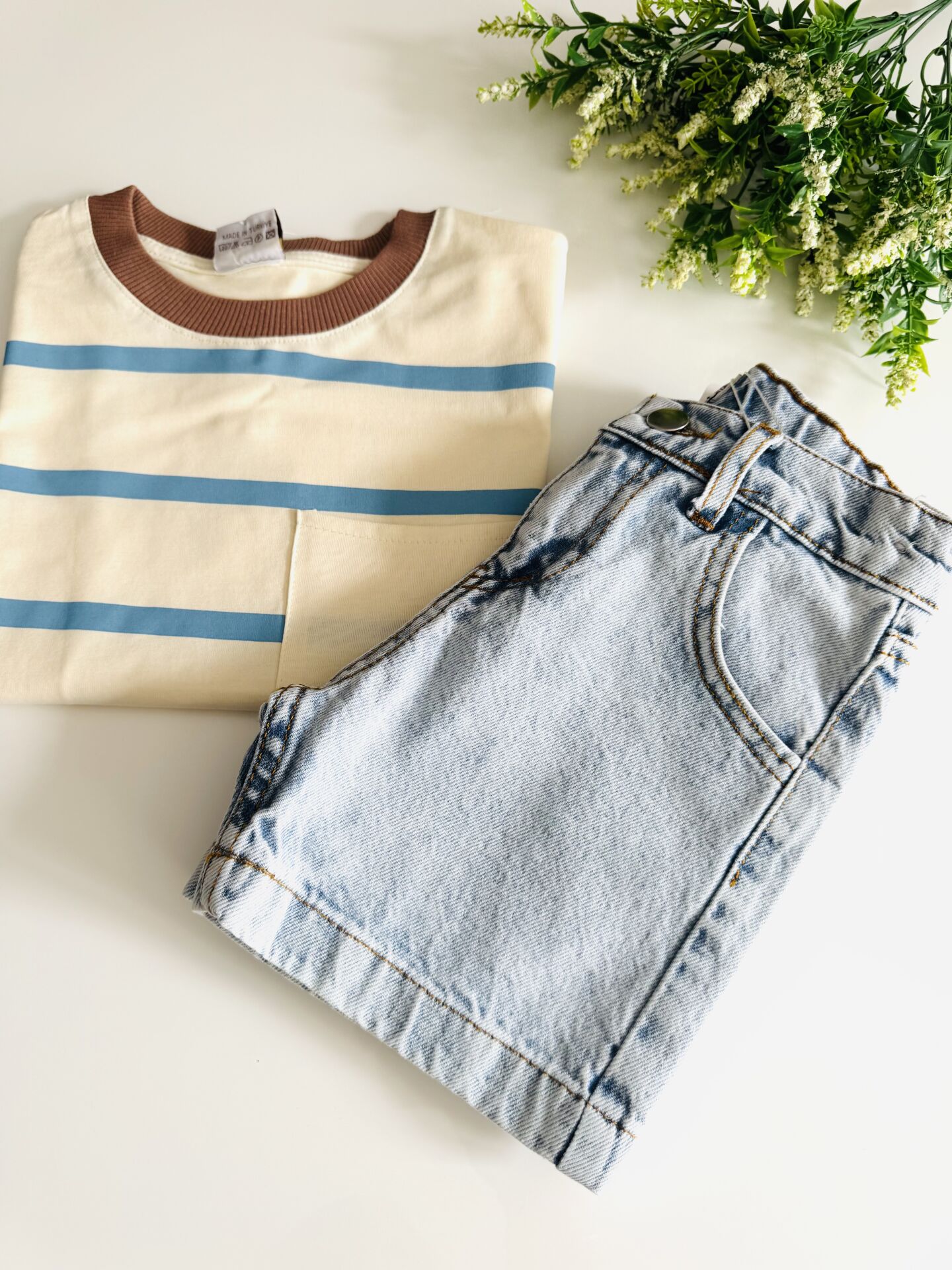 Ürün Bilgisi : son zamanların en trendi çizgili tişört ve denim şort