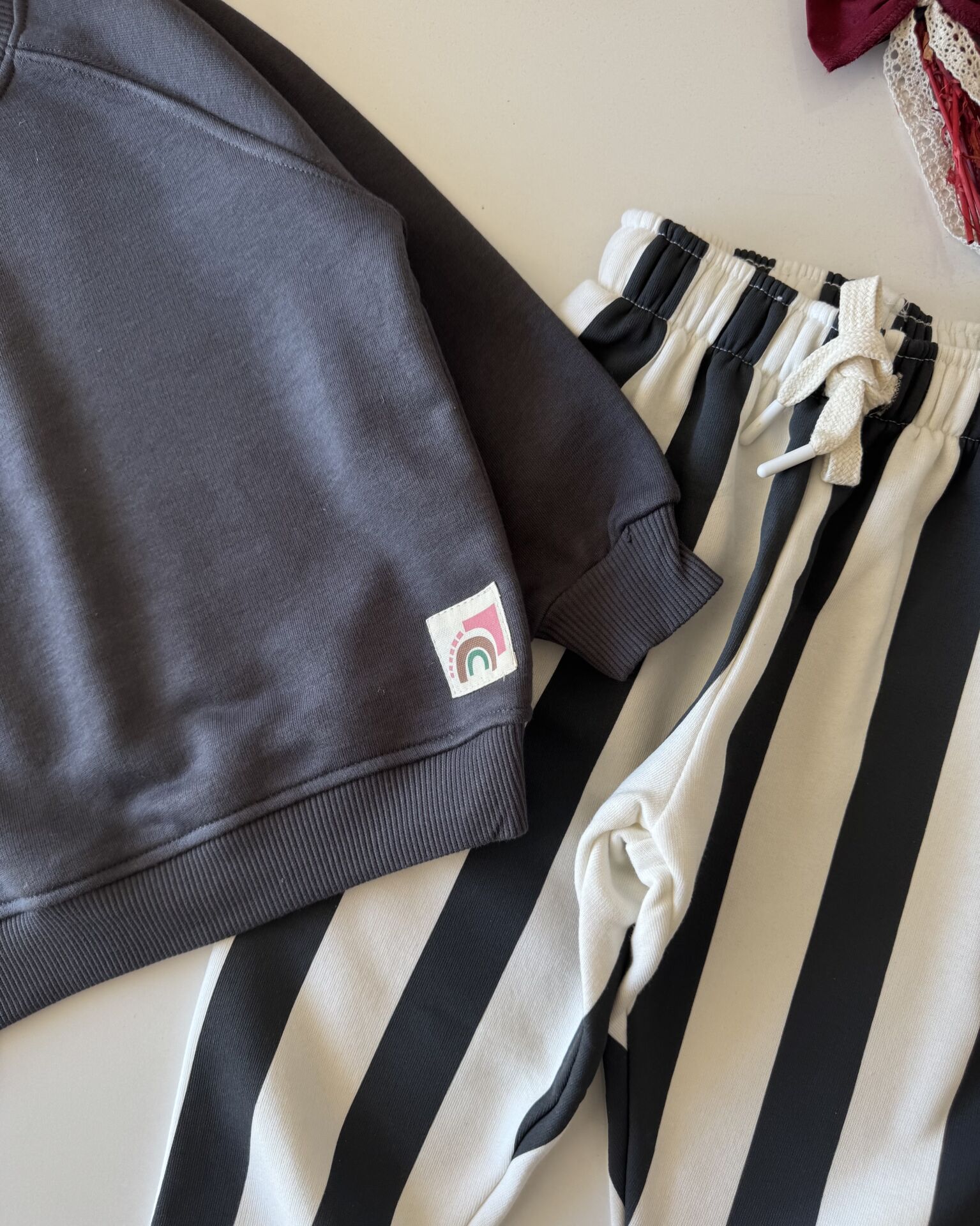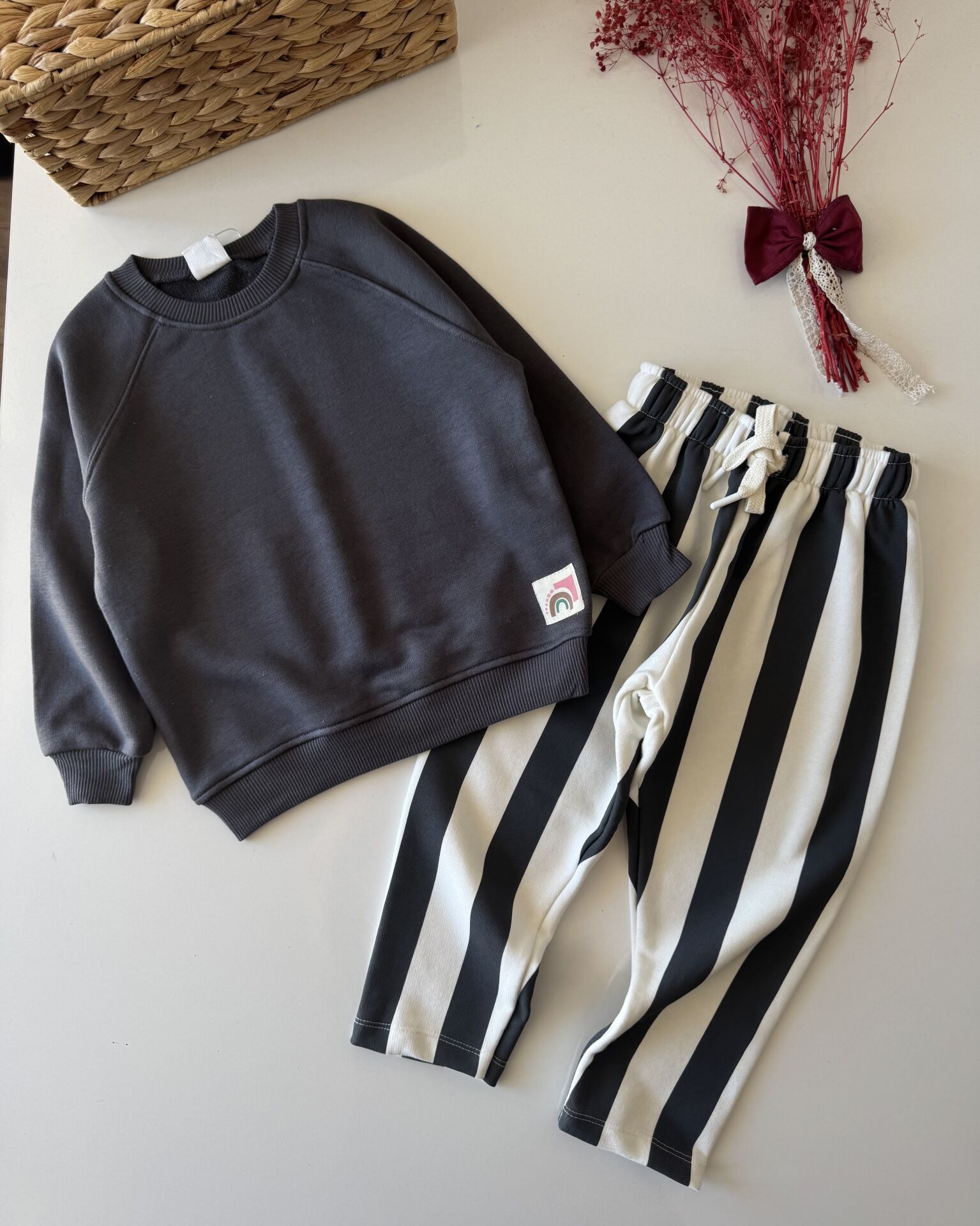 Çizgili Basic Unisex Takım - Füme