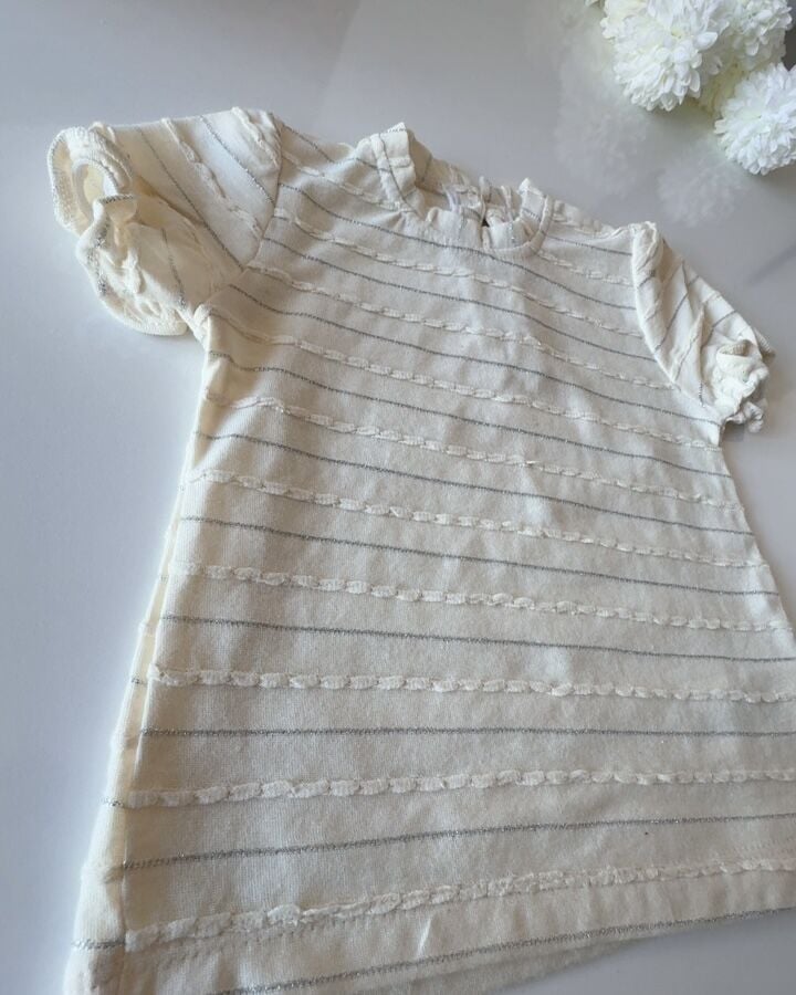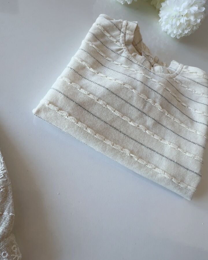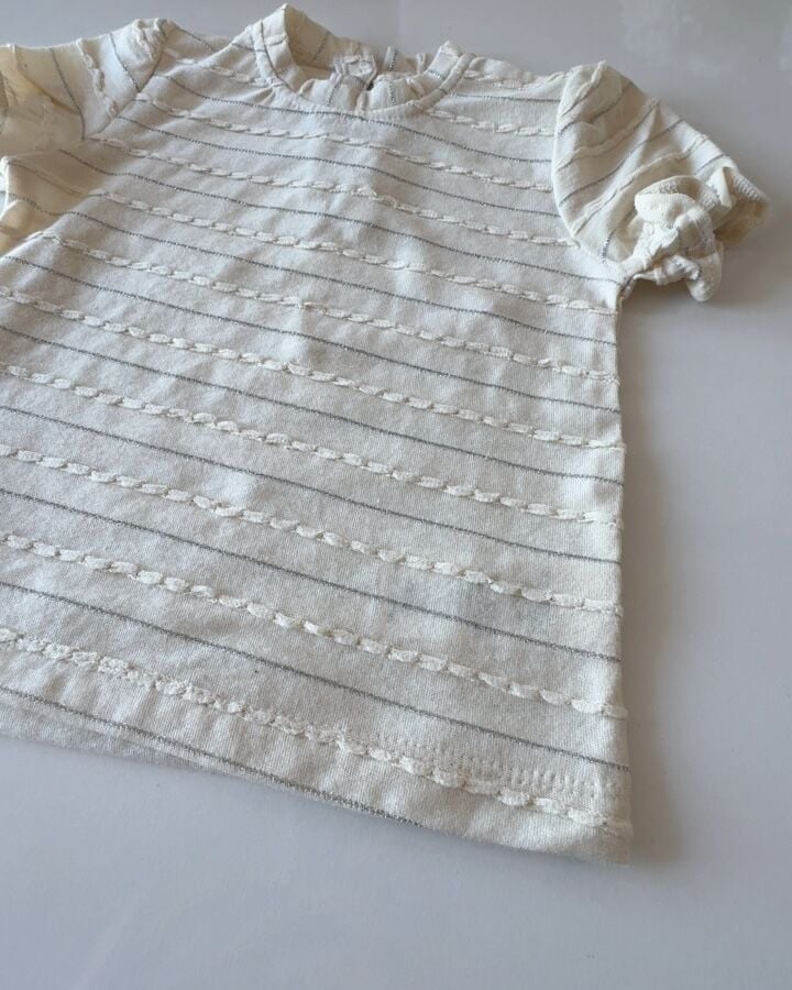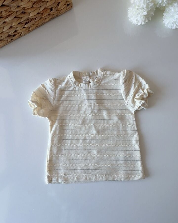 Çizgili Simli Pamuklu Tişört - Krem Simli