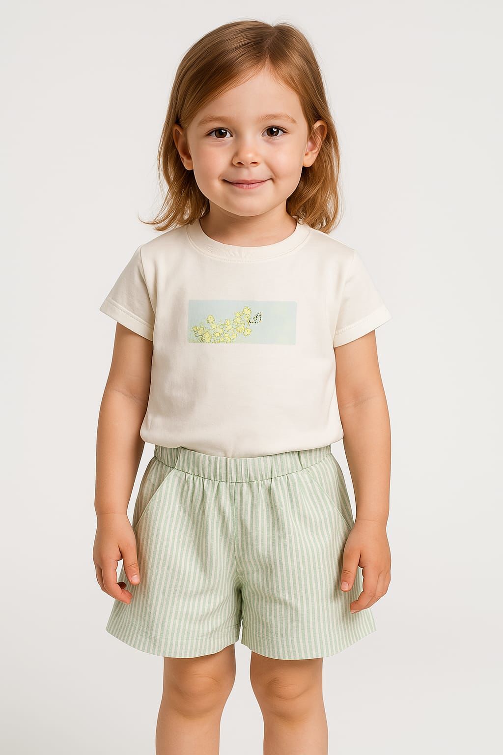 Ürün Bilgisi : PAstel tonlarda tişört ve çizgili içi incecik astarlı şort