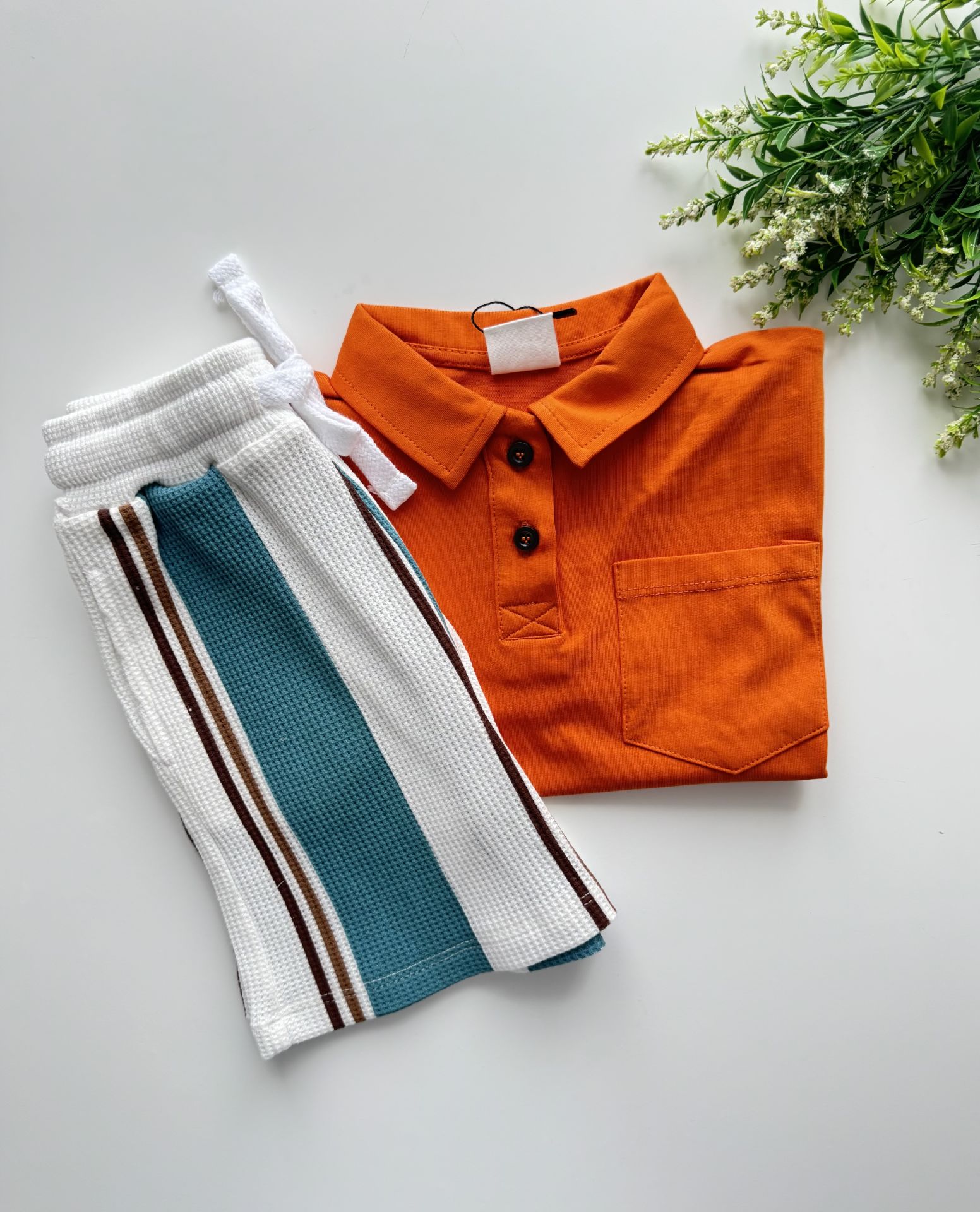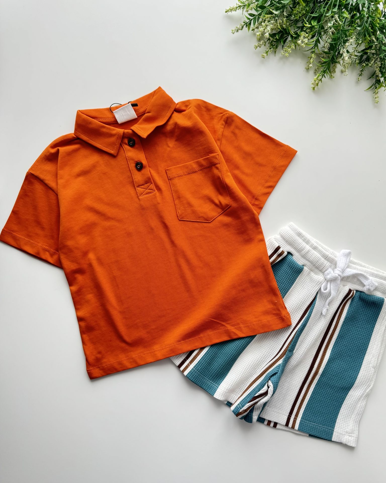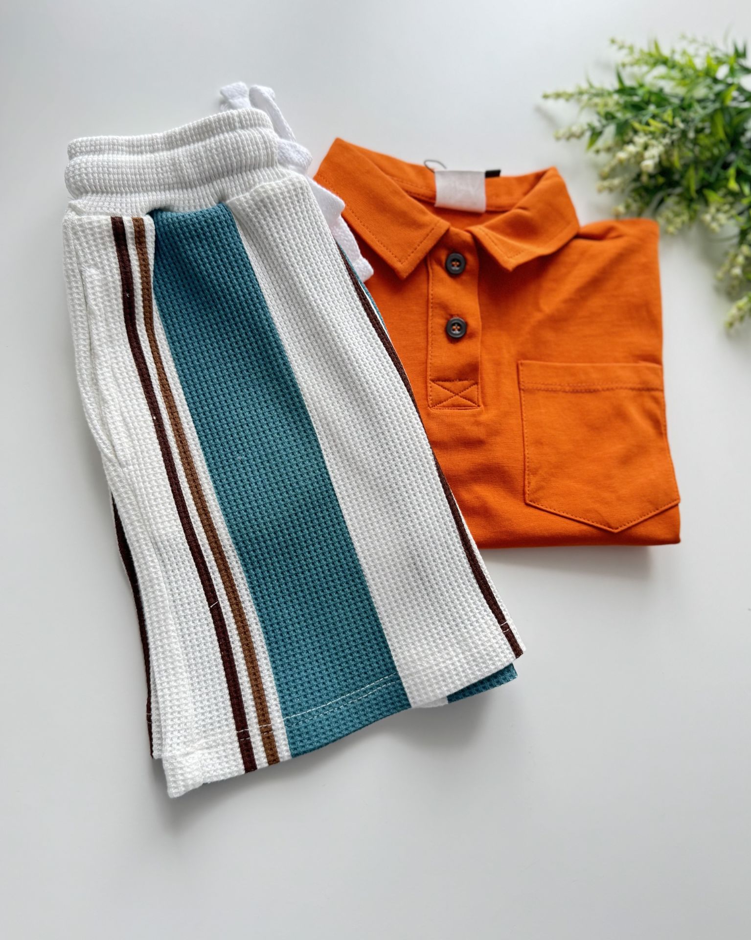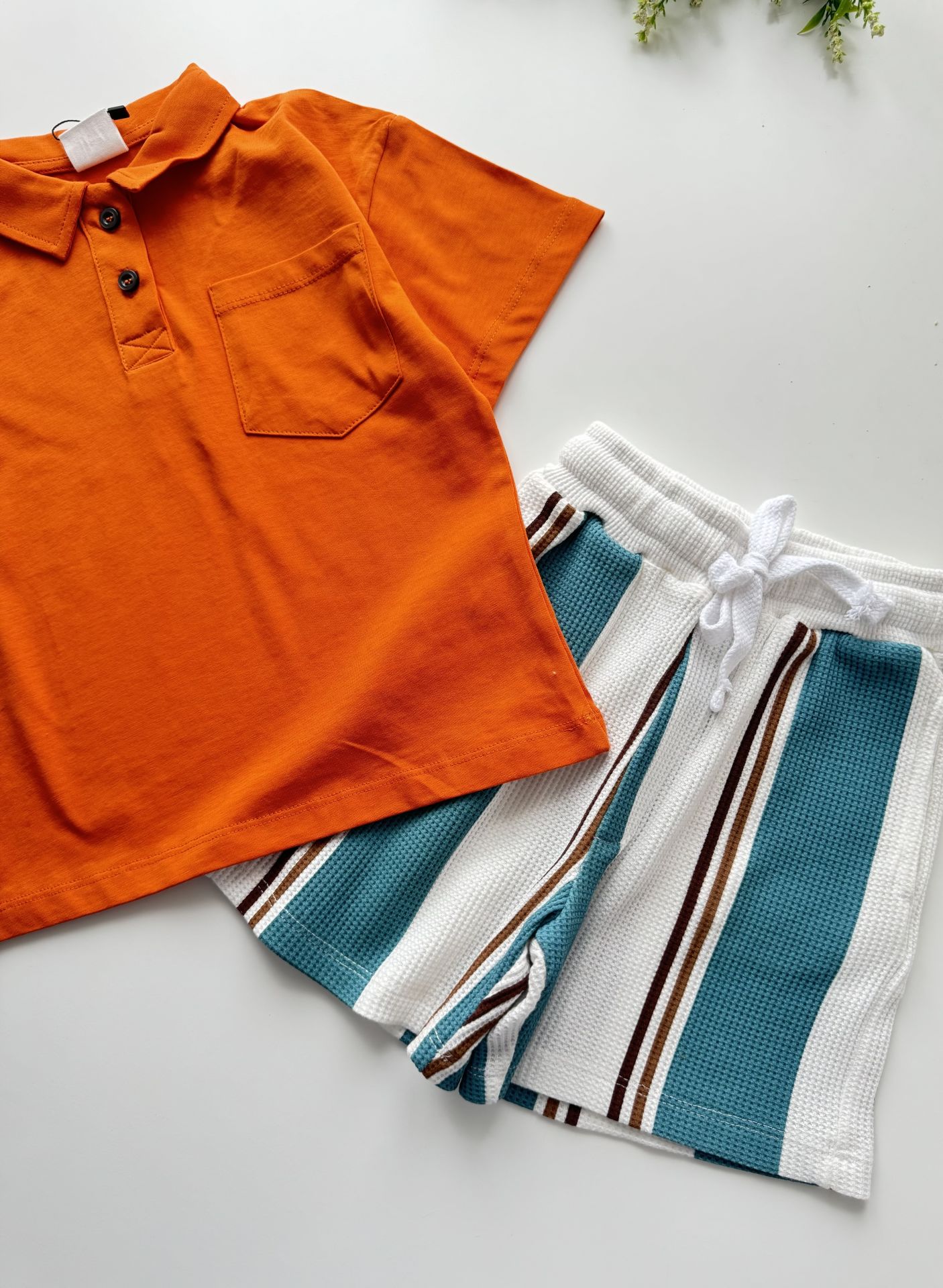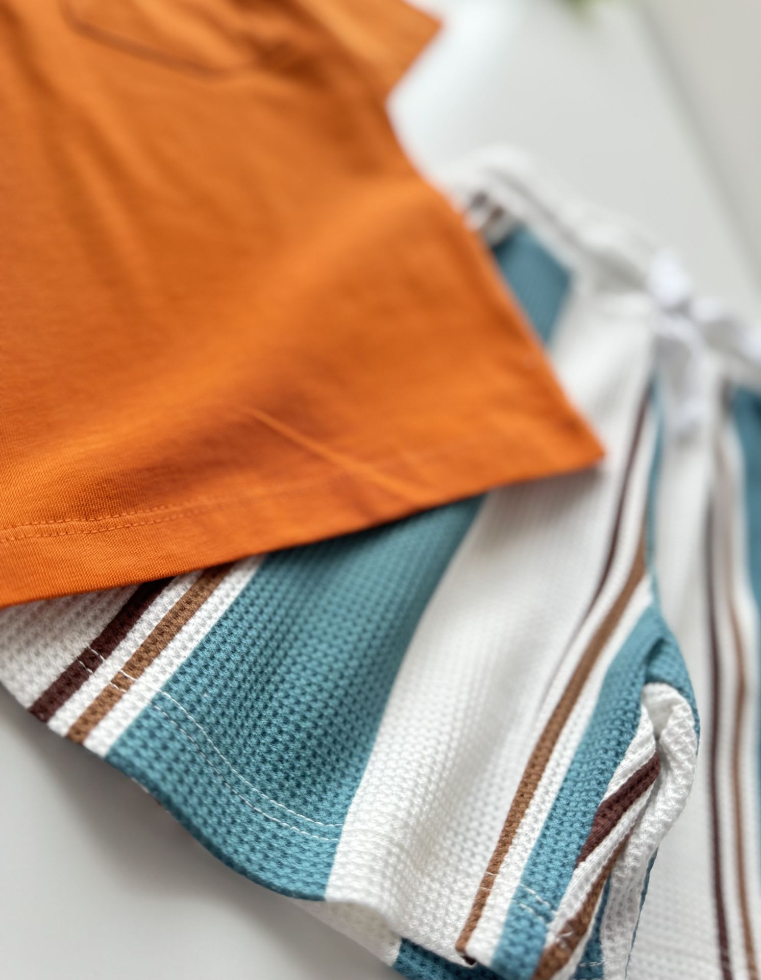 Çizgili Şortlu Bohemian Yaman Takım - Kiremit