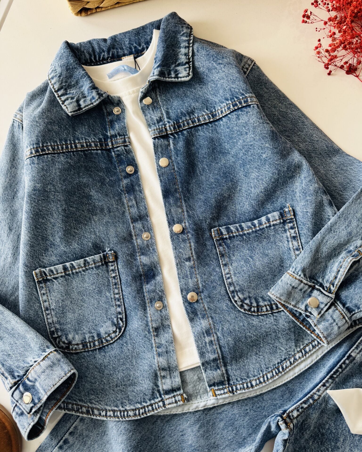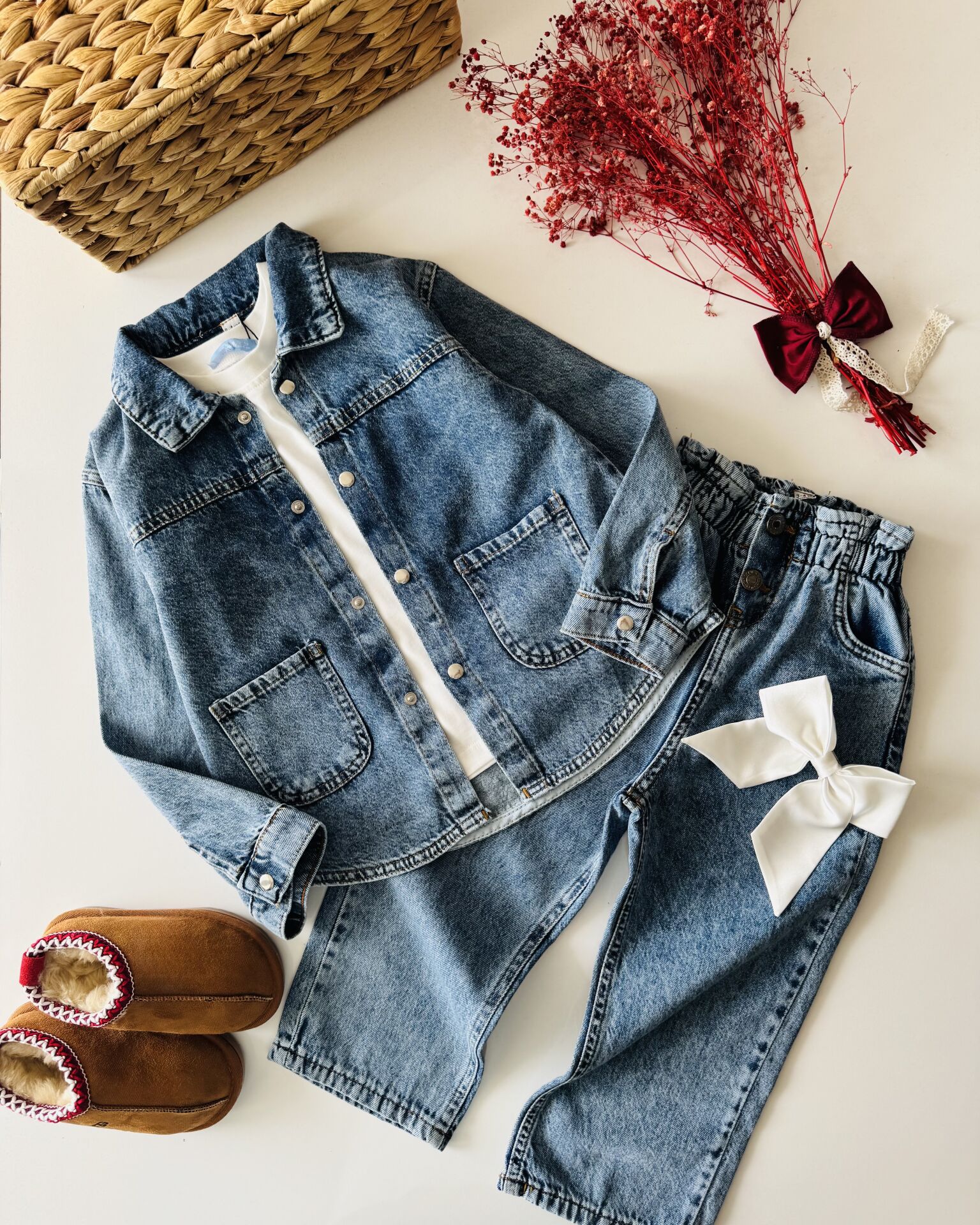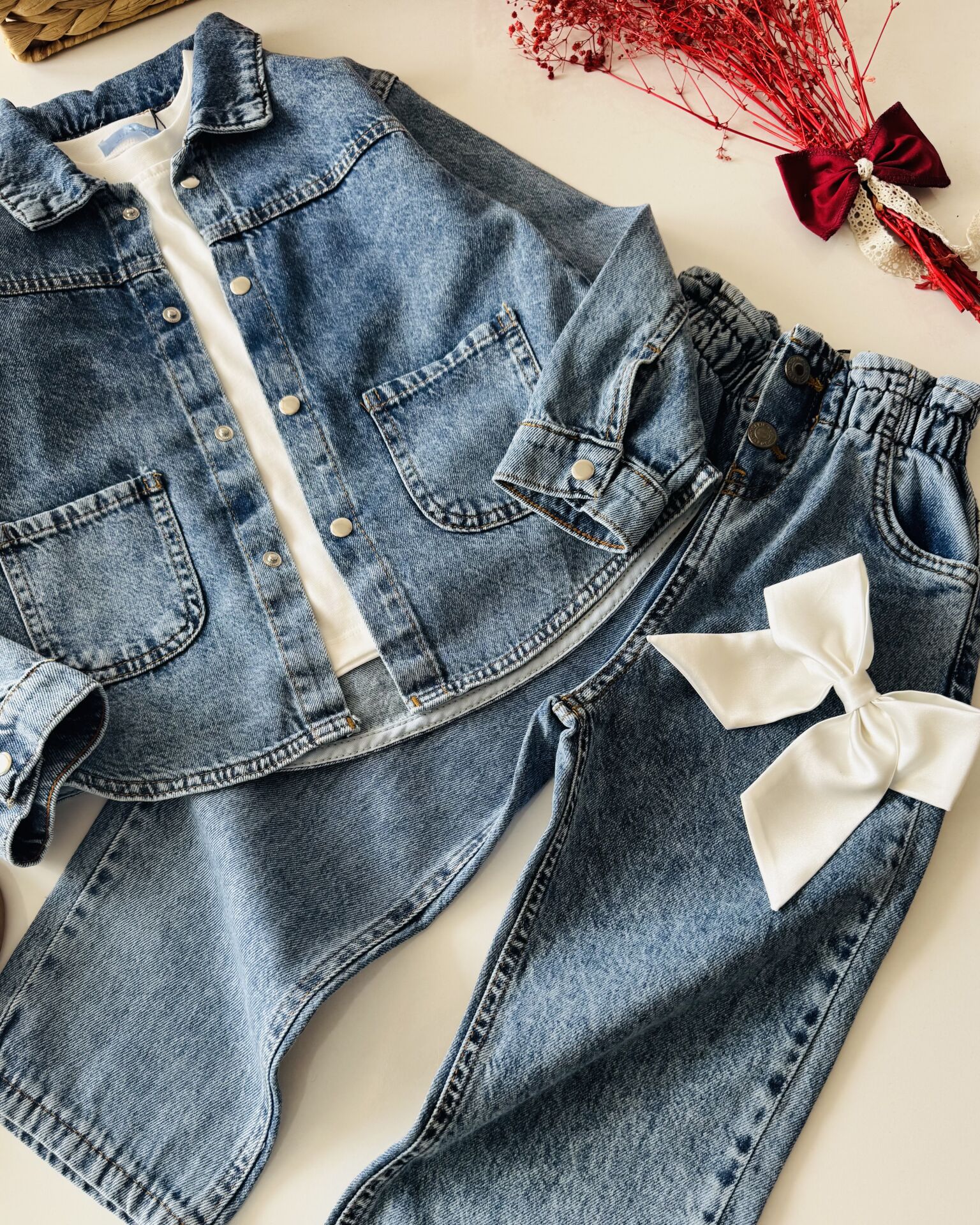 Denim Ceketli Pantolonlu 2'li Set - Mavi
