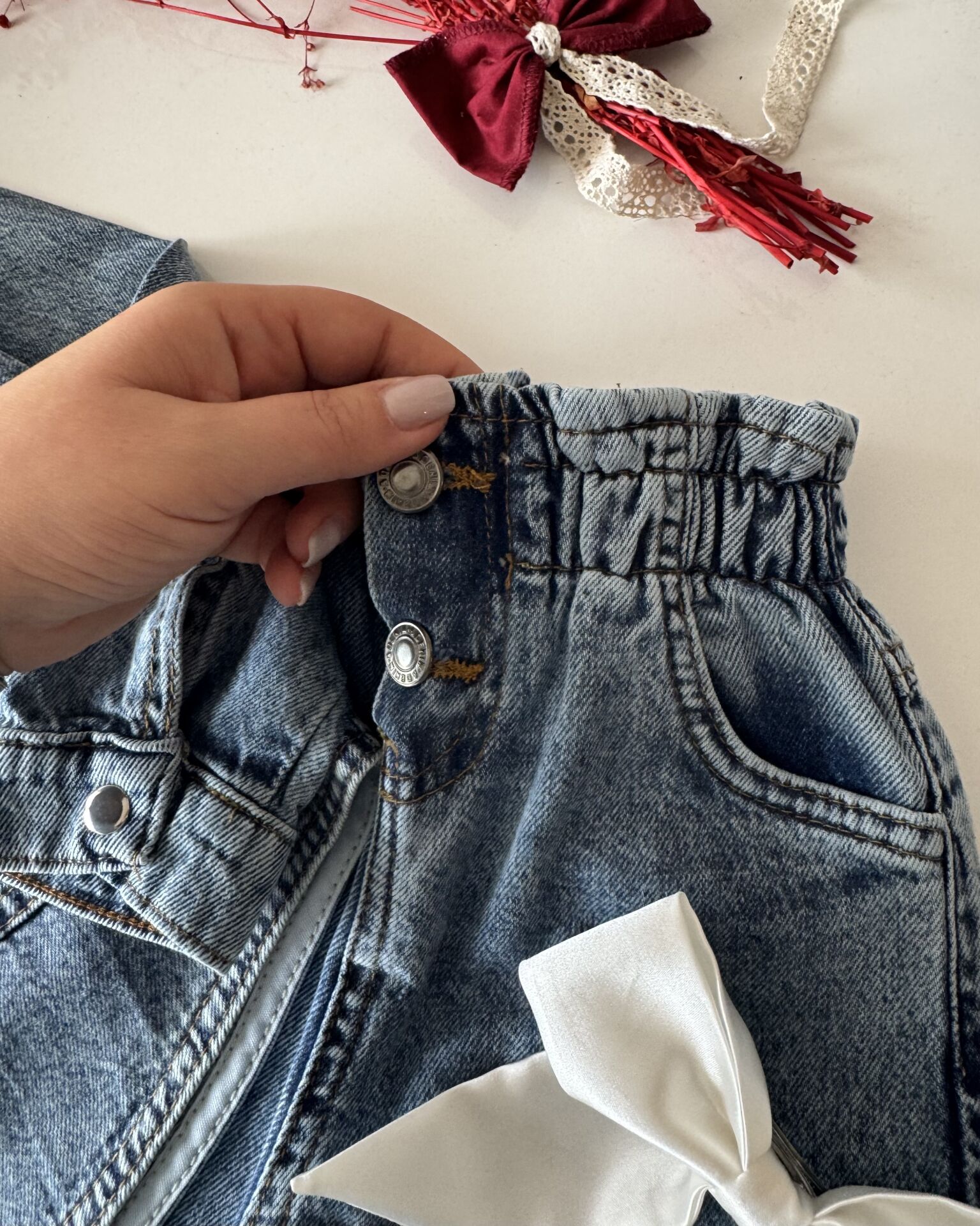 ‣ Denim Kumaştır Ürünler de pamuk oranı yüksektir.Terletmez, nefes alan kumaş.