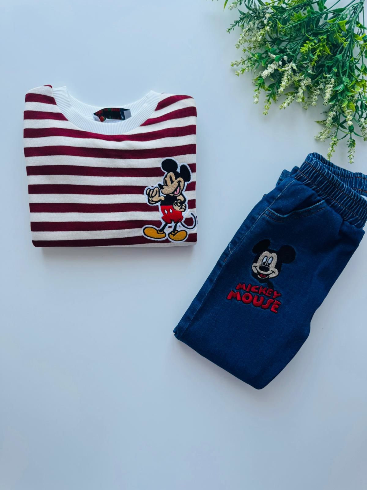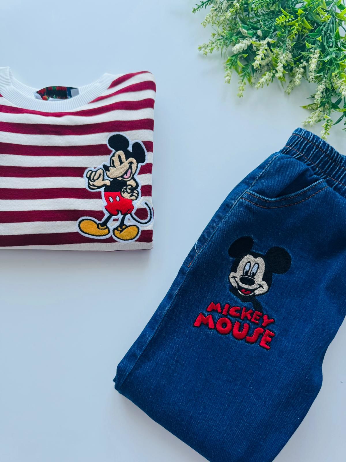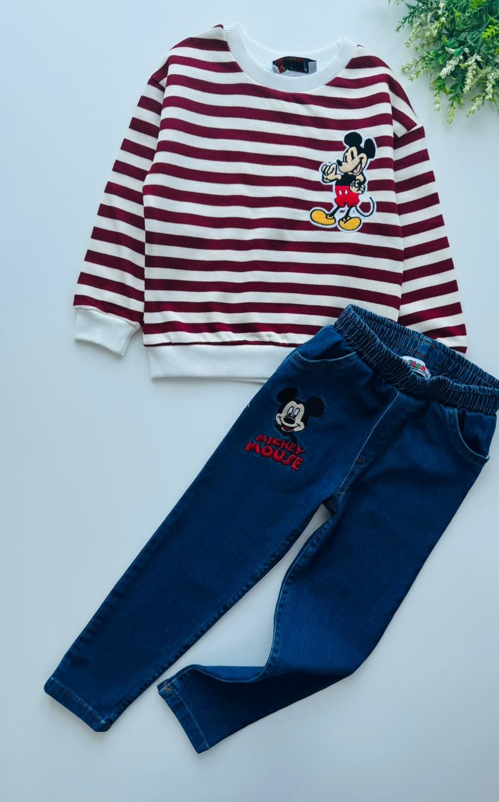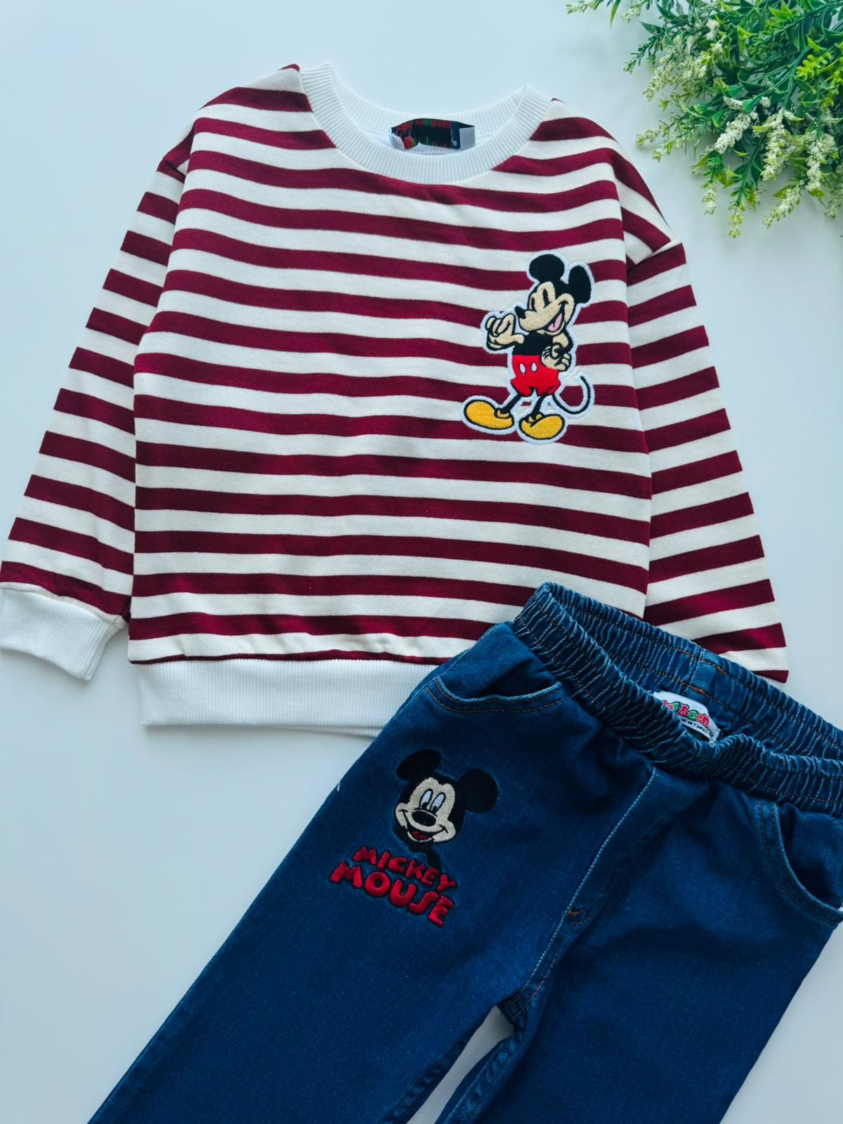 Denim Pantolon Çizgili Sweatshirt - Bordo