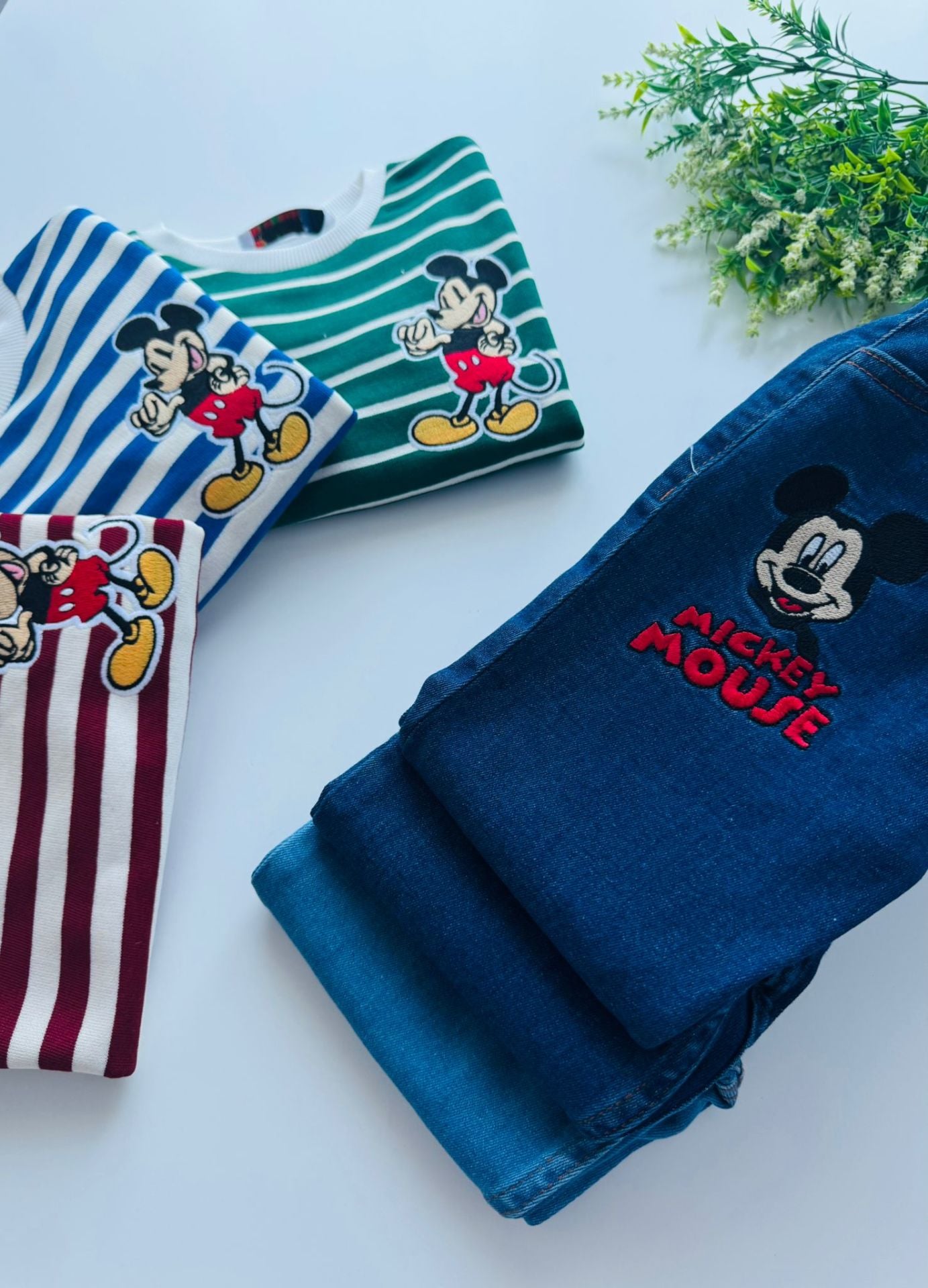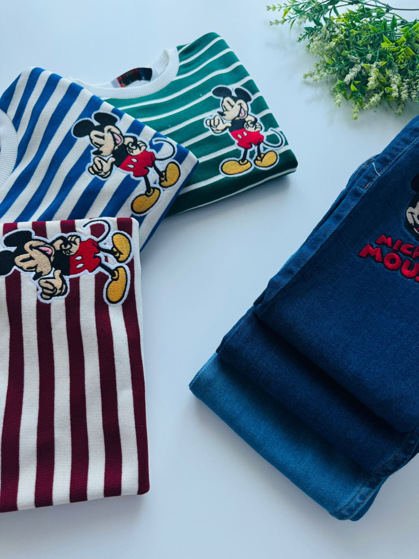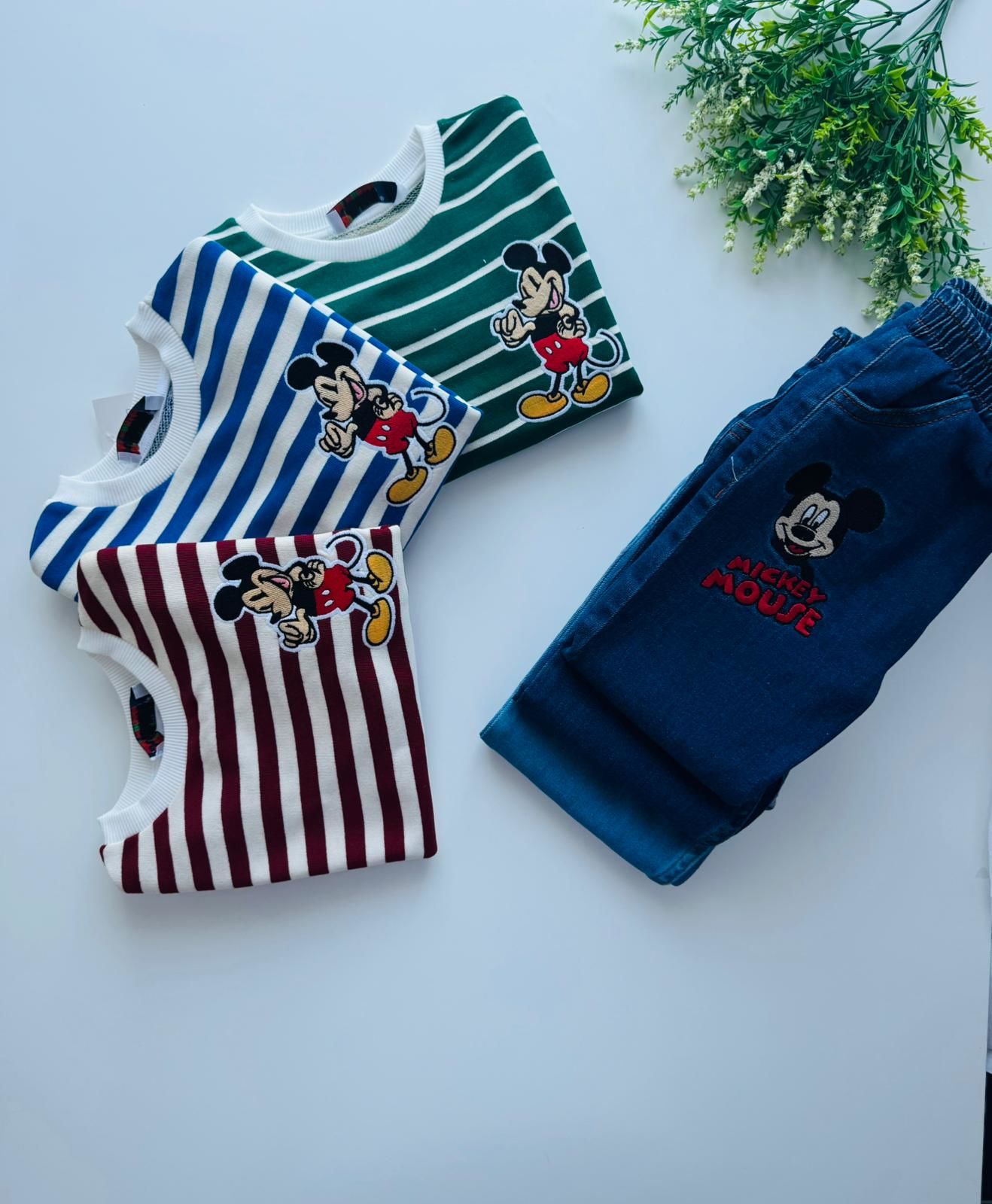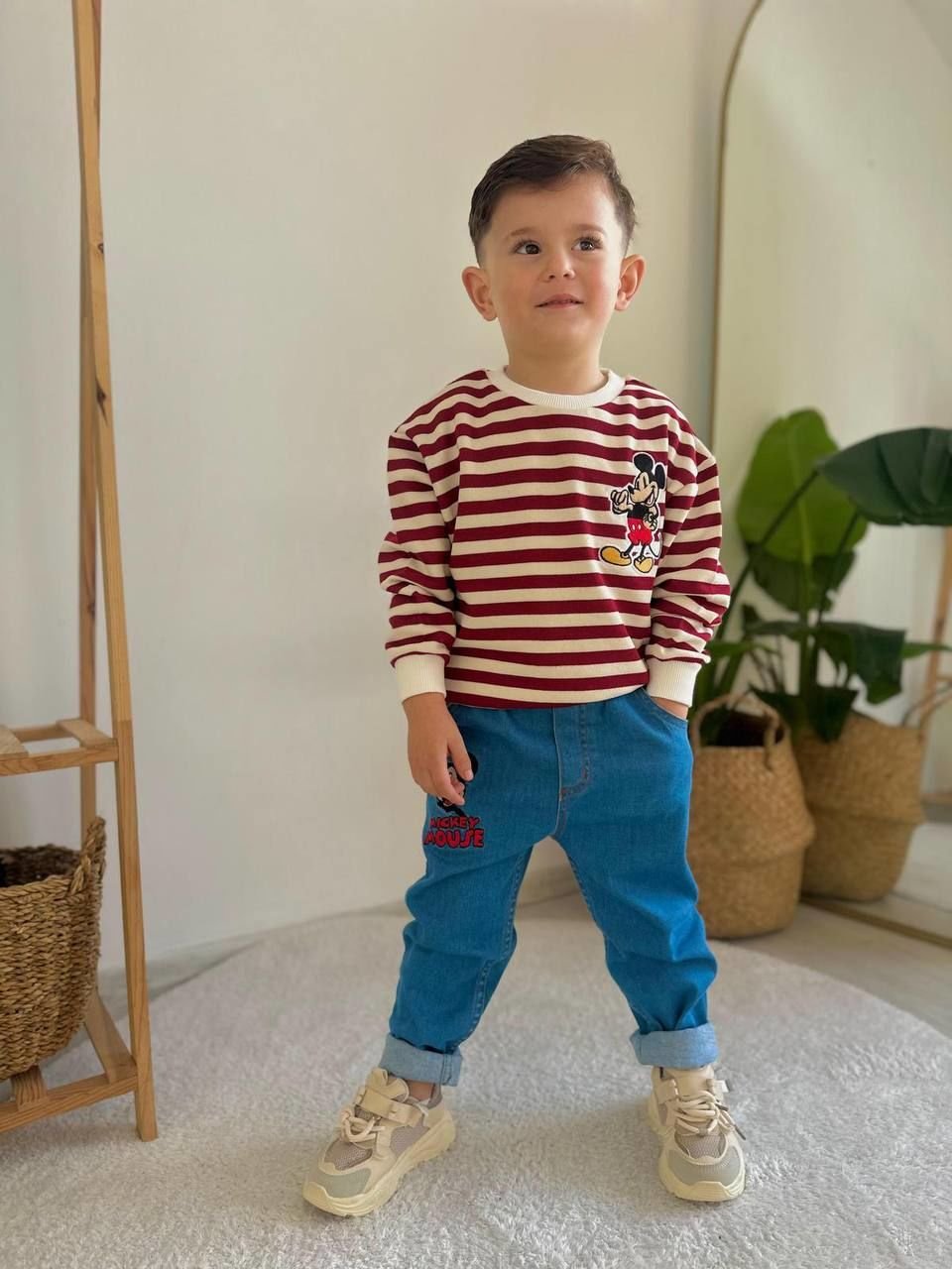 Denim Pantolon Çizgili Sweatshirt - Bordo