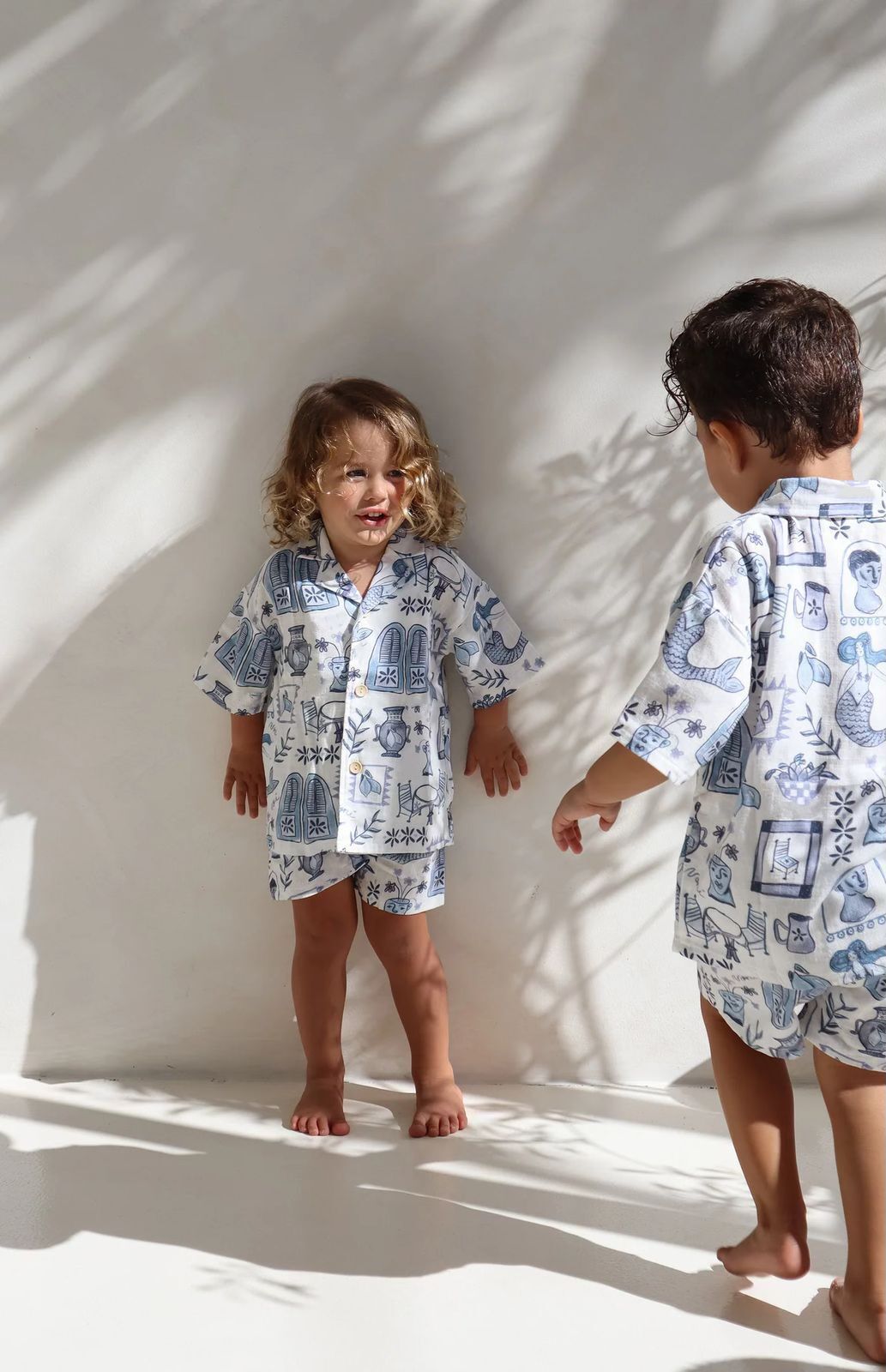 Alaçatı Desenli Müslin Şort Efe Takım - Mavi