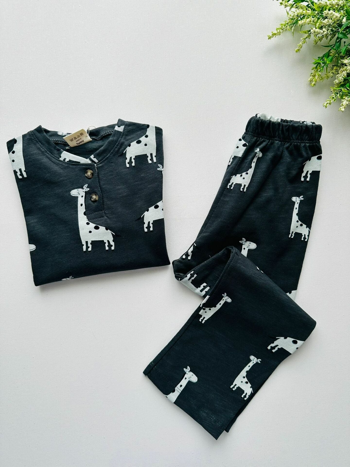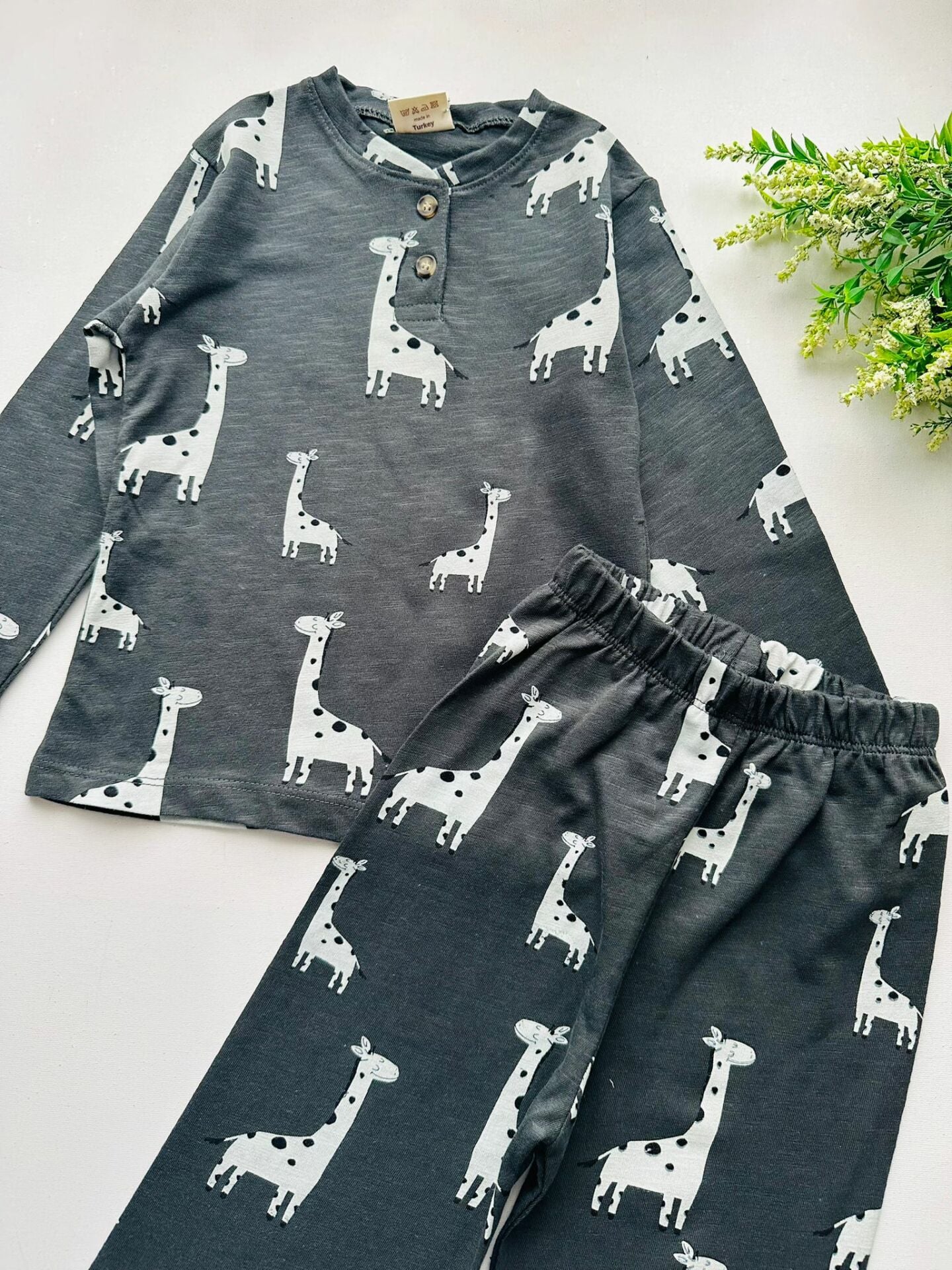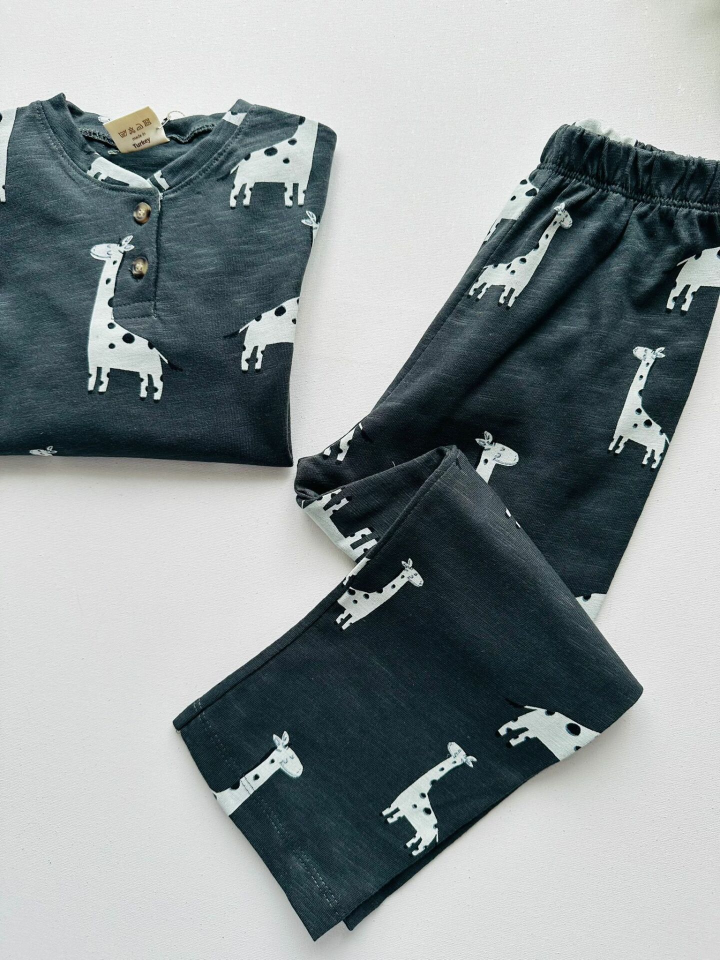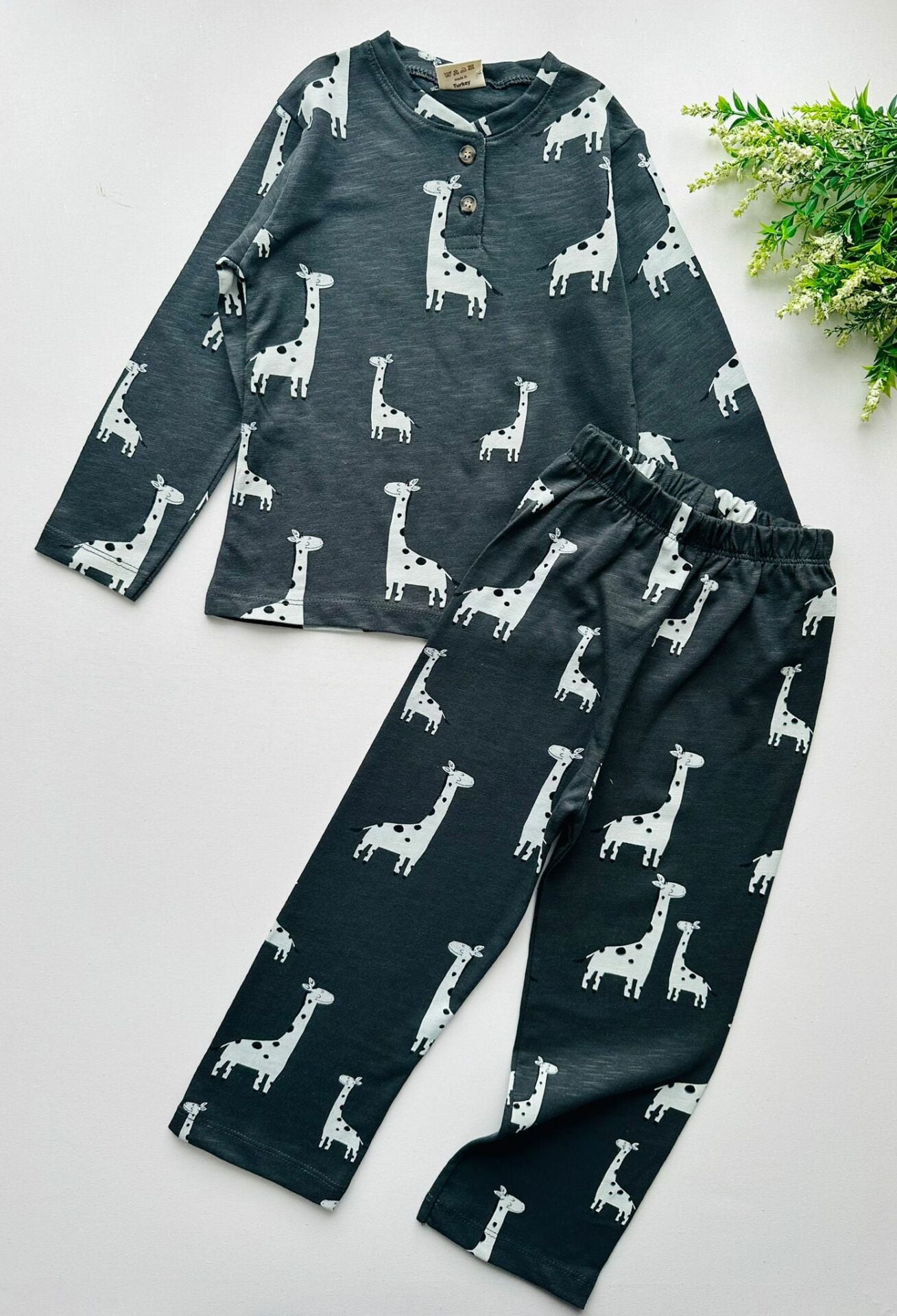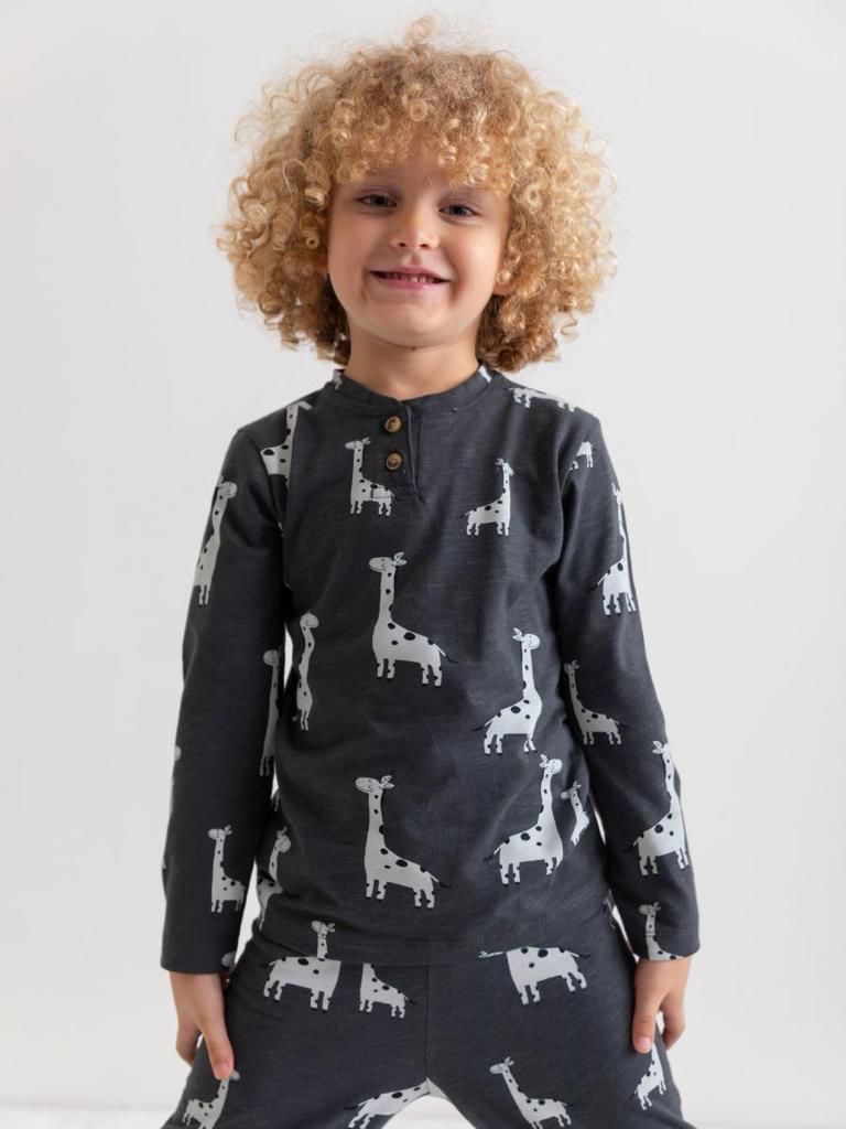 Dinozor Desenli Pijama Takımı - Füme