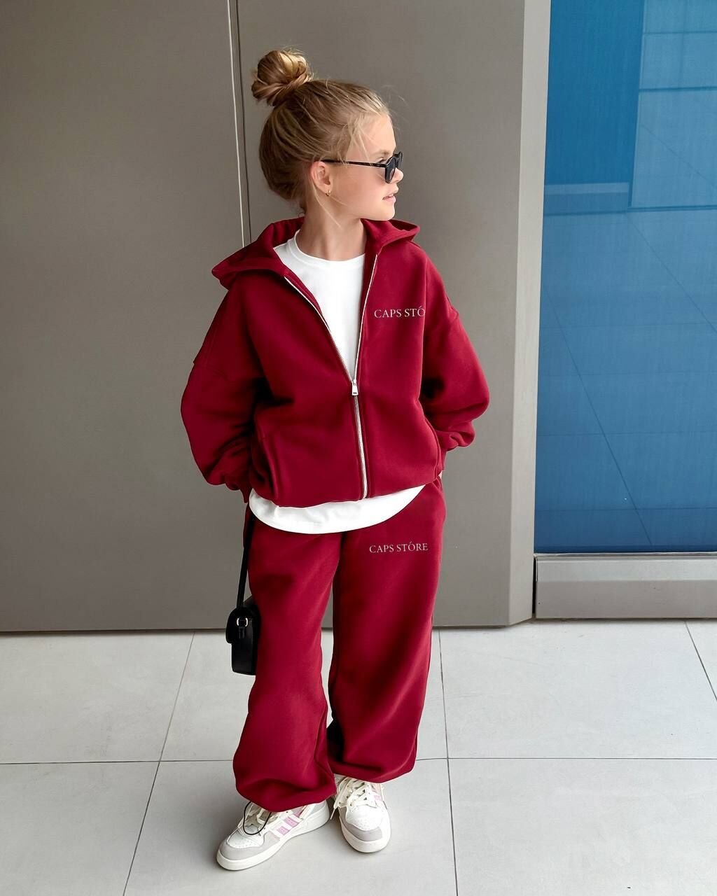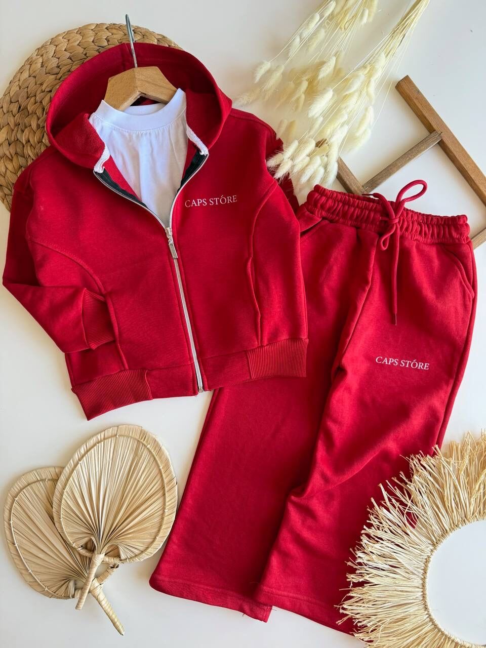 Fermuarlı Kapüşonlu 2’li Basic Lina Takım - Kırmızı