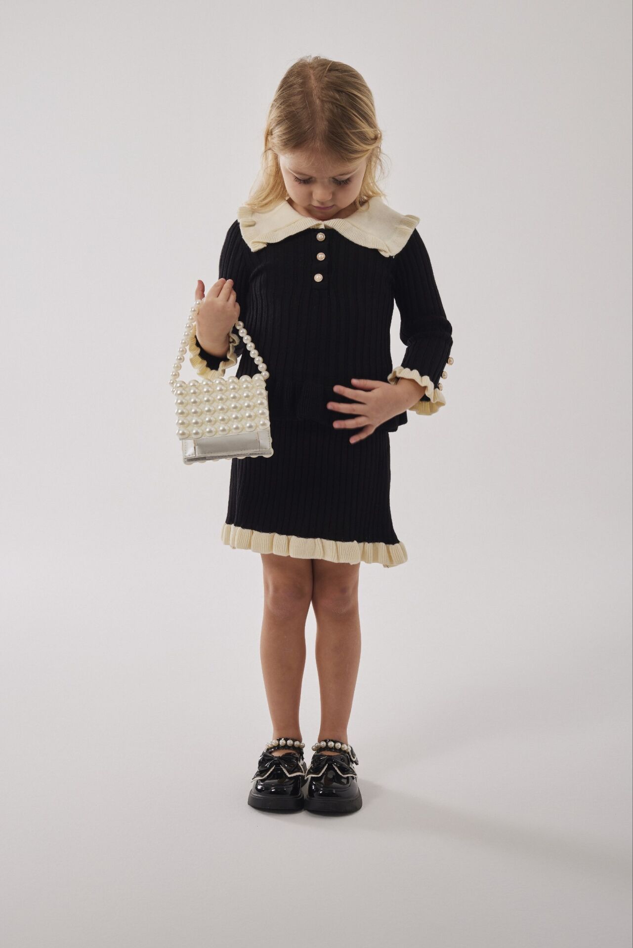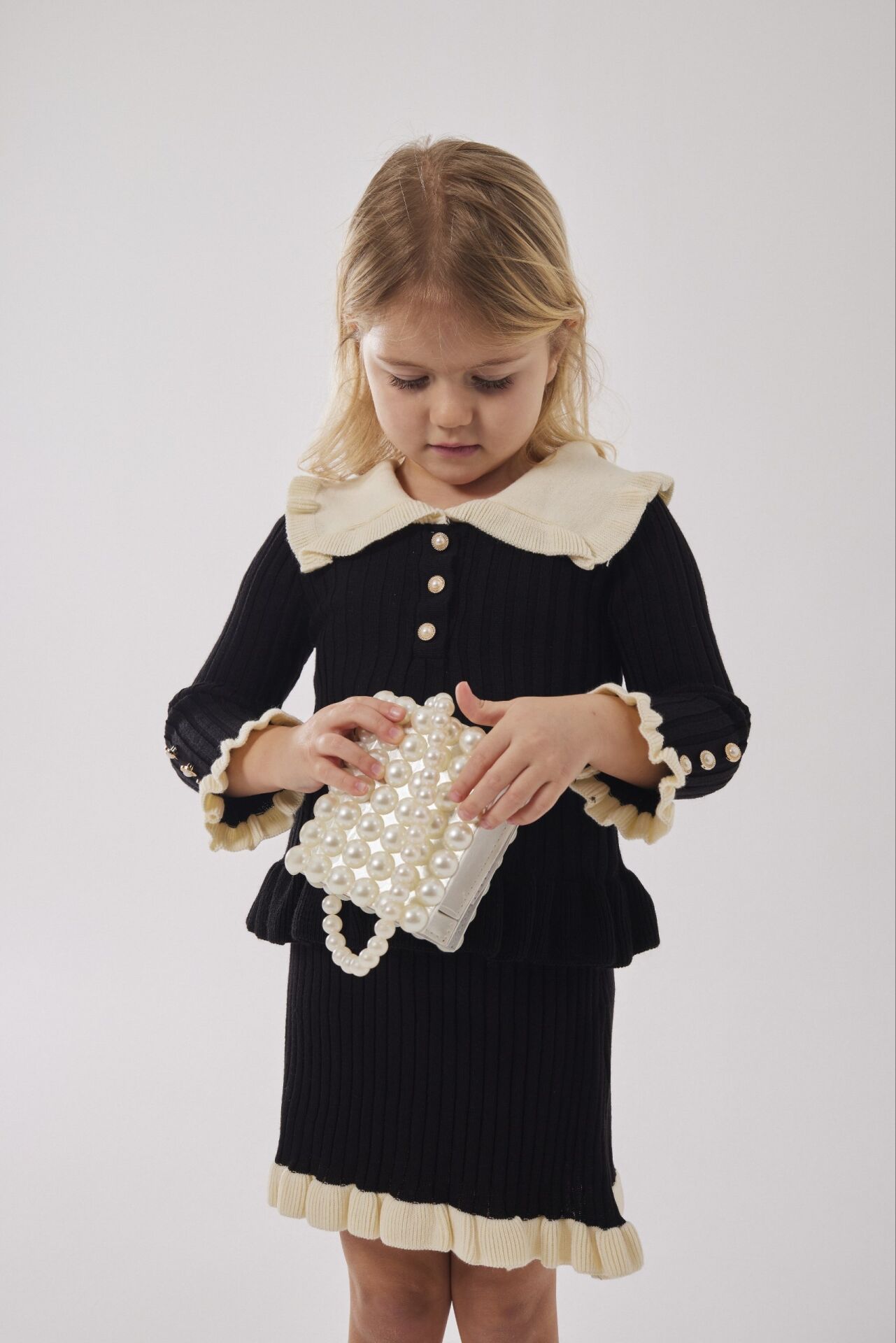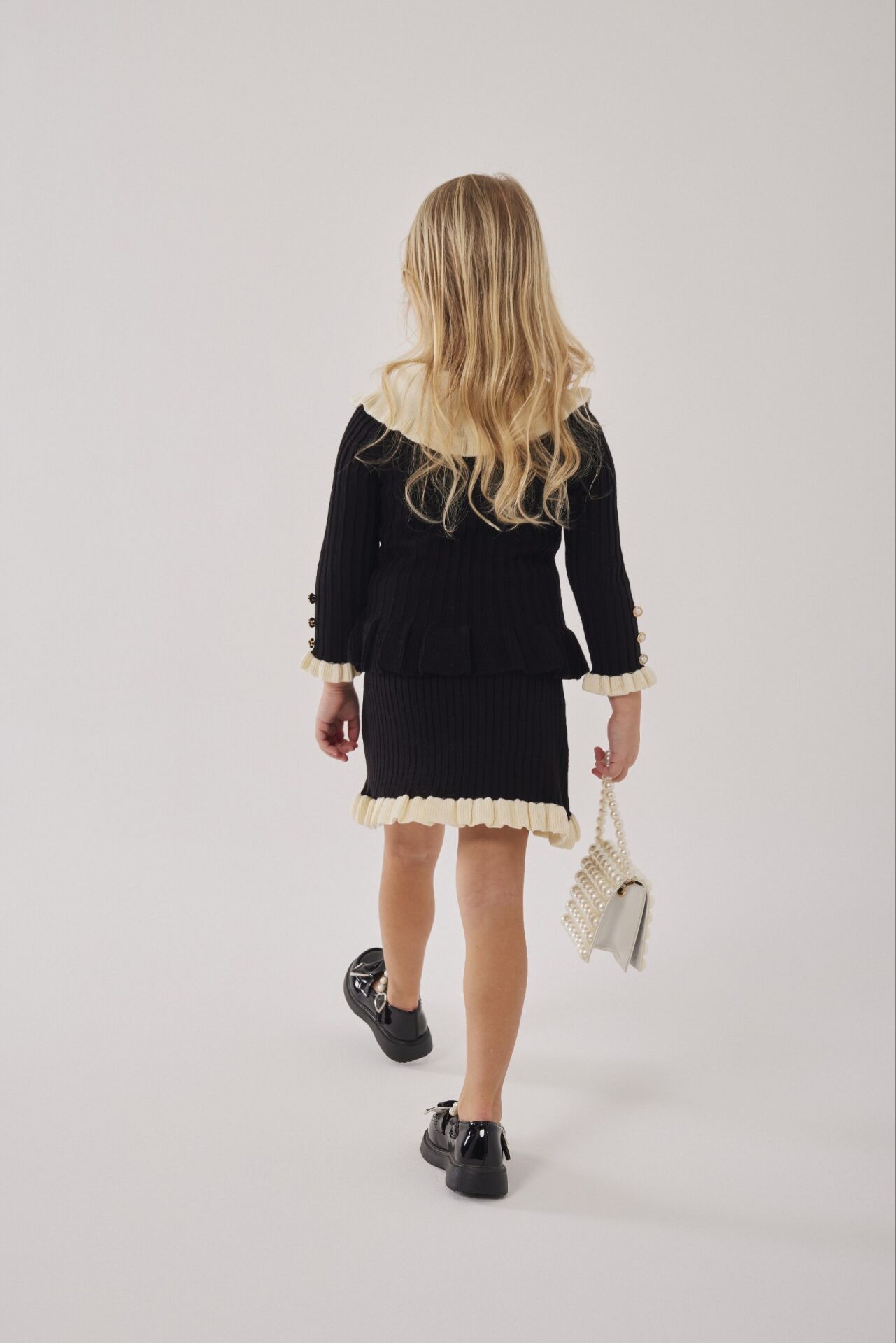 Fırfır Detaylı Triko 3'lü Takım - Siyah