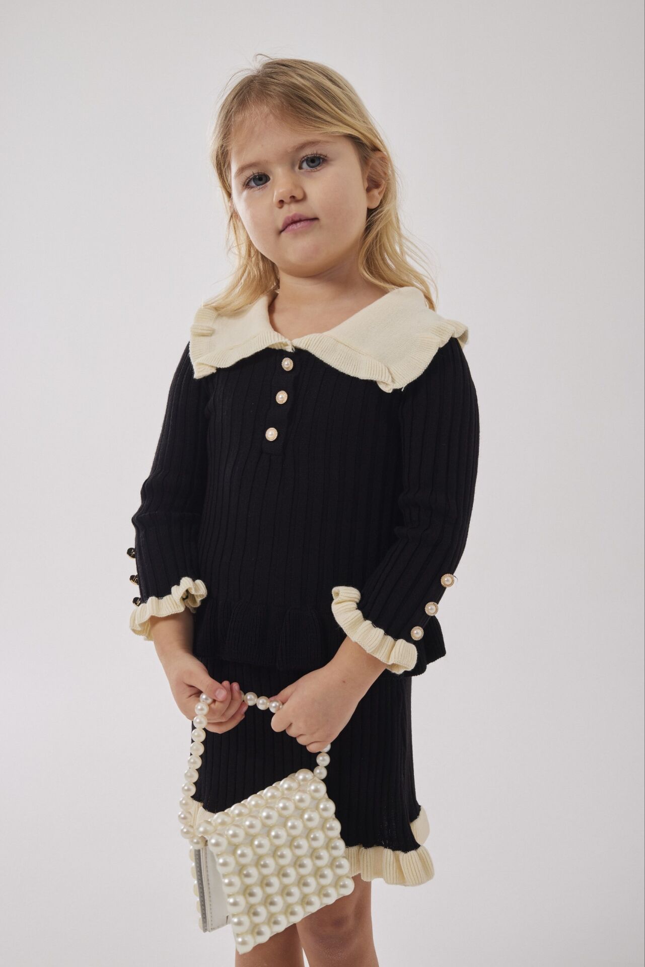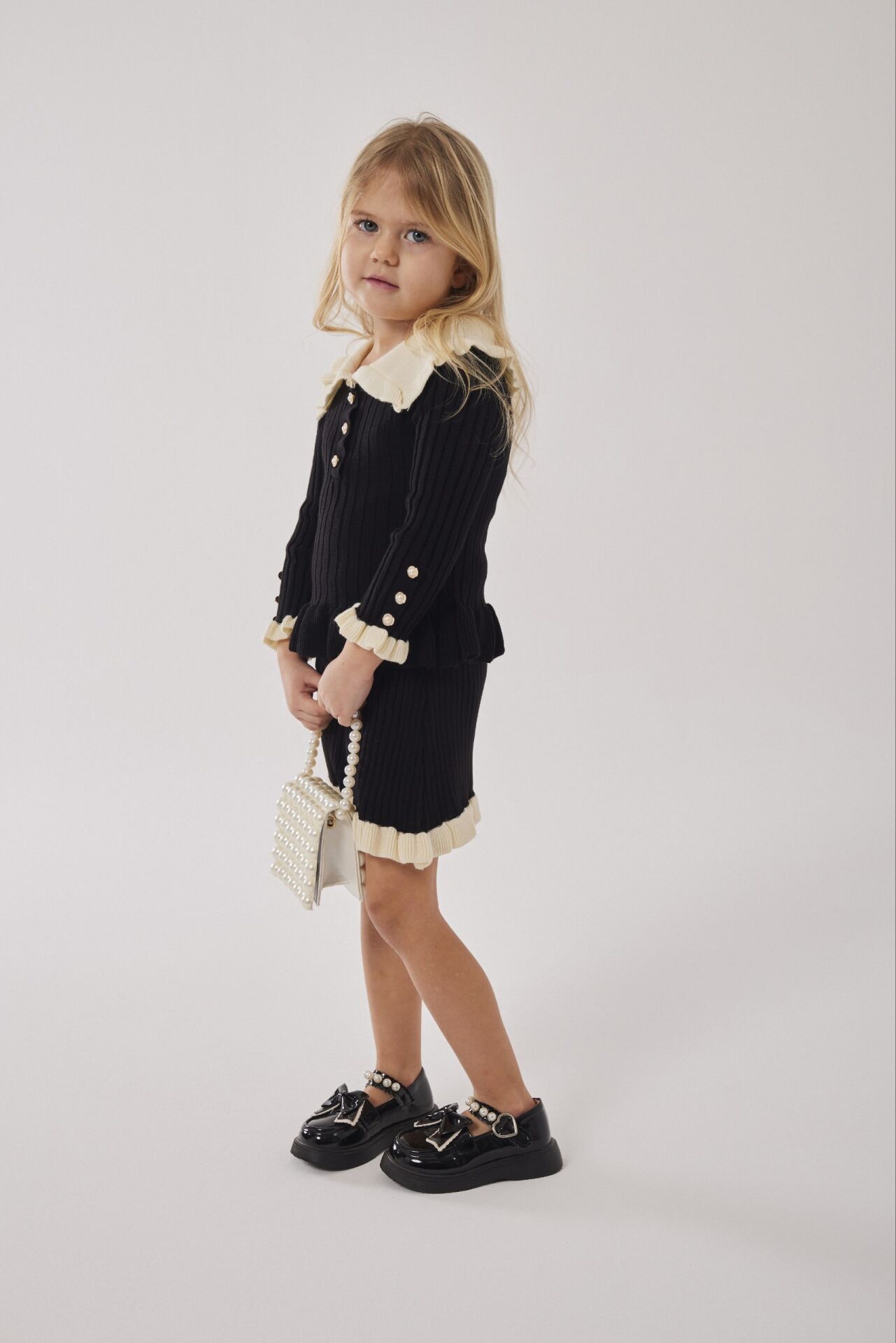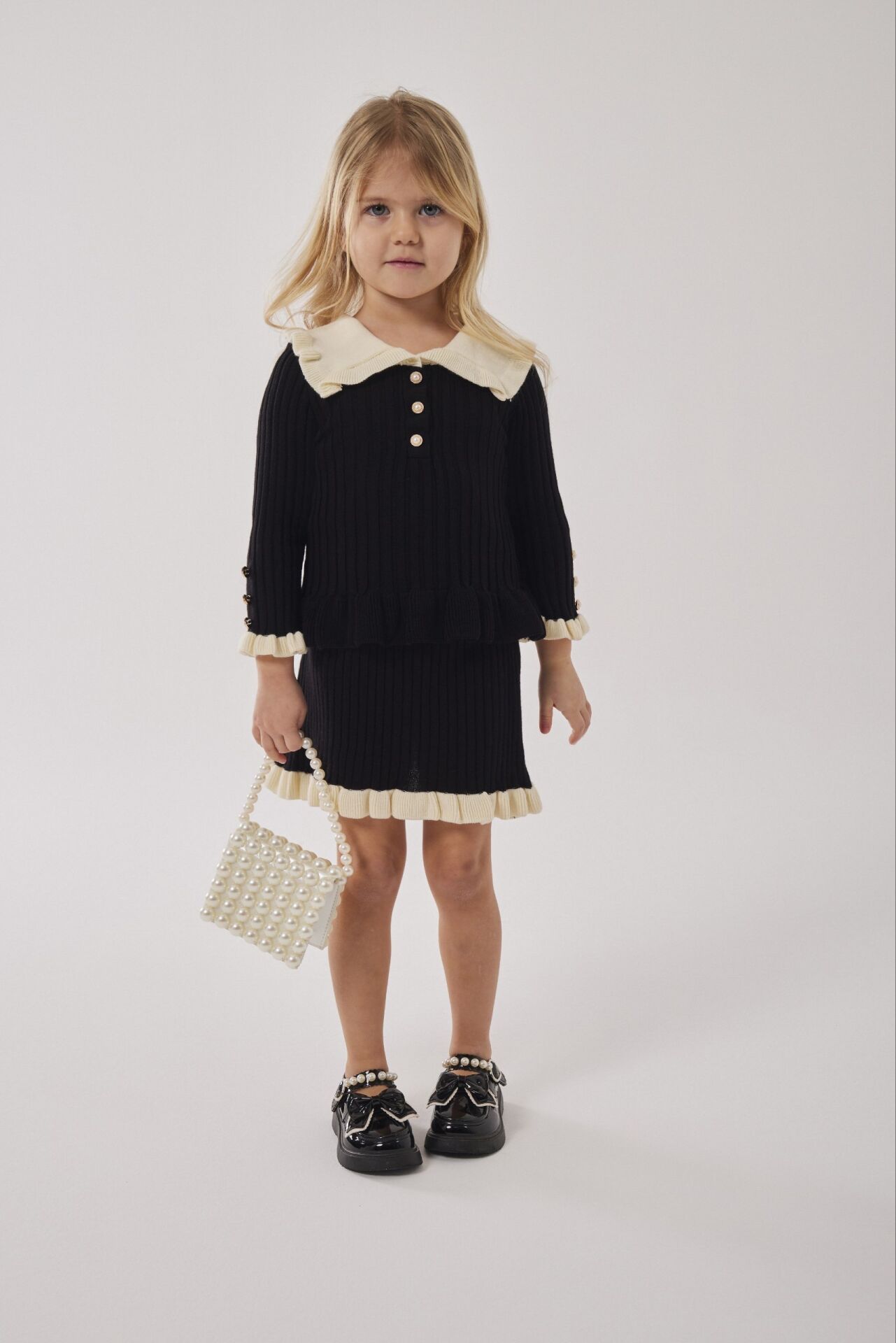 Fırfır Detaylı Triko 3'lü Takım - Siyah