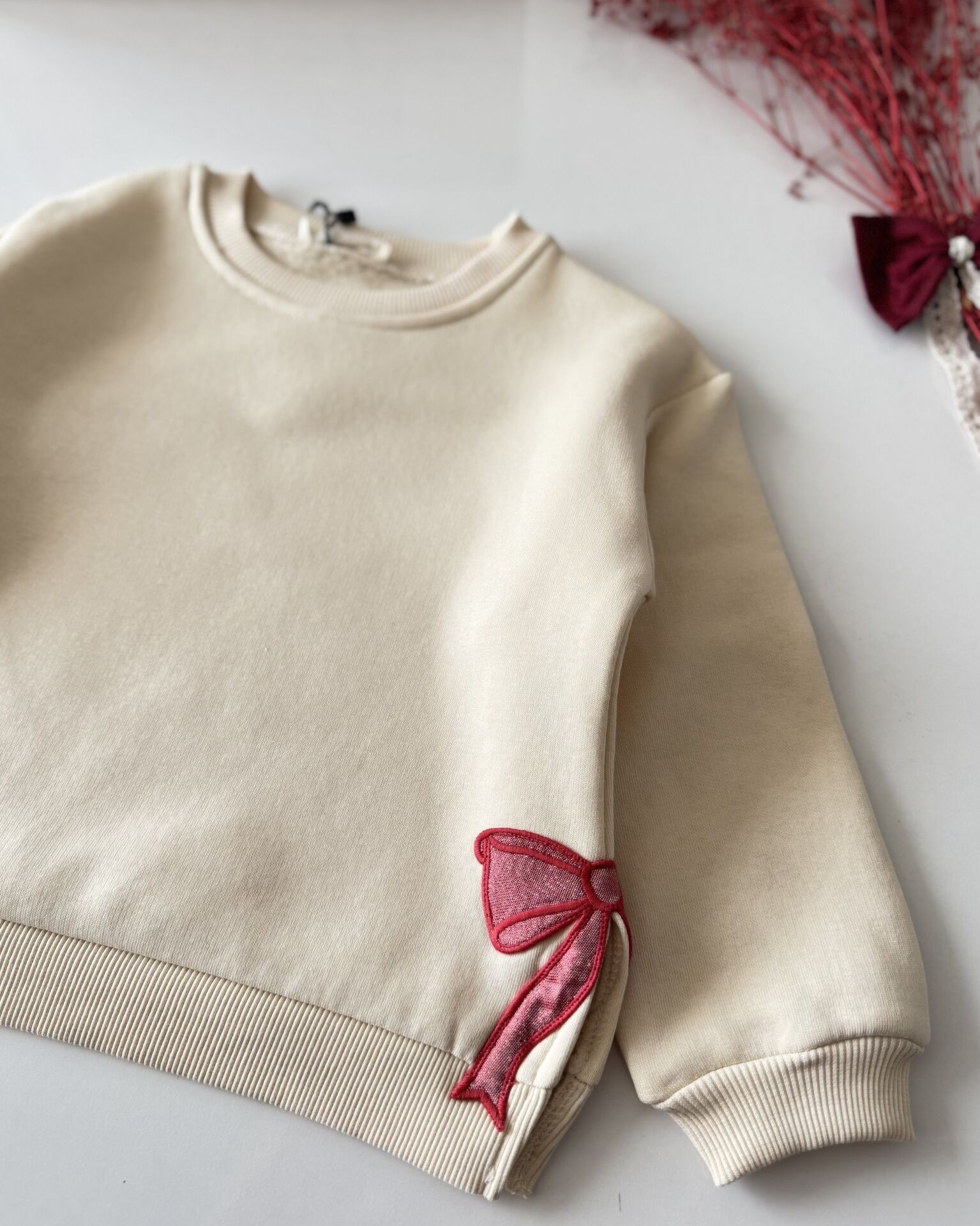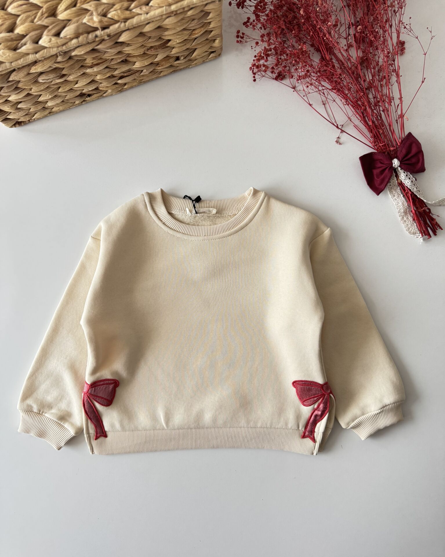 Fiyonk Aplikeli Şardonlu Sweatshirt -Krem