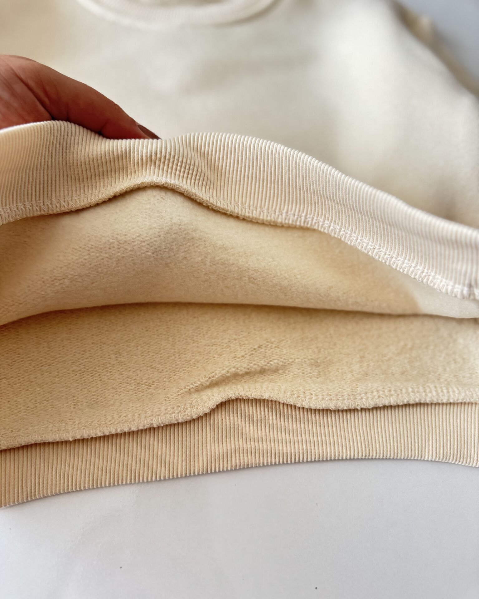 ‣ 3 iplik şardonlu pamuklu kumaştır. Ürünler de pamuk oranı yüksektir.Terletmez, nefes alan kumaş.