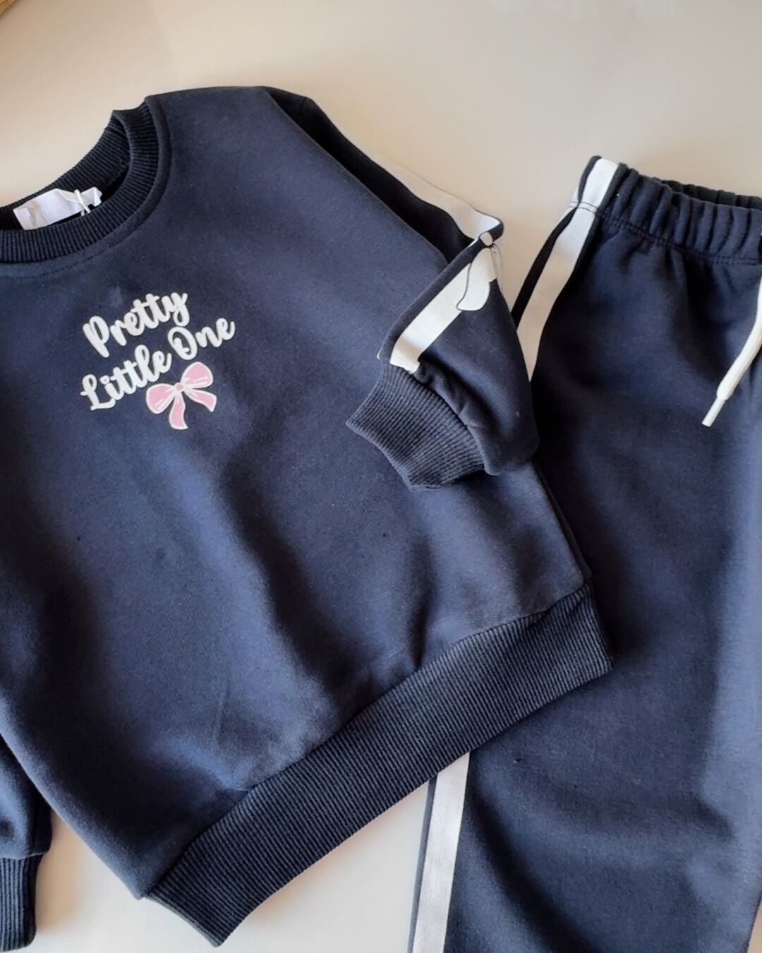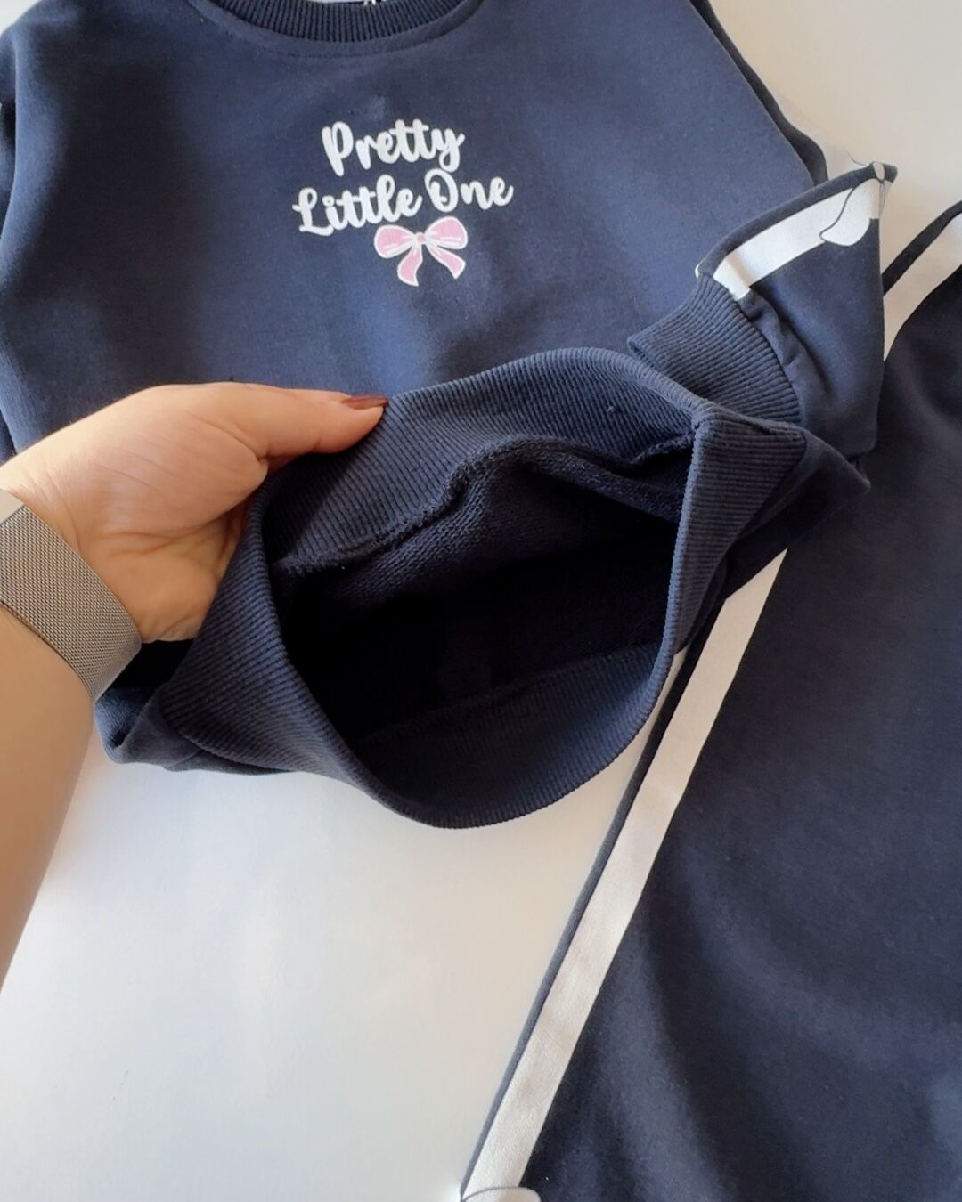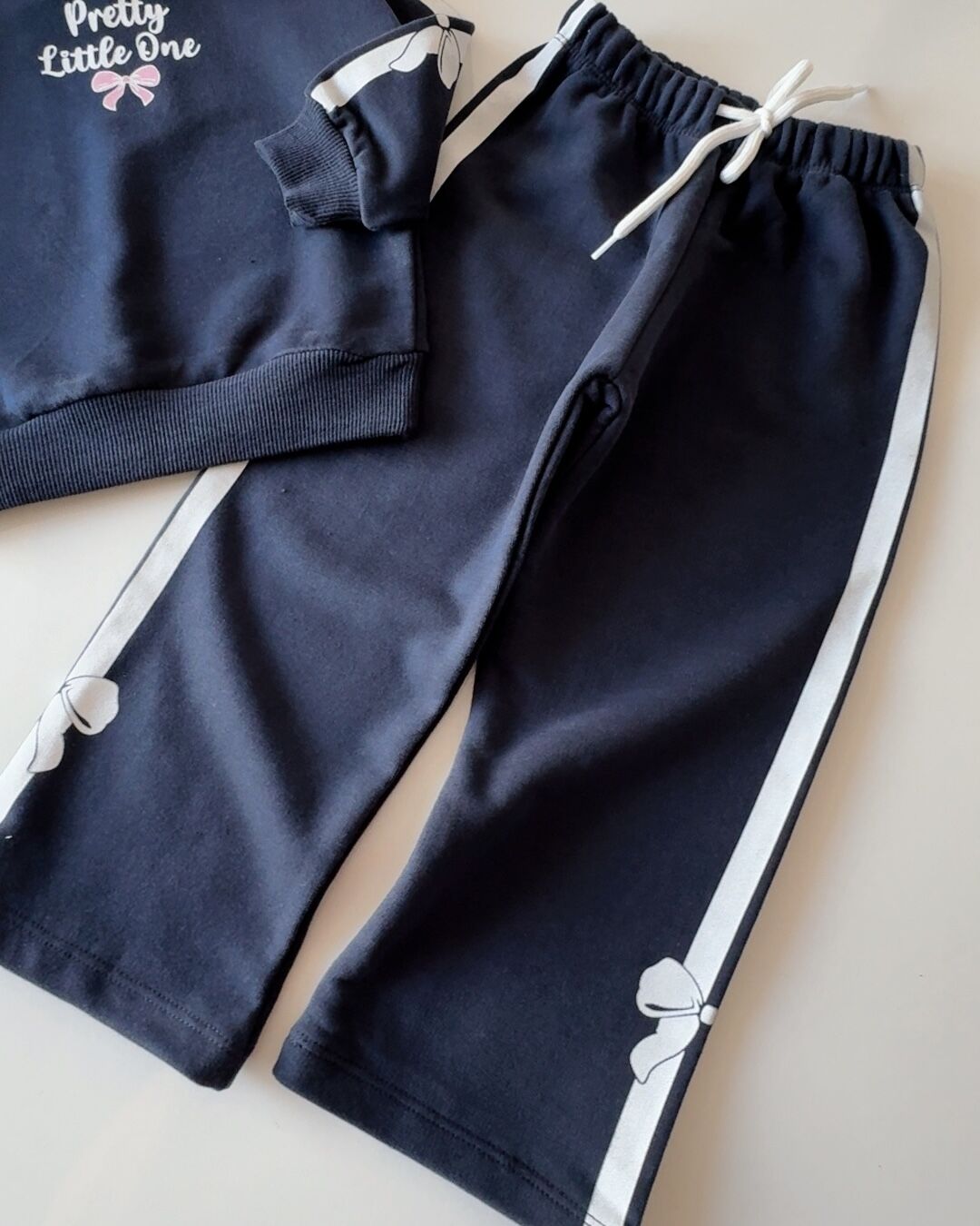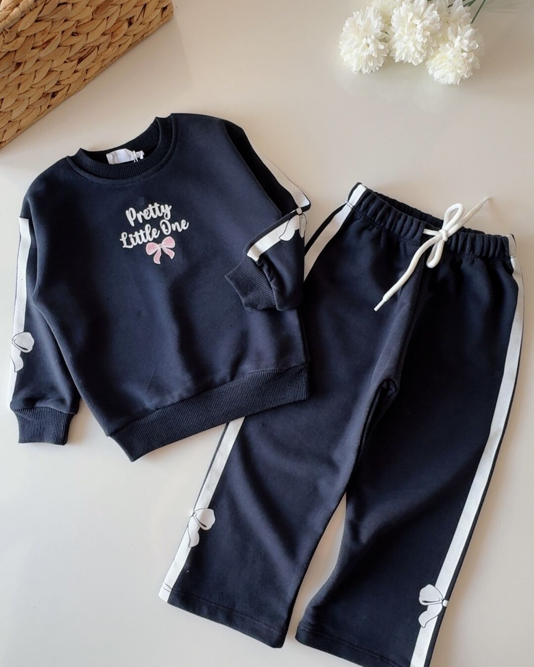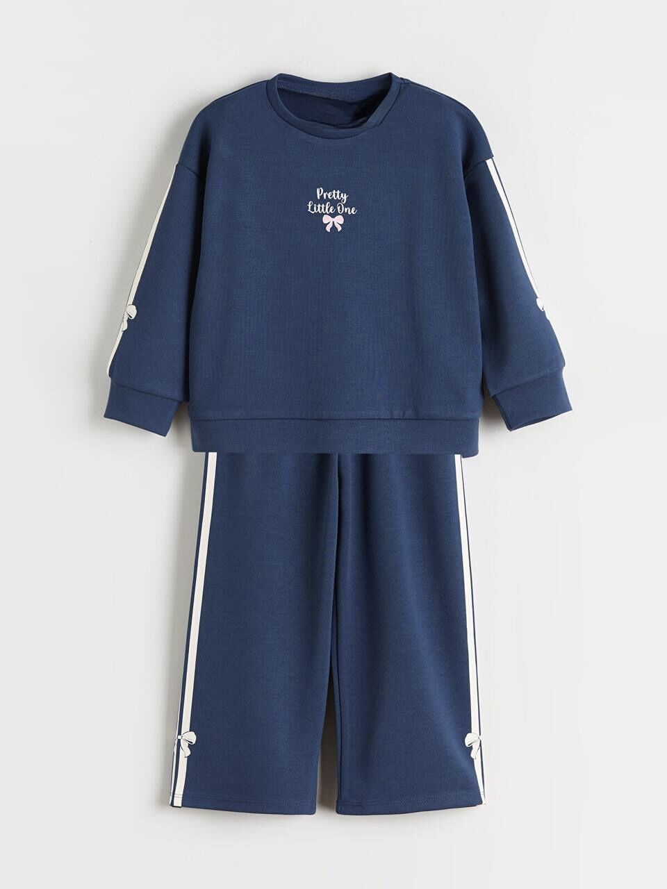 Fiyonk Aplikeli Şeritli Takım - Lacivert