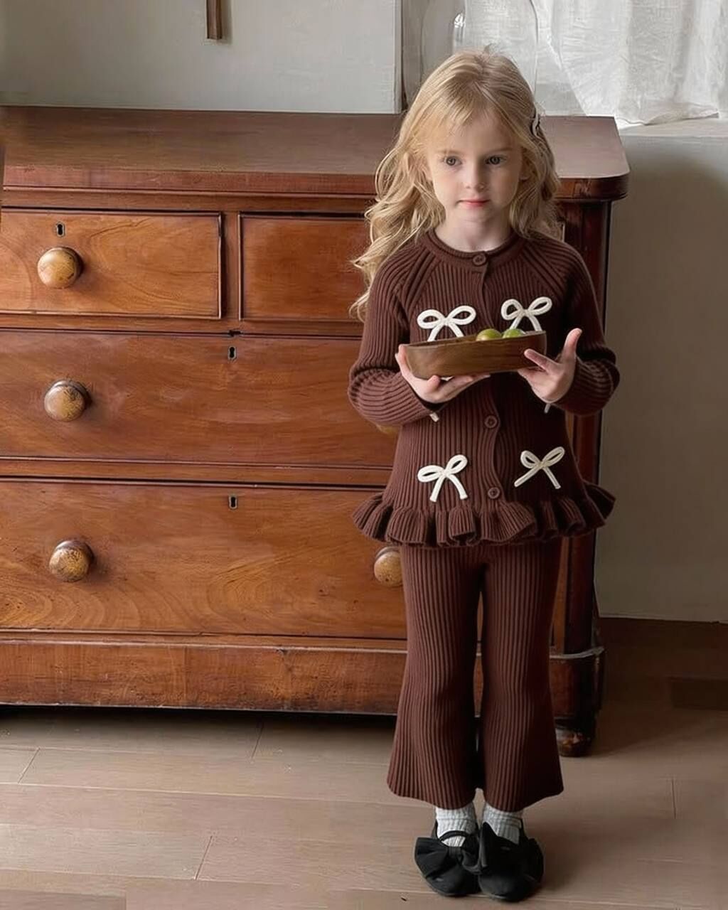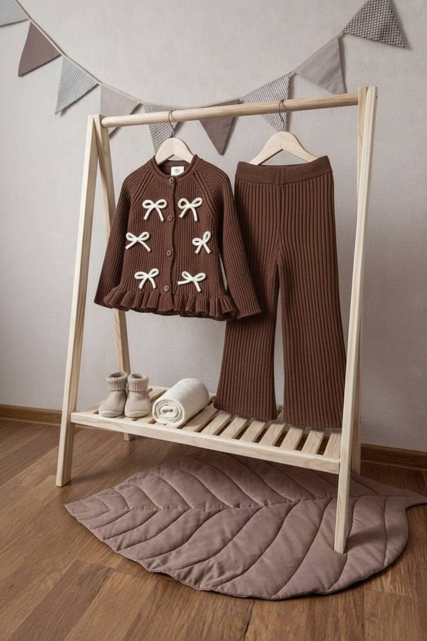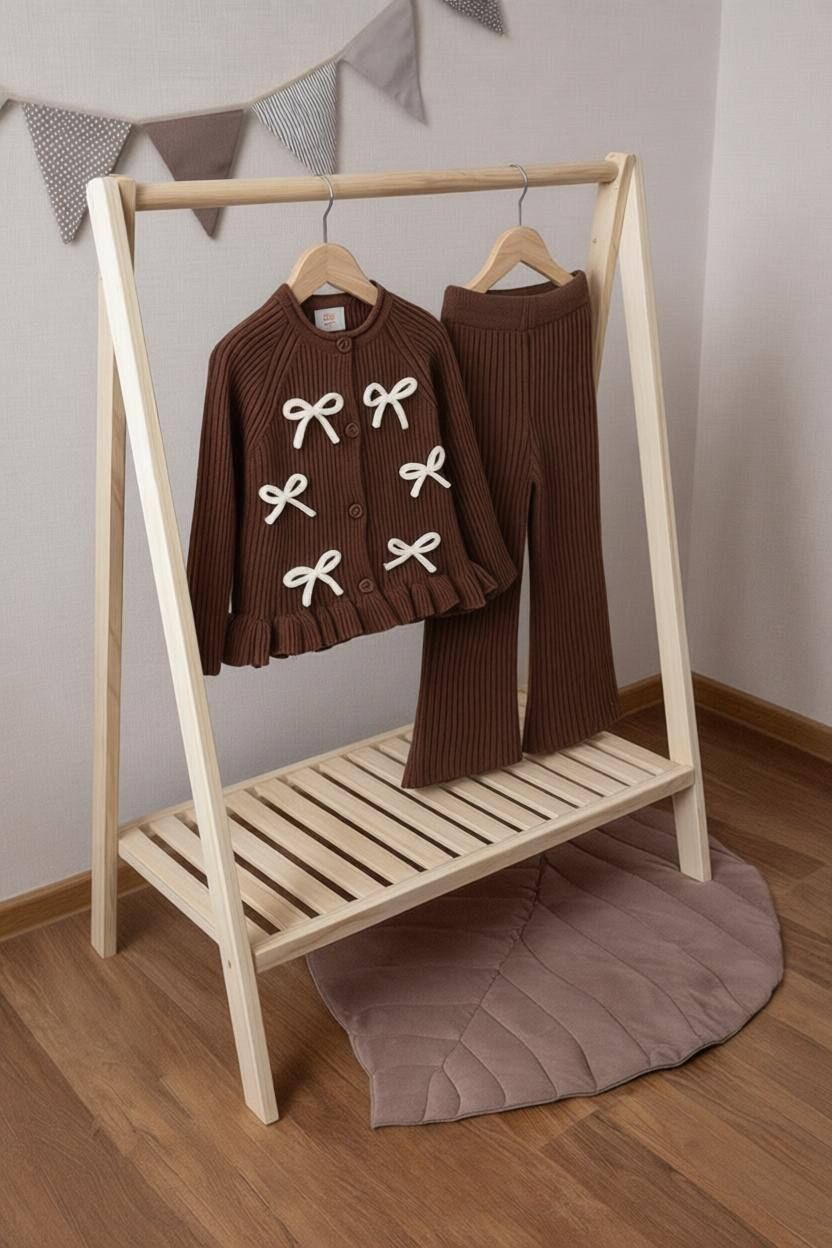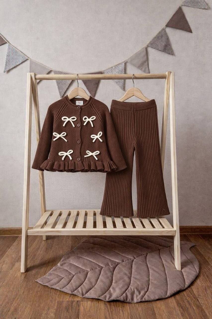 Fiyonk Aplikeli Triko Takım - Kahve