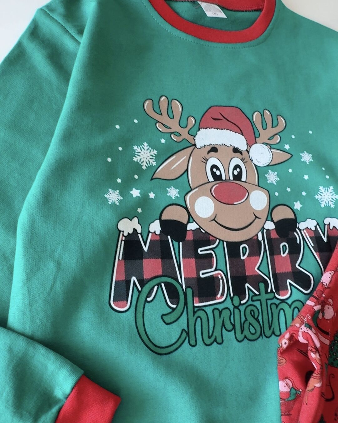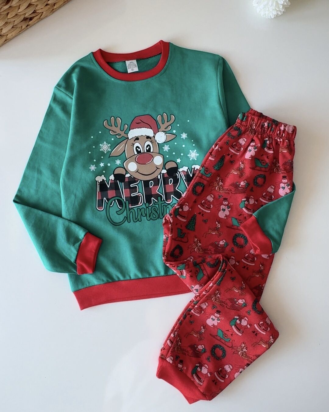 Geyik Baskılı Yeni Yıl Pijama Takımı - Yeşil Kırmızı