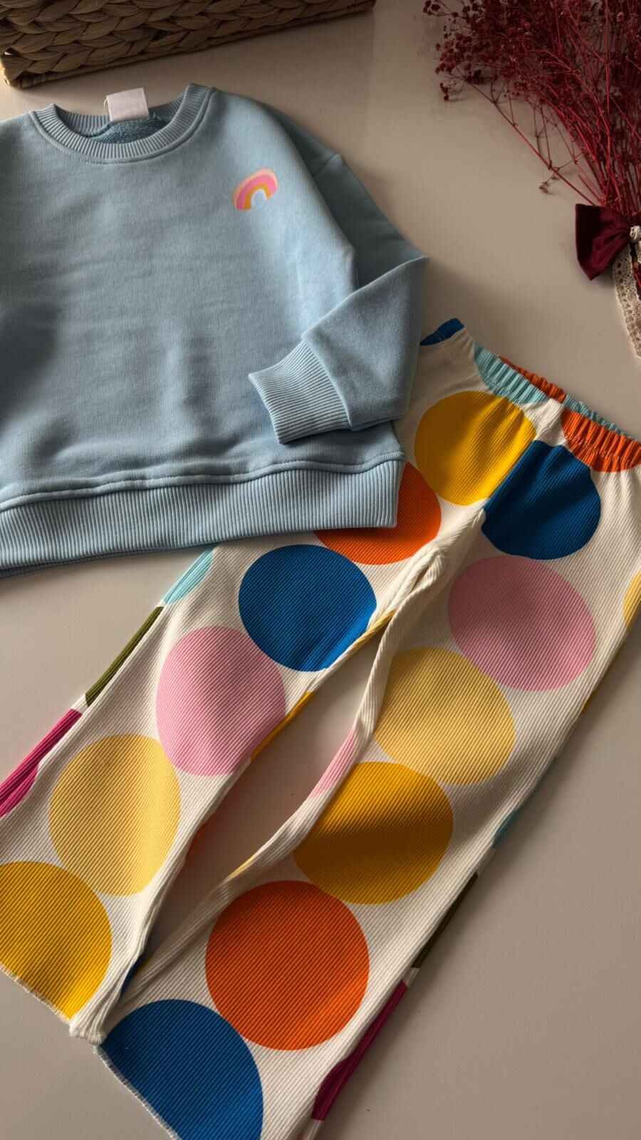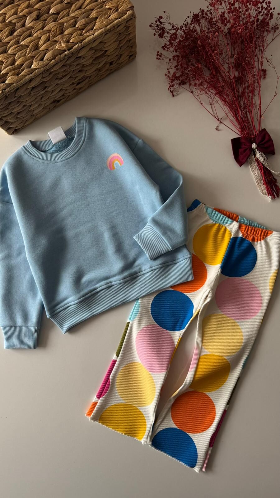 Gökkuşağı Desenli Taytlı Takıım - Mavi