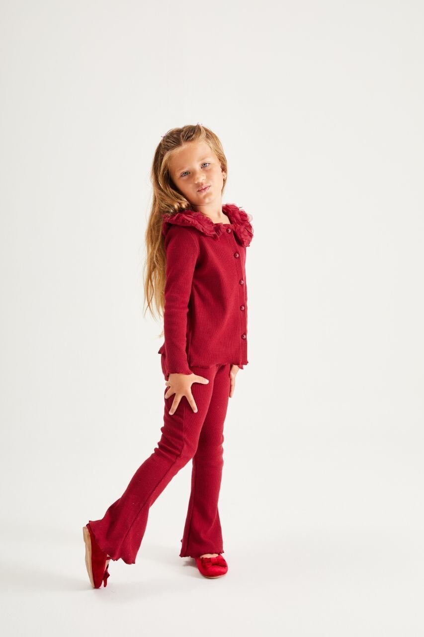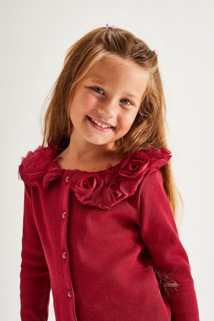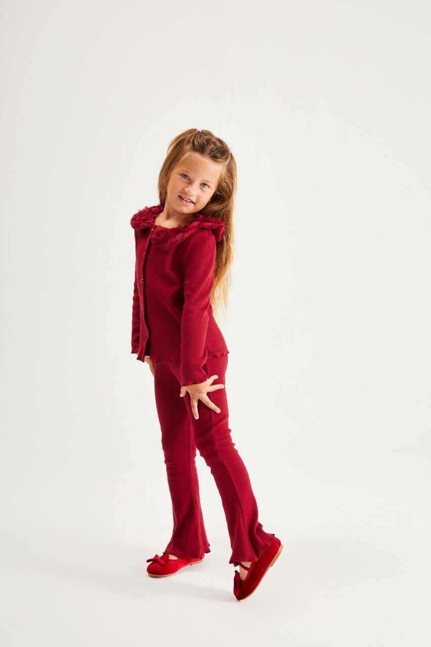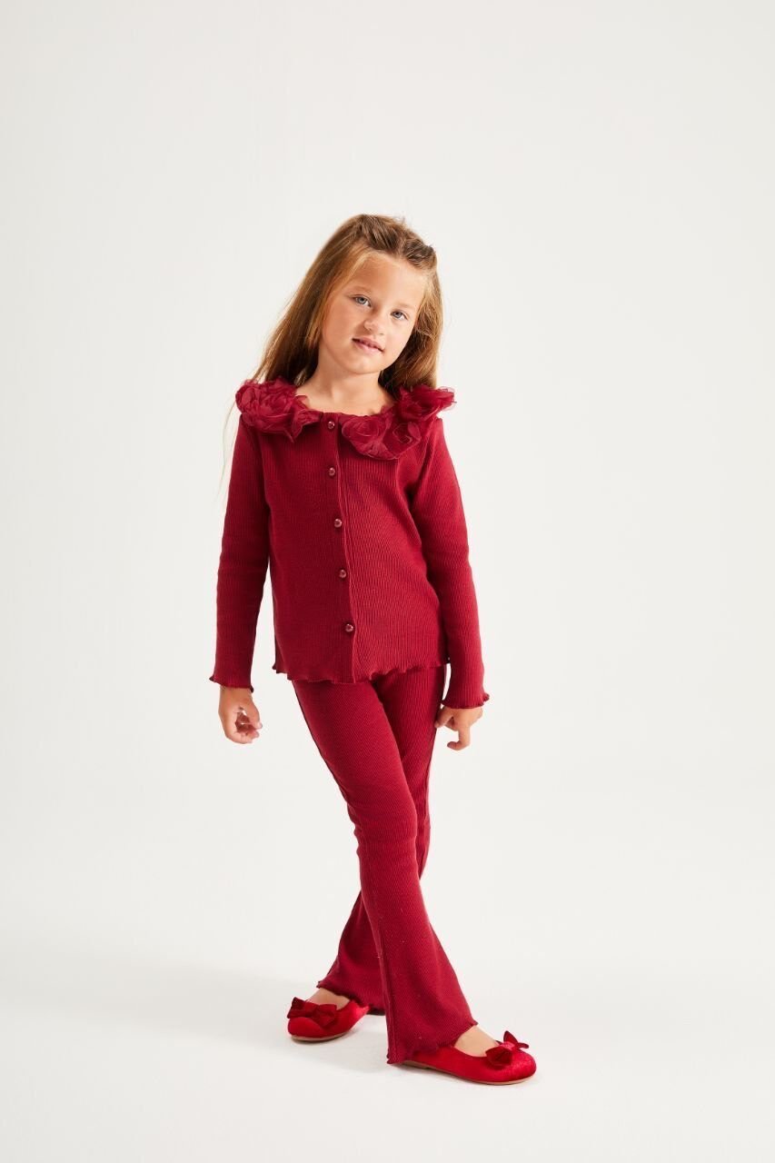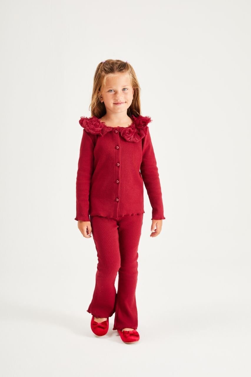 Gül Yaka Detaylı Ribana Takım - Bordo