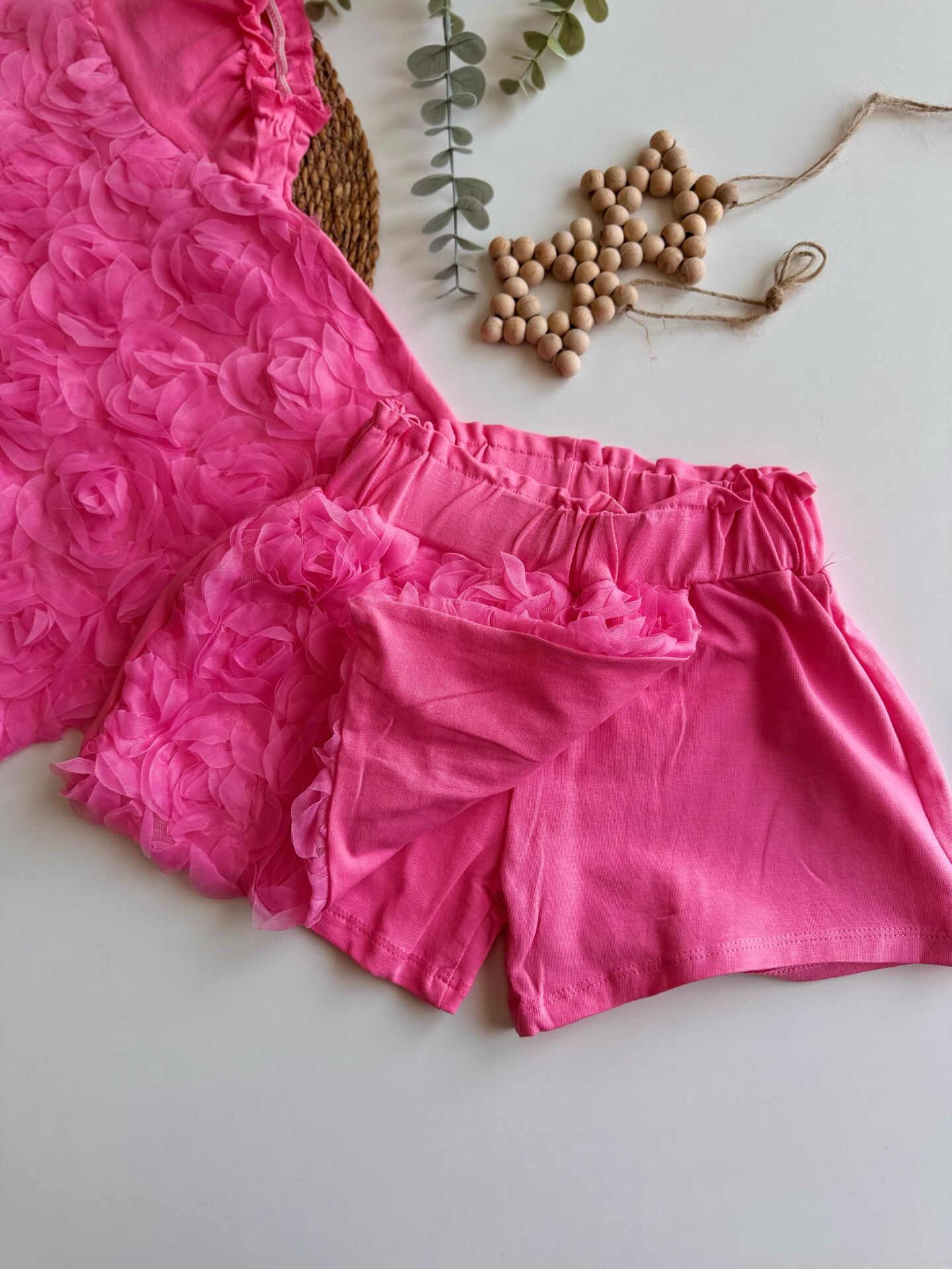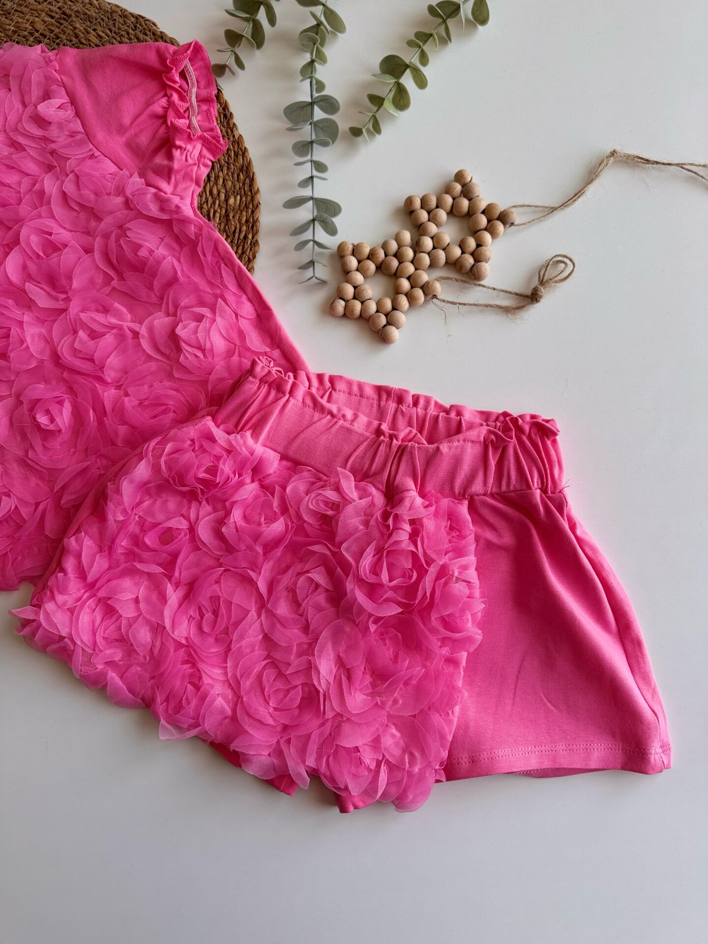 Ürün Bilgisi : İnanılmaz satılan çok sevilen Gülce takımın yazlkık formu .. Tamamen gül aplikeli beli lastikl şort etekl takım