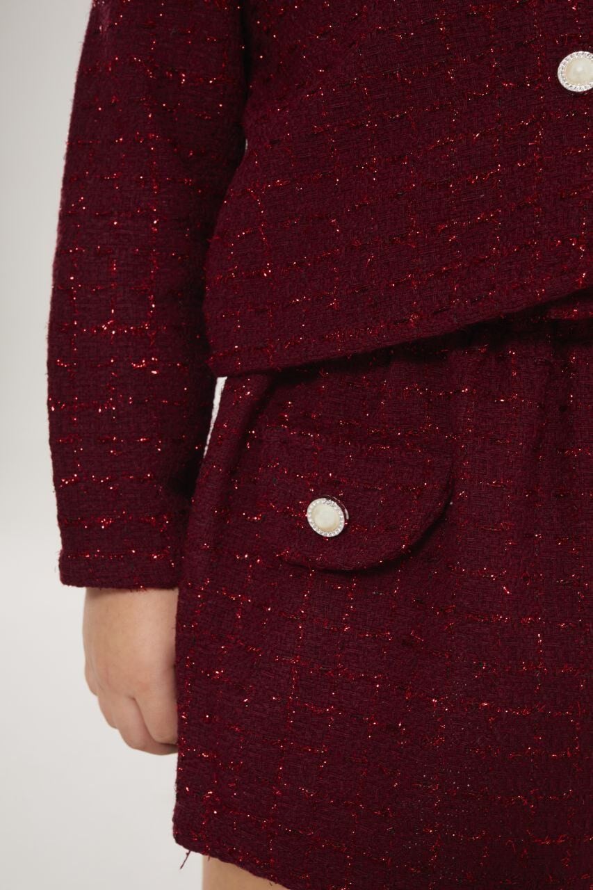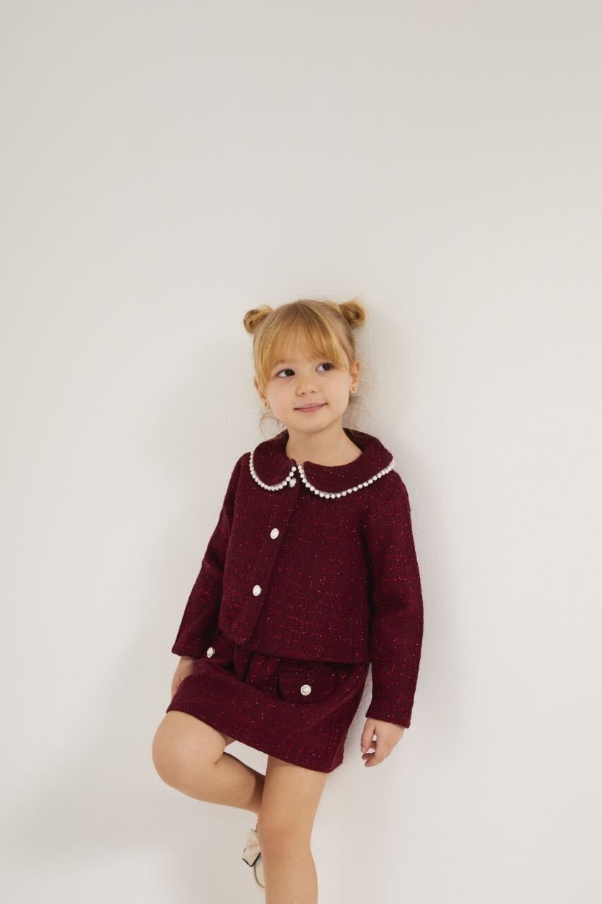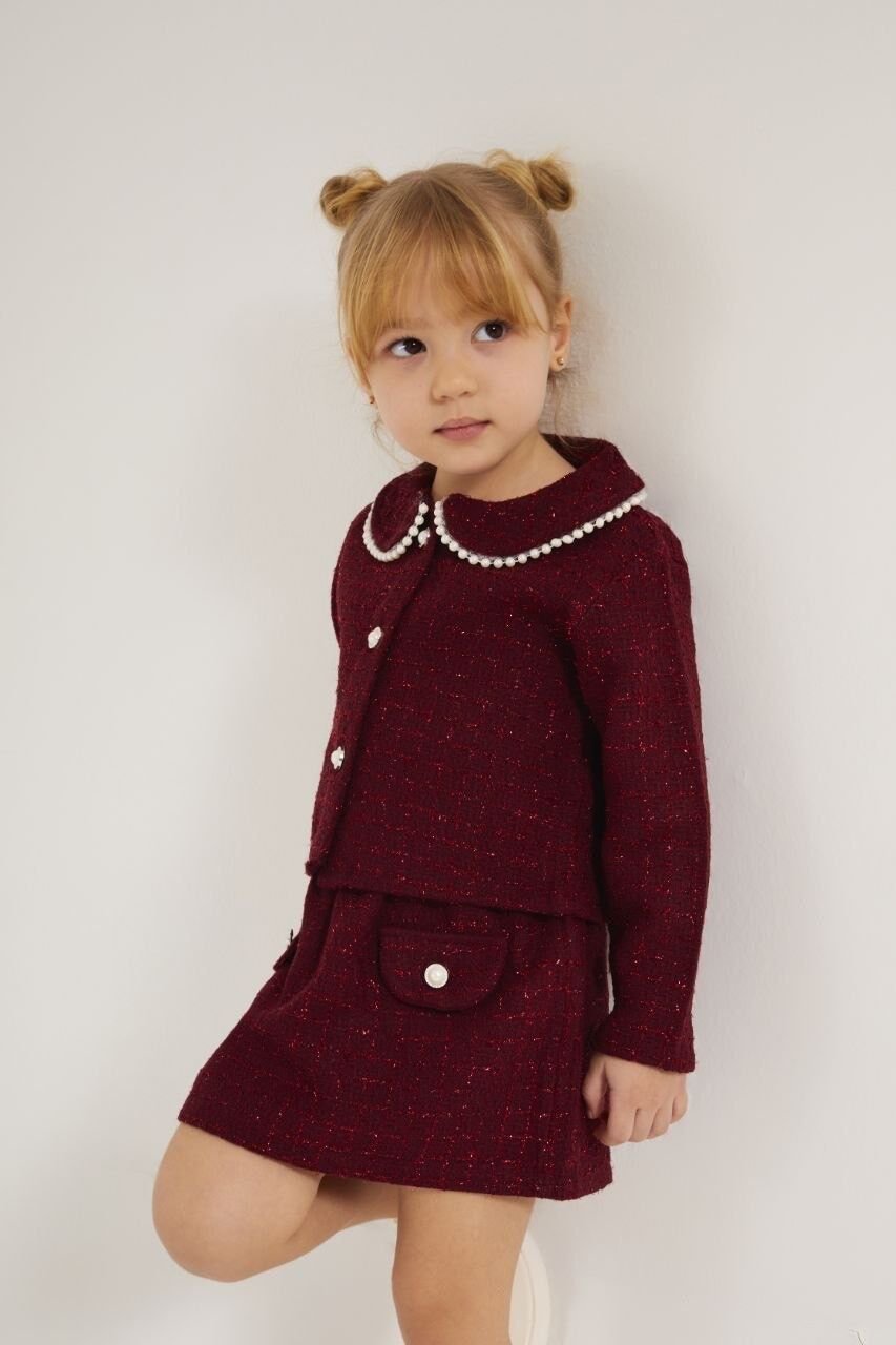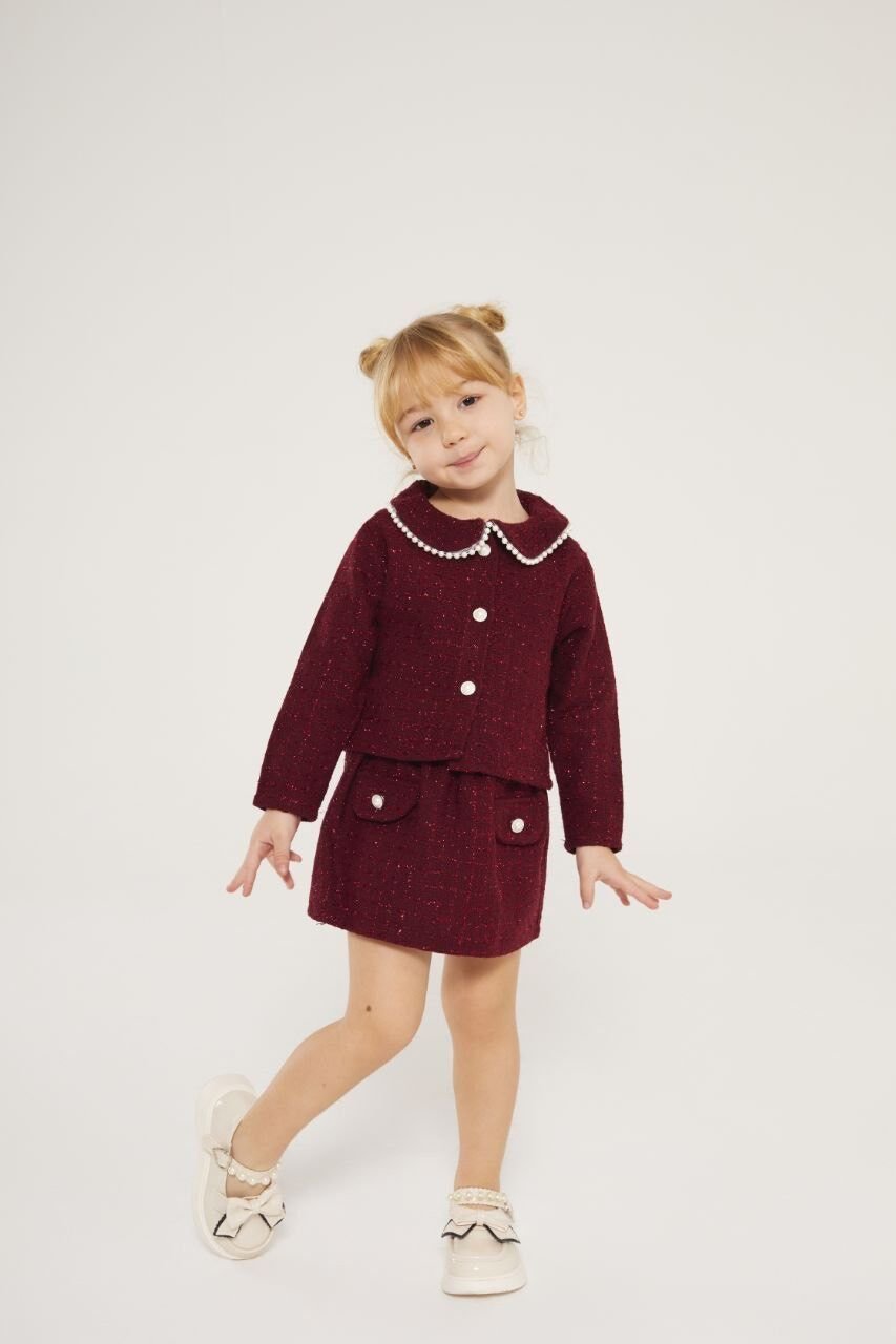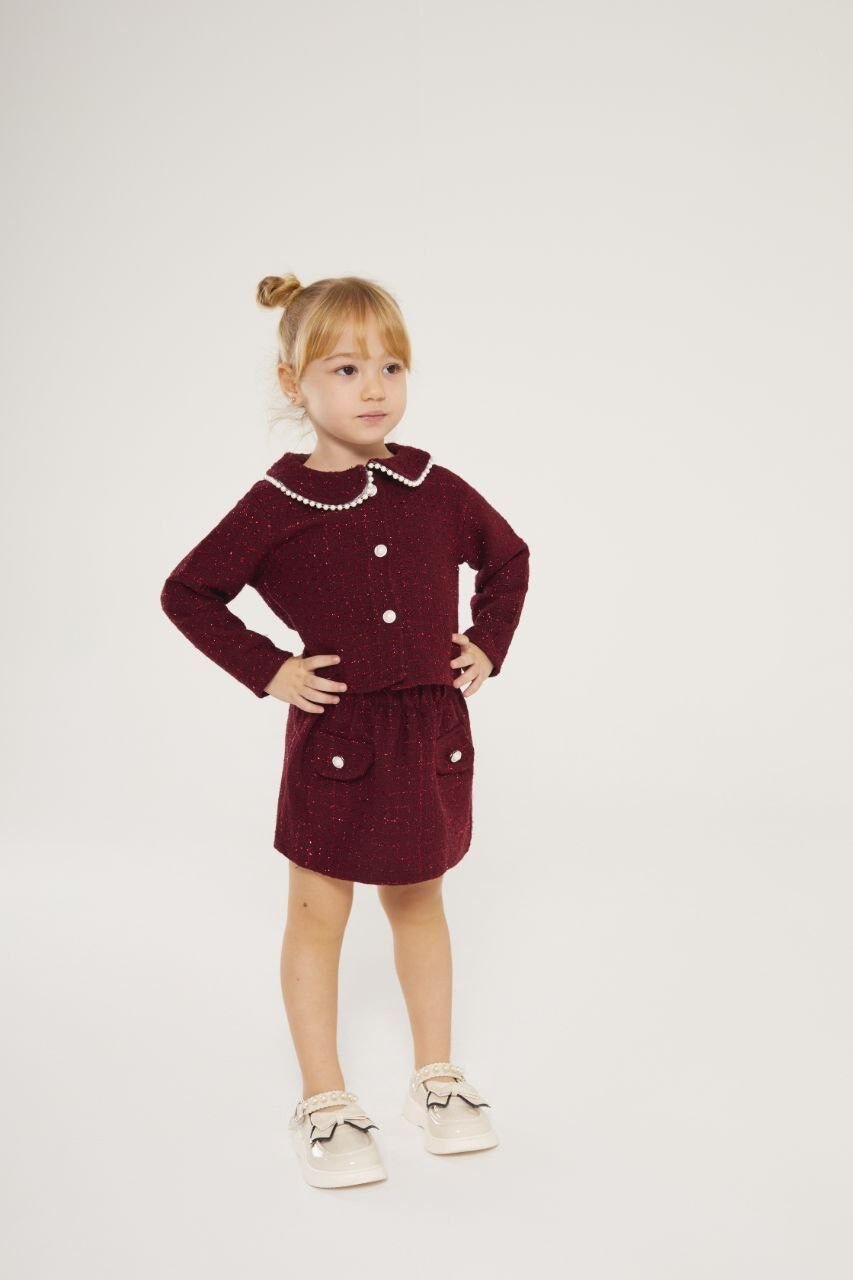 İnci Detaylı Tüvit 2'li Takım - Bordo